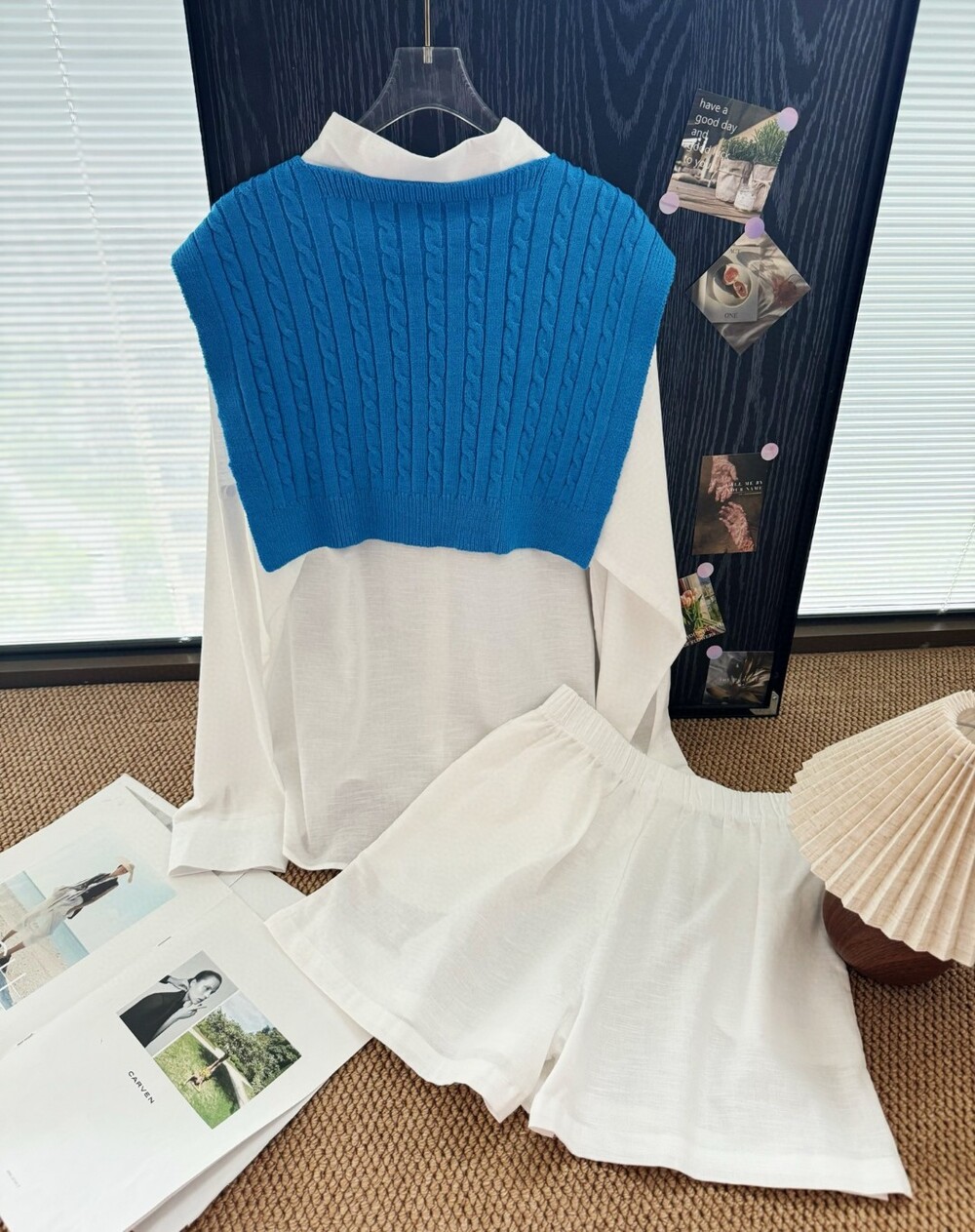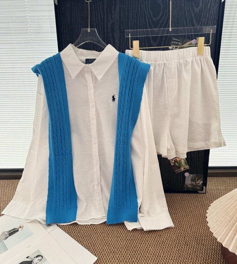 * 쓰리피스 구성은 스카프,반소매티셔츠,팬츠,셔츠 구성입니다