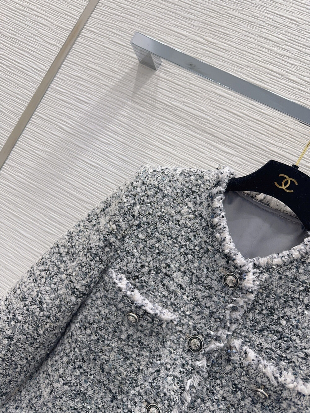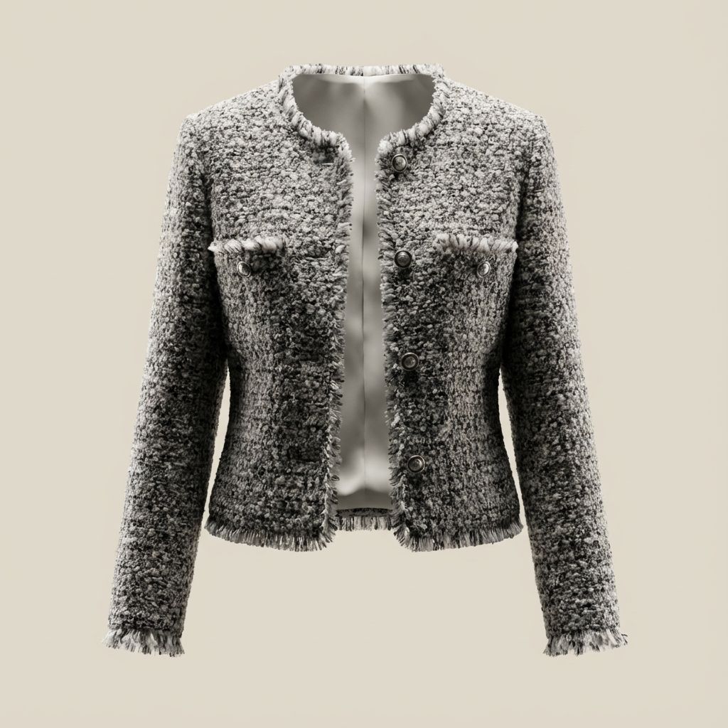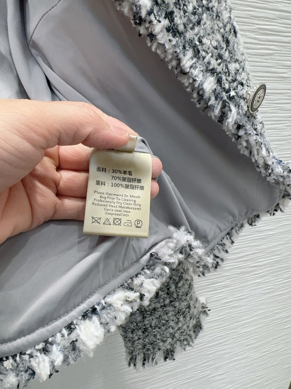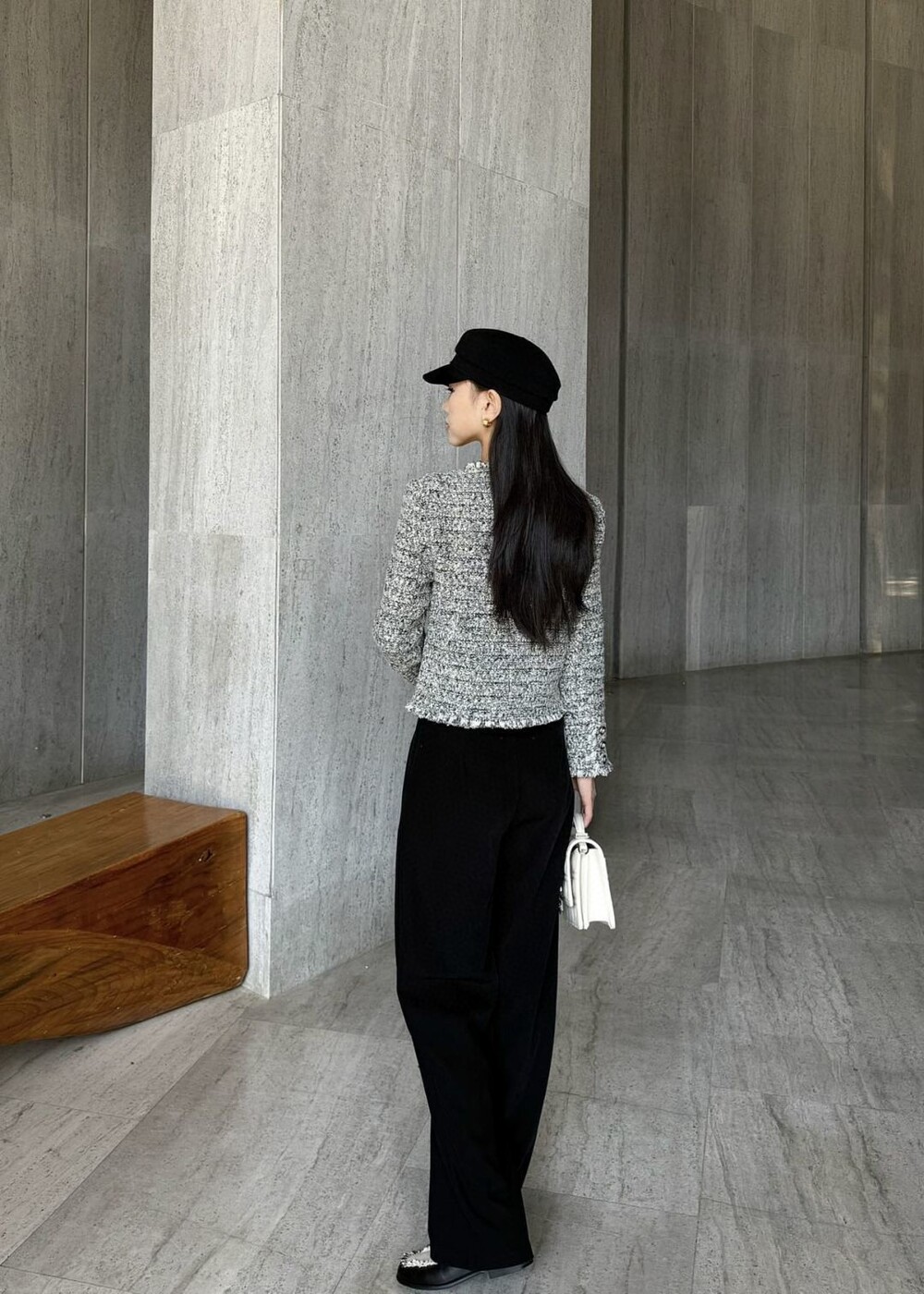 고급스러운 트위드 조직에 울 30% 혼방 소재로 제작되어