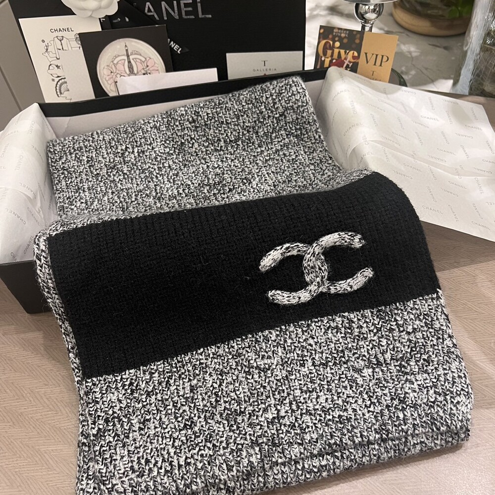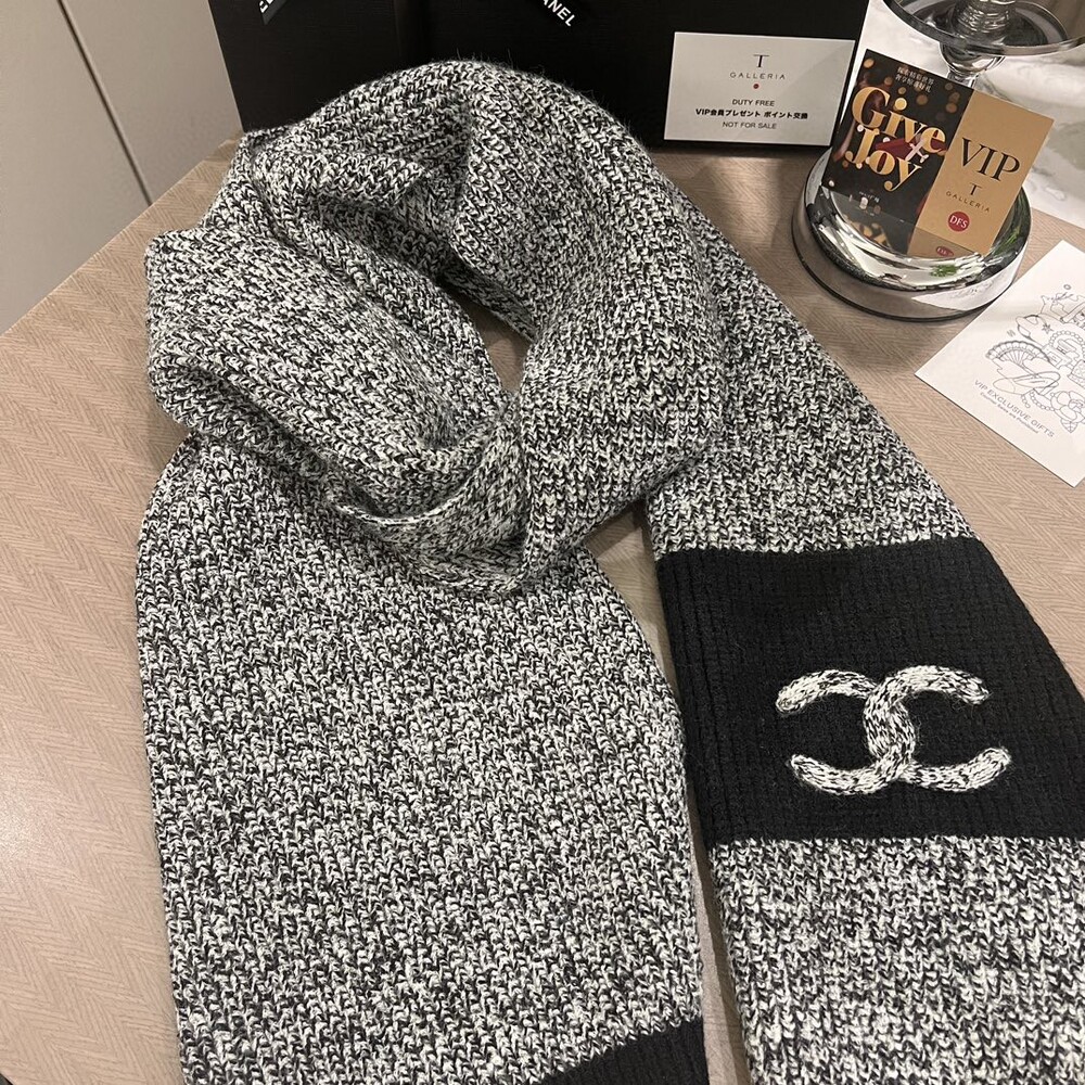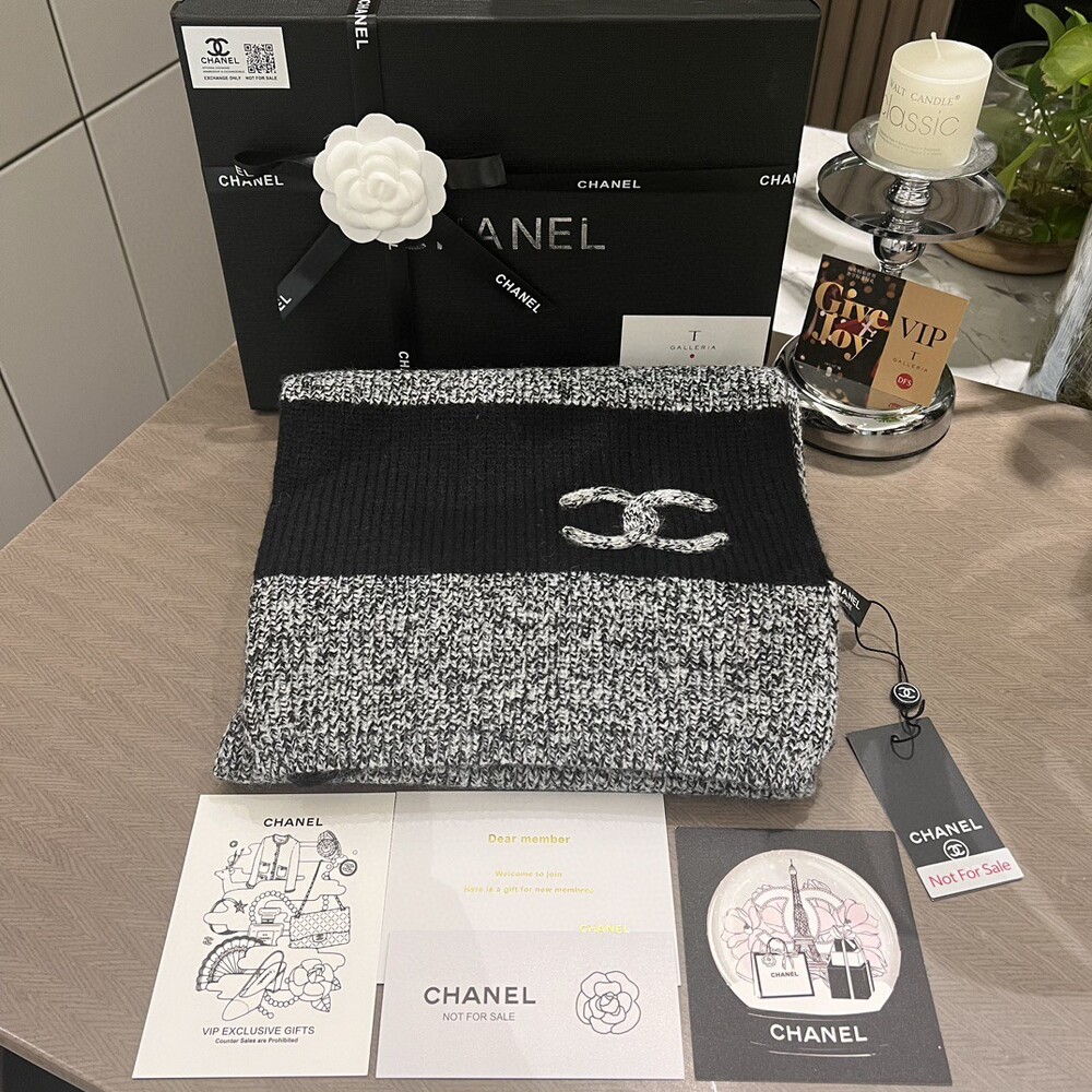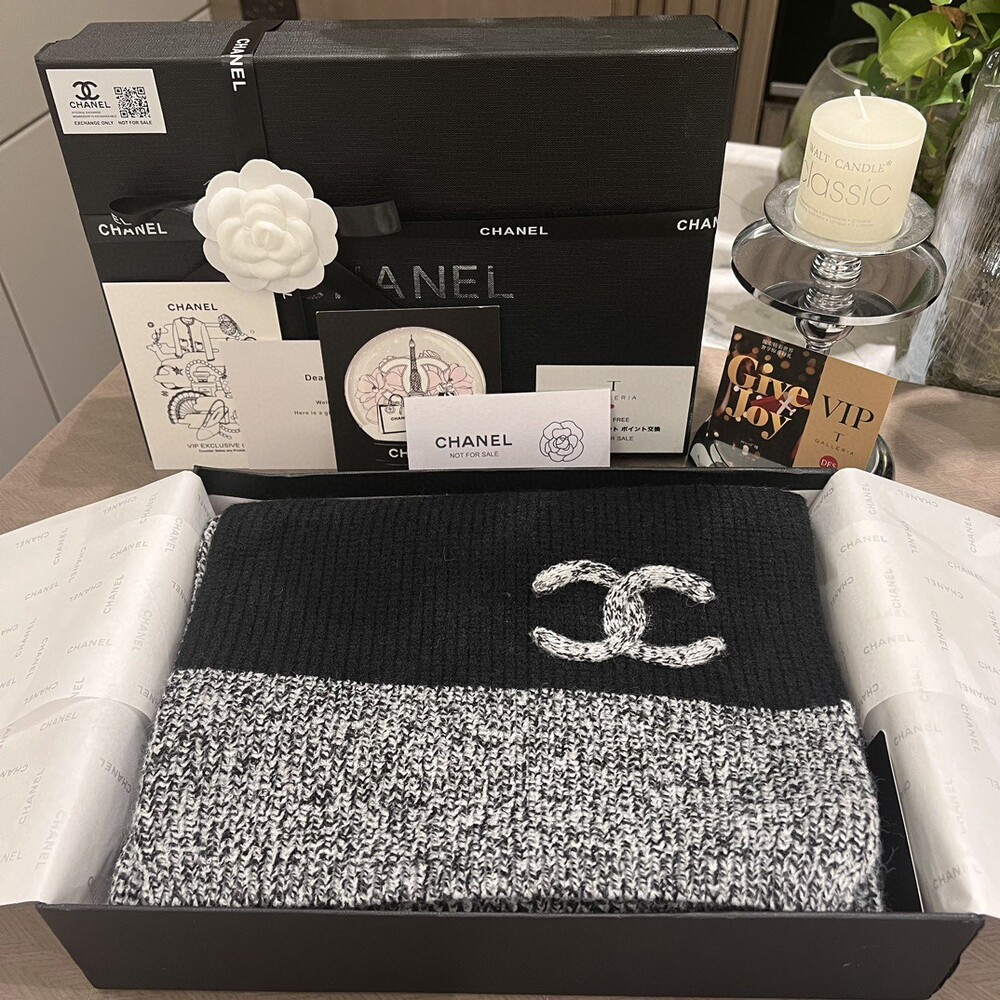 Chanel 24A Linen Gray Scarf Full package Exclusive beauty labelThis flax ash has a very soft texture. A very fashionable scarf hat that gives a feeling of not deliberate but very Western style should know that you have bought Chanel's scarf hat.The thick stick knit is very thick and soft texture is really super good Size: 175x28cm