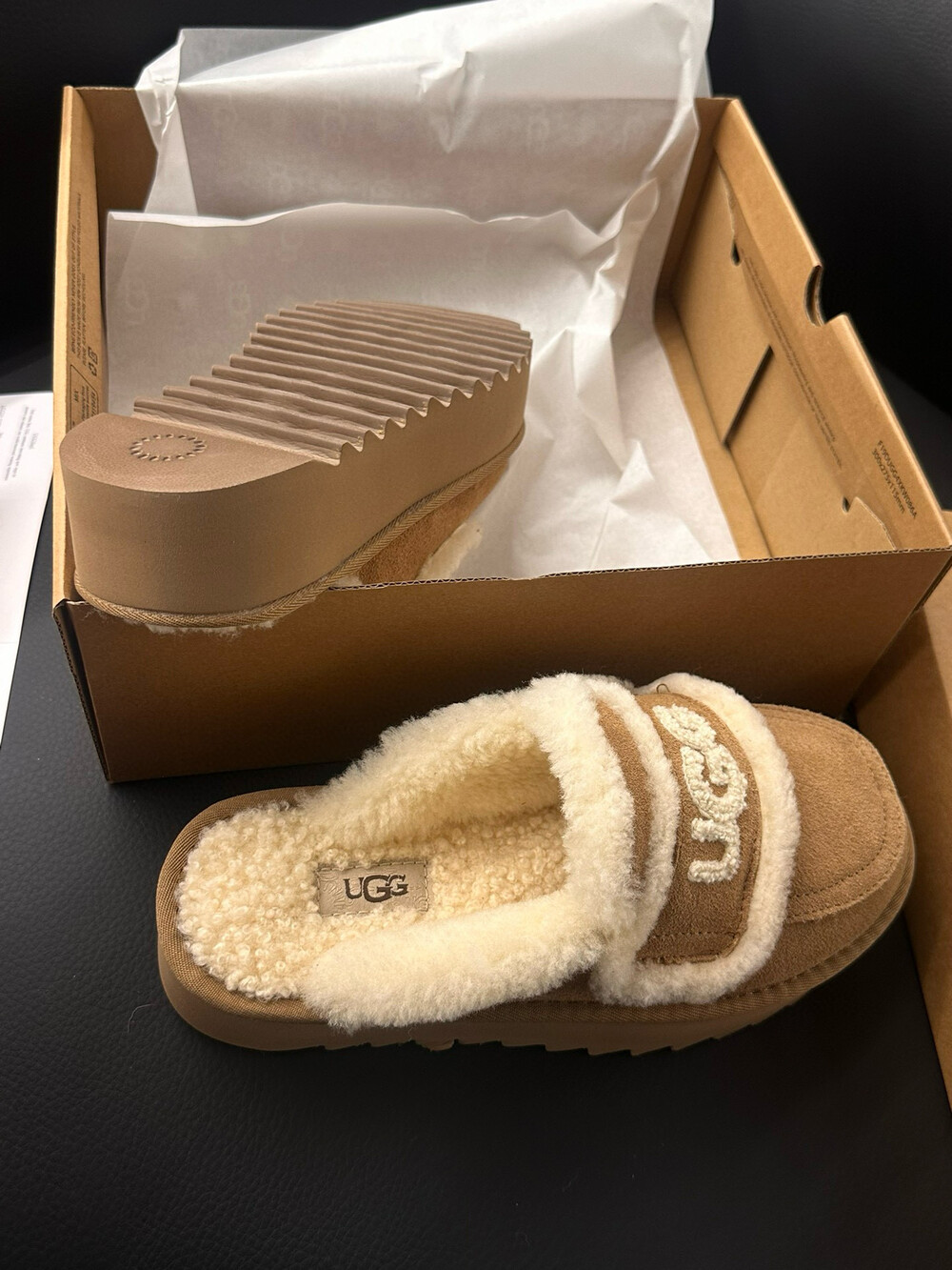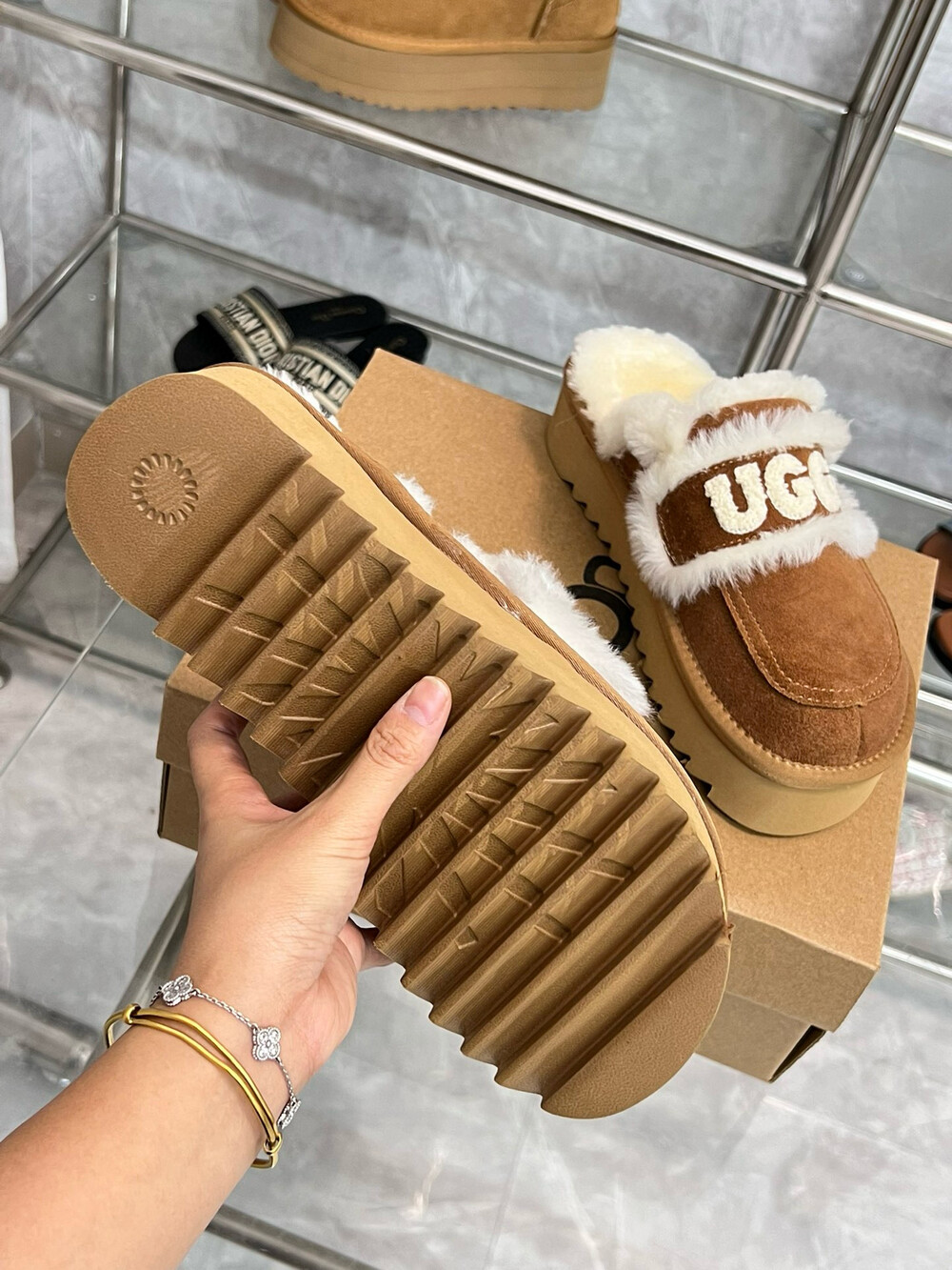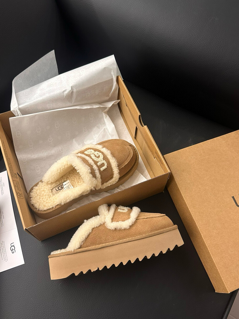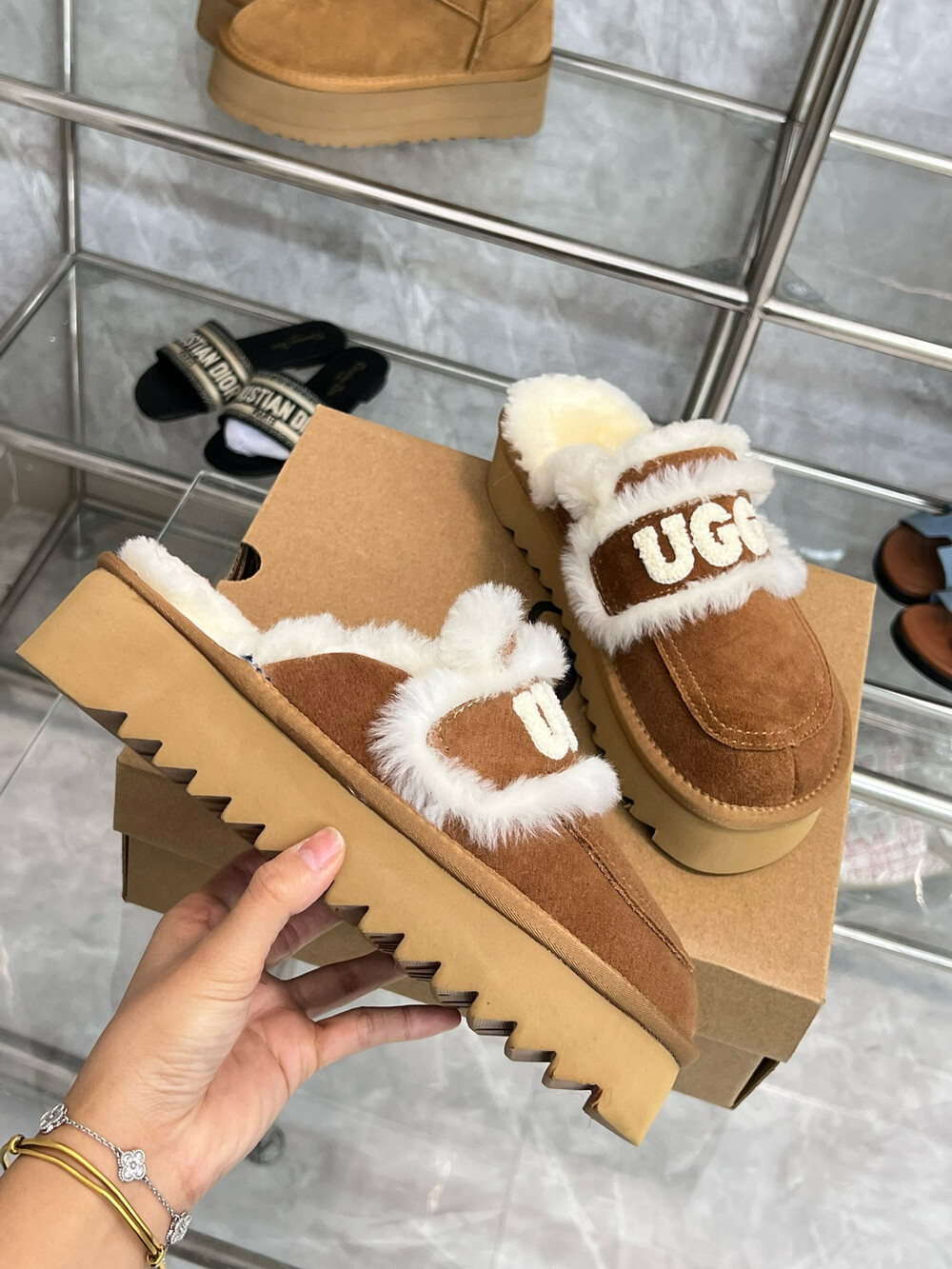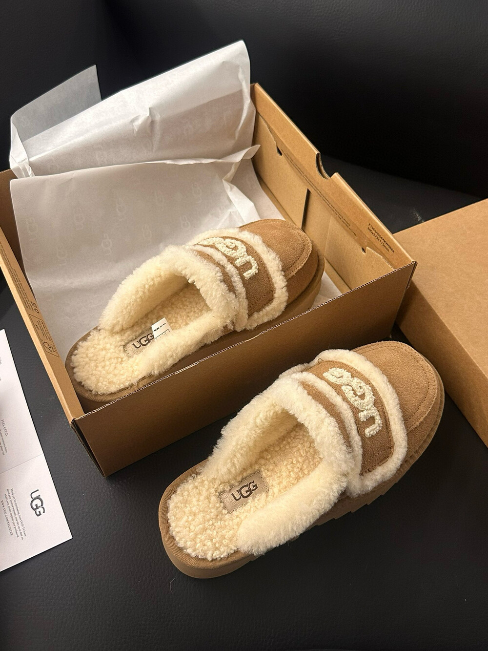 [수입] UGG 플리스 레터링 플랫폼 슬리퍼