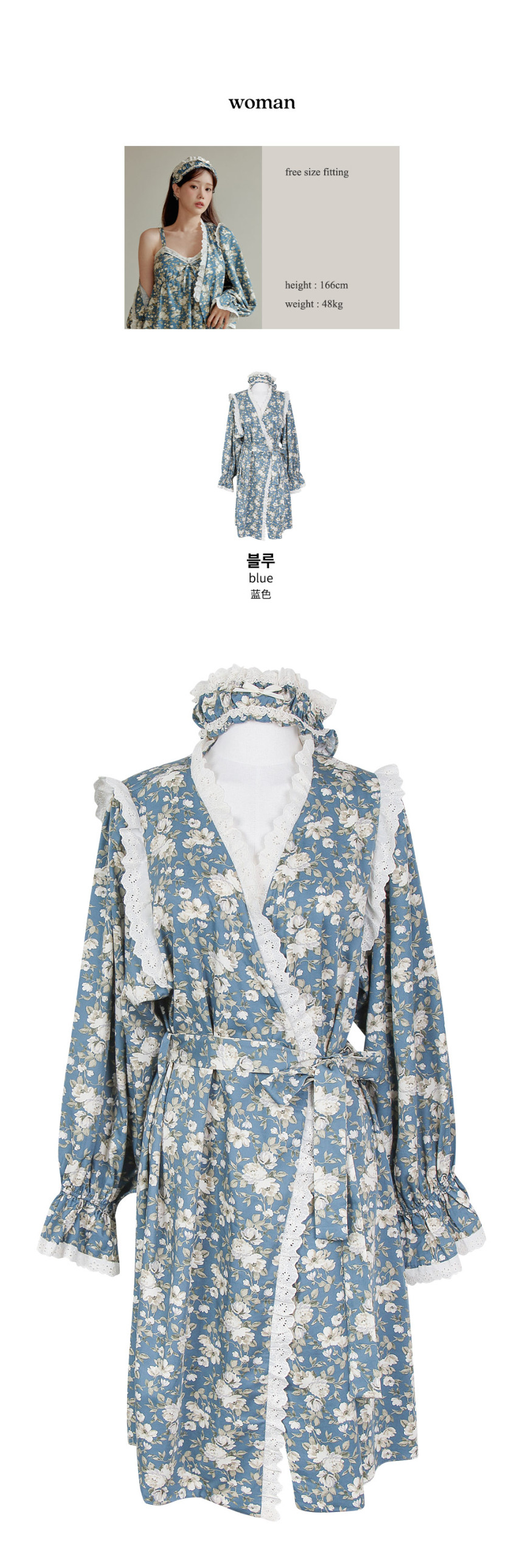여성 로엘라 로브가운 원피스 수면 잠옷