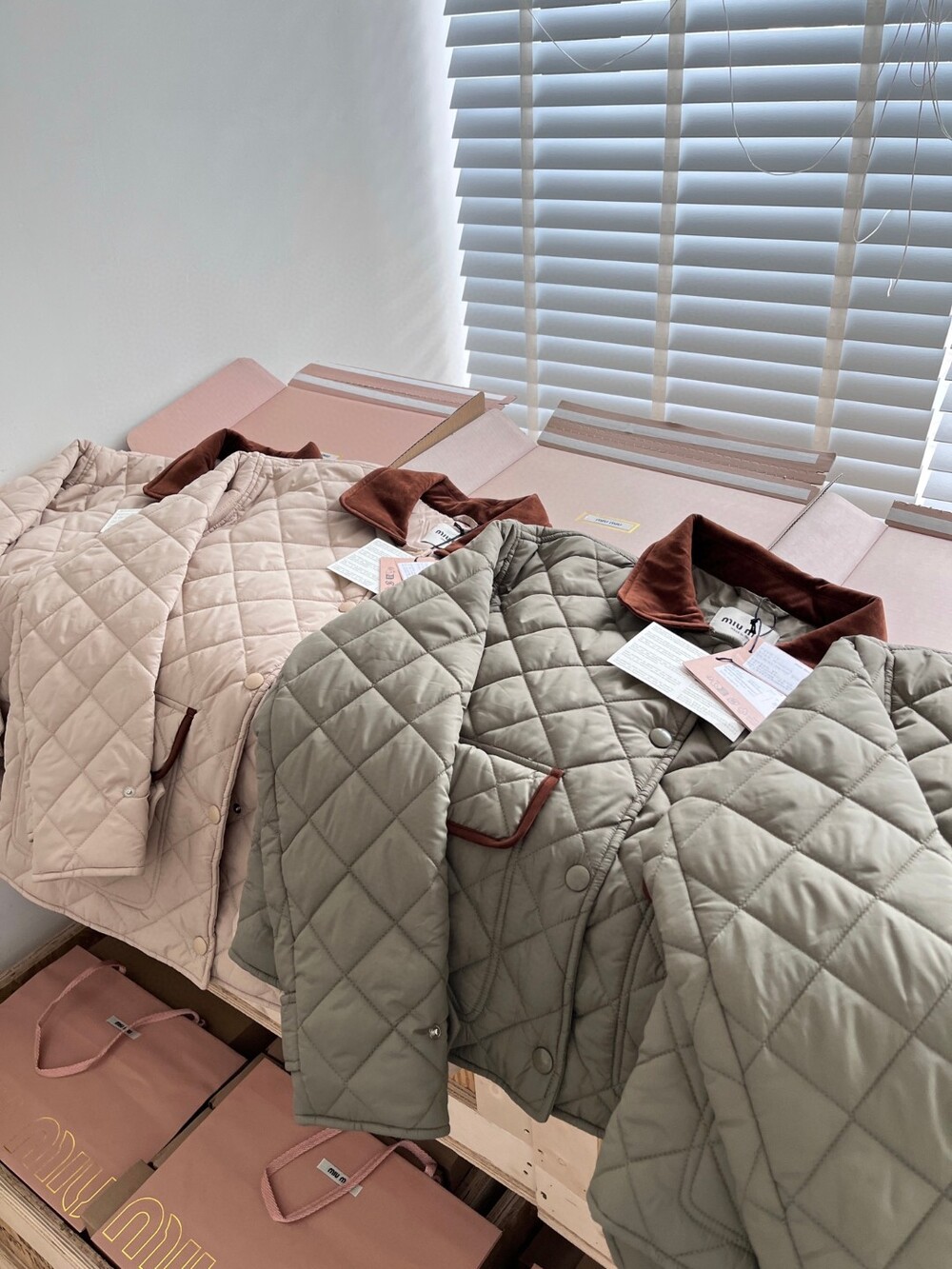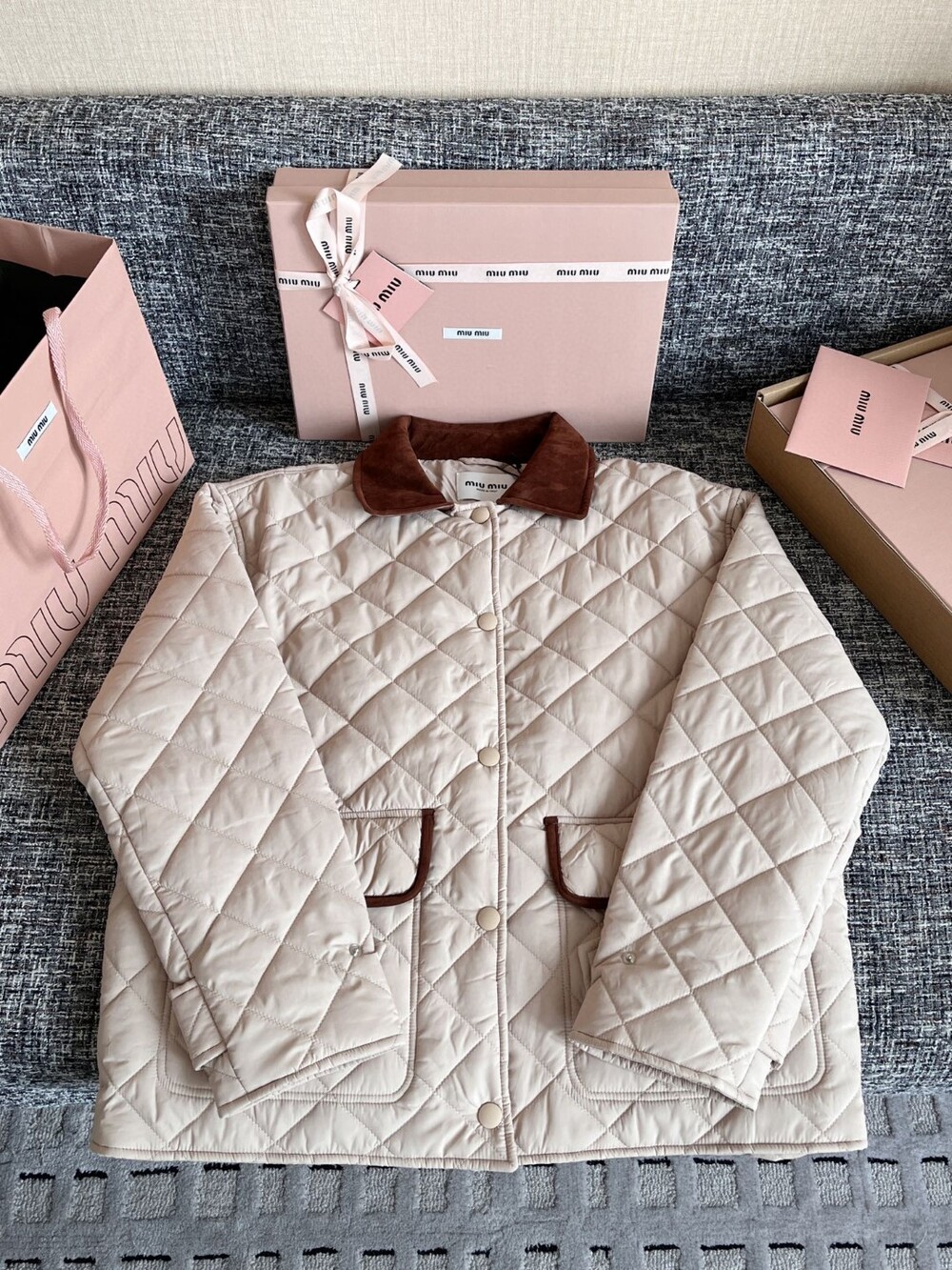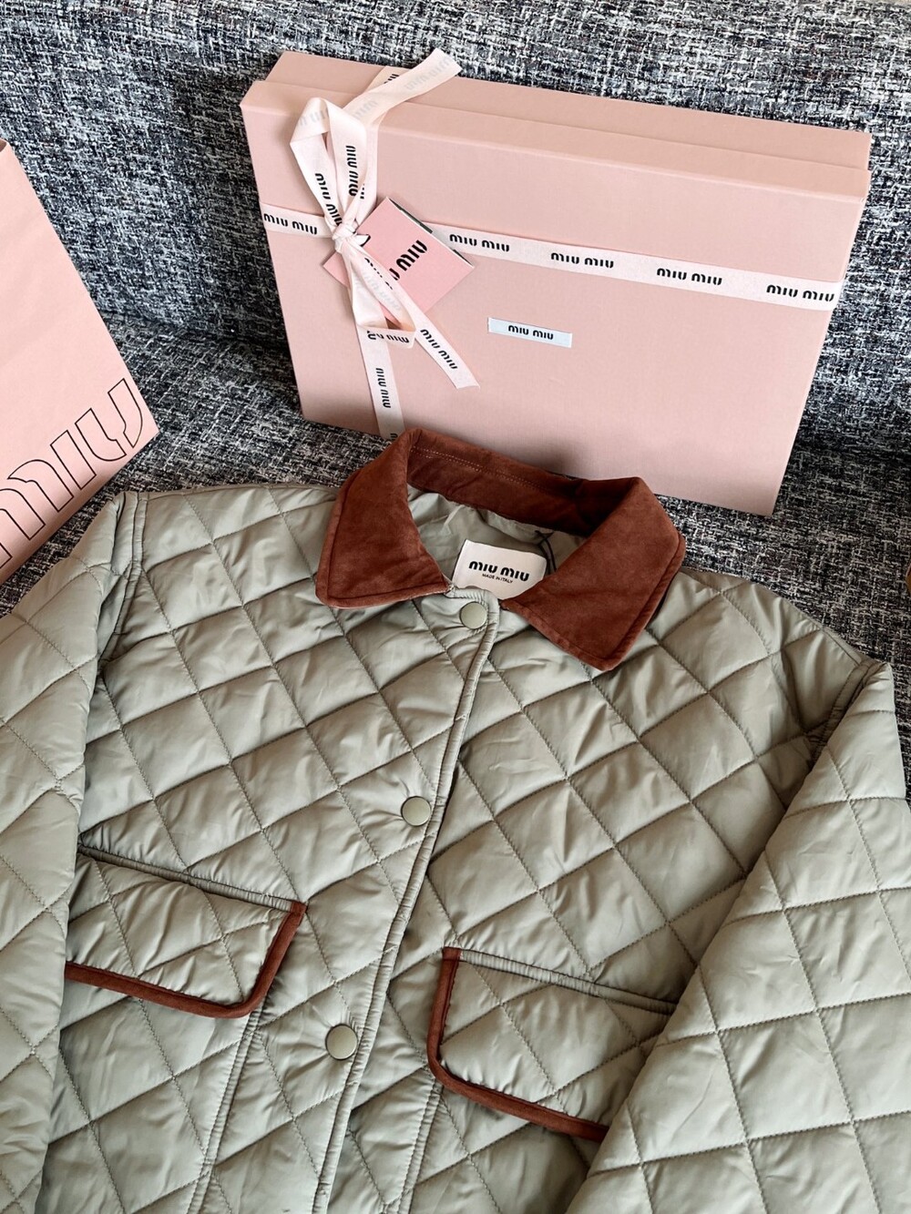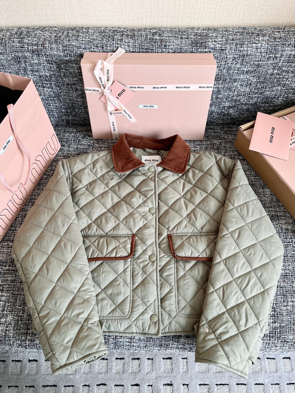 Q. 뮤뮤 코듀로이 다이아 패디드 점퍼