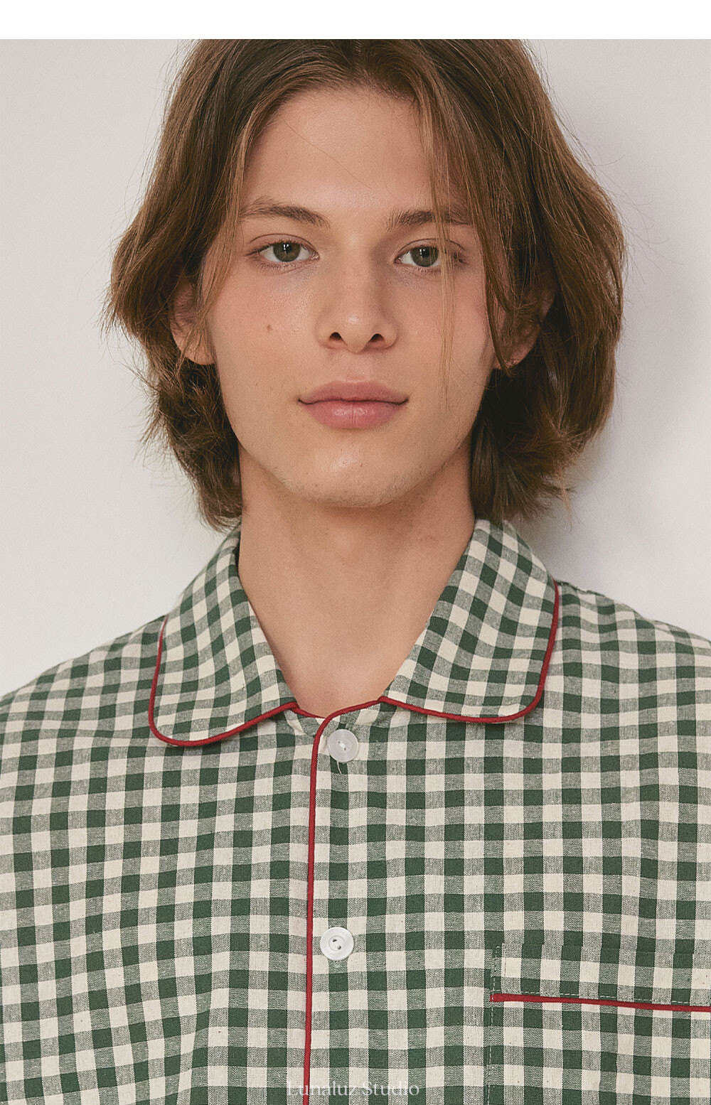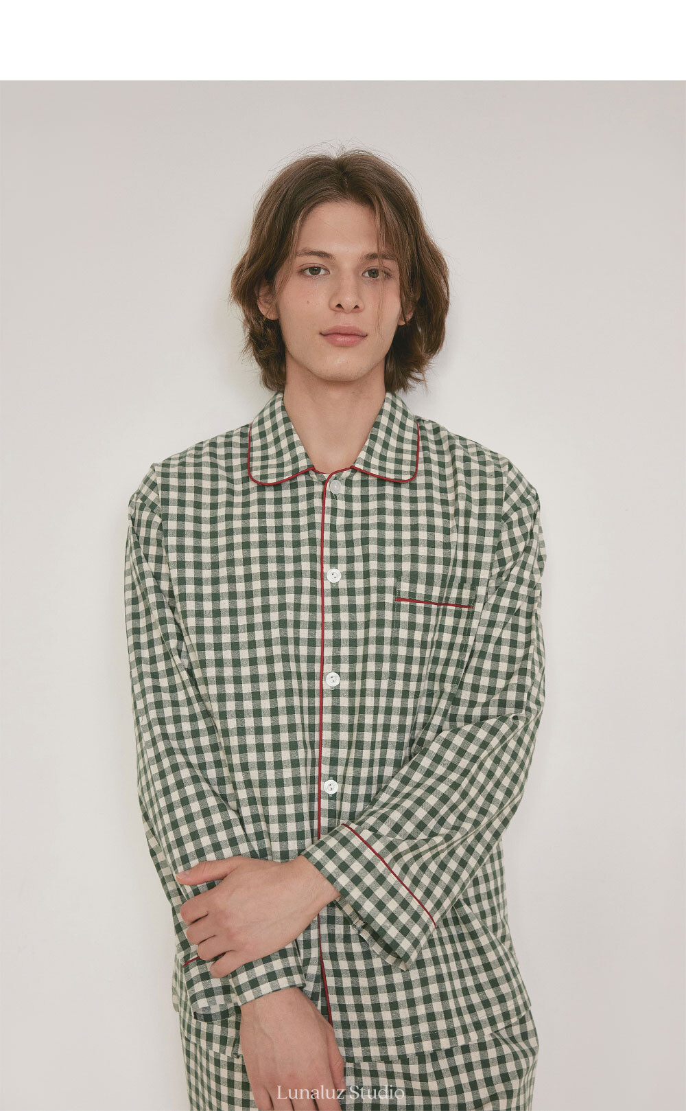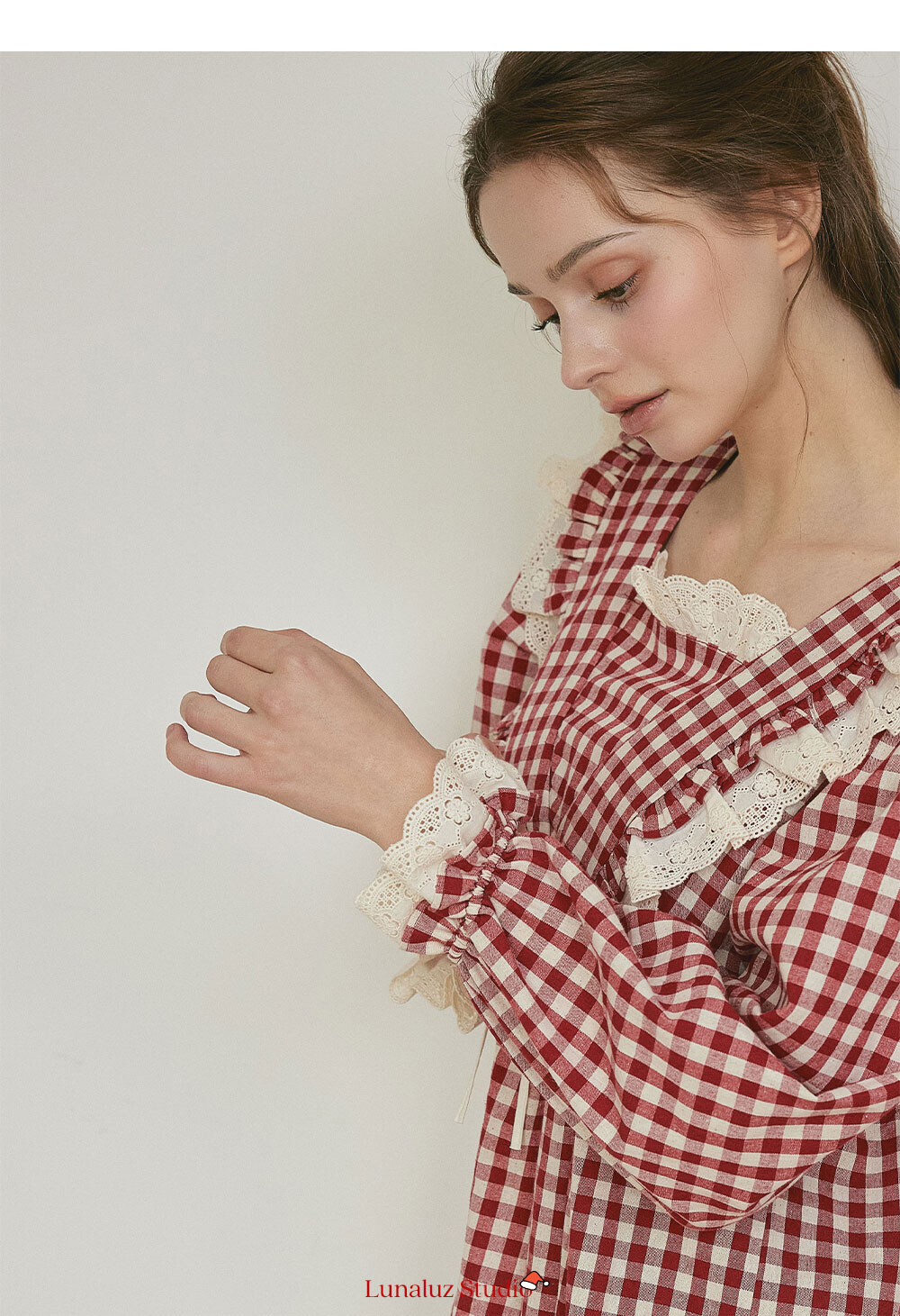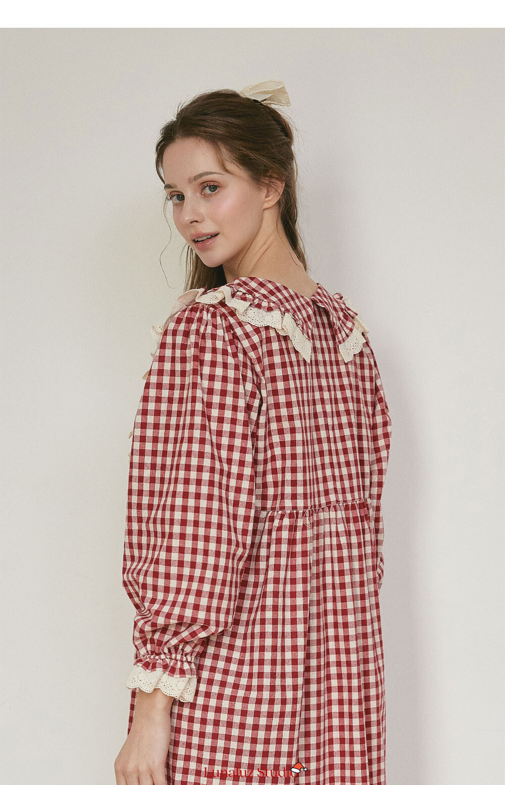 커플 메리체크 코튼 긴소매 케이프카라 원피스 잠옷