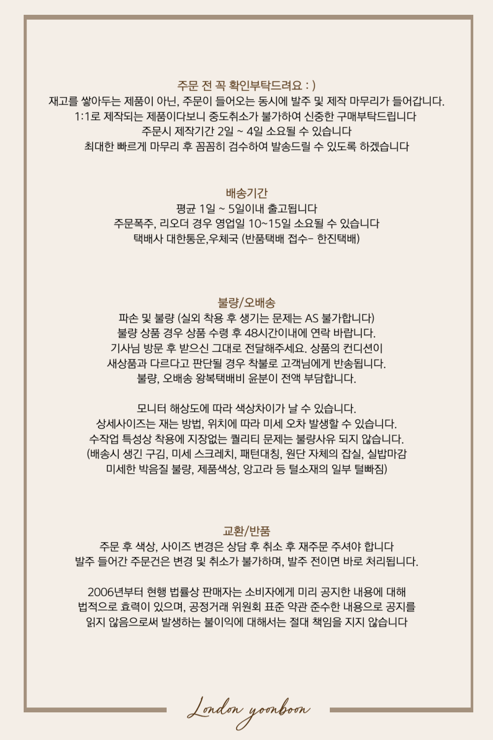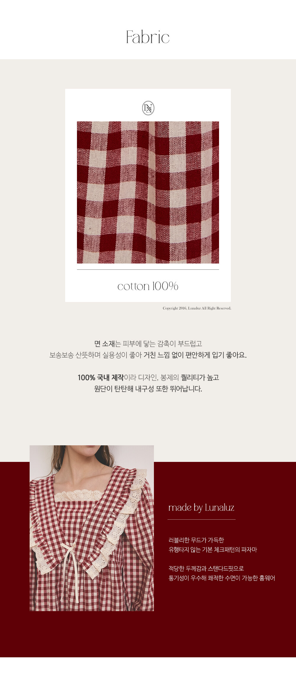 100% 국내 제작이라 소재, 디자인, 봉제의 퀄리티가 높습니다.
