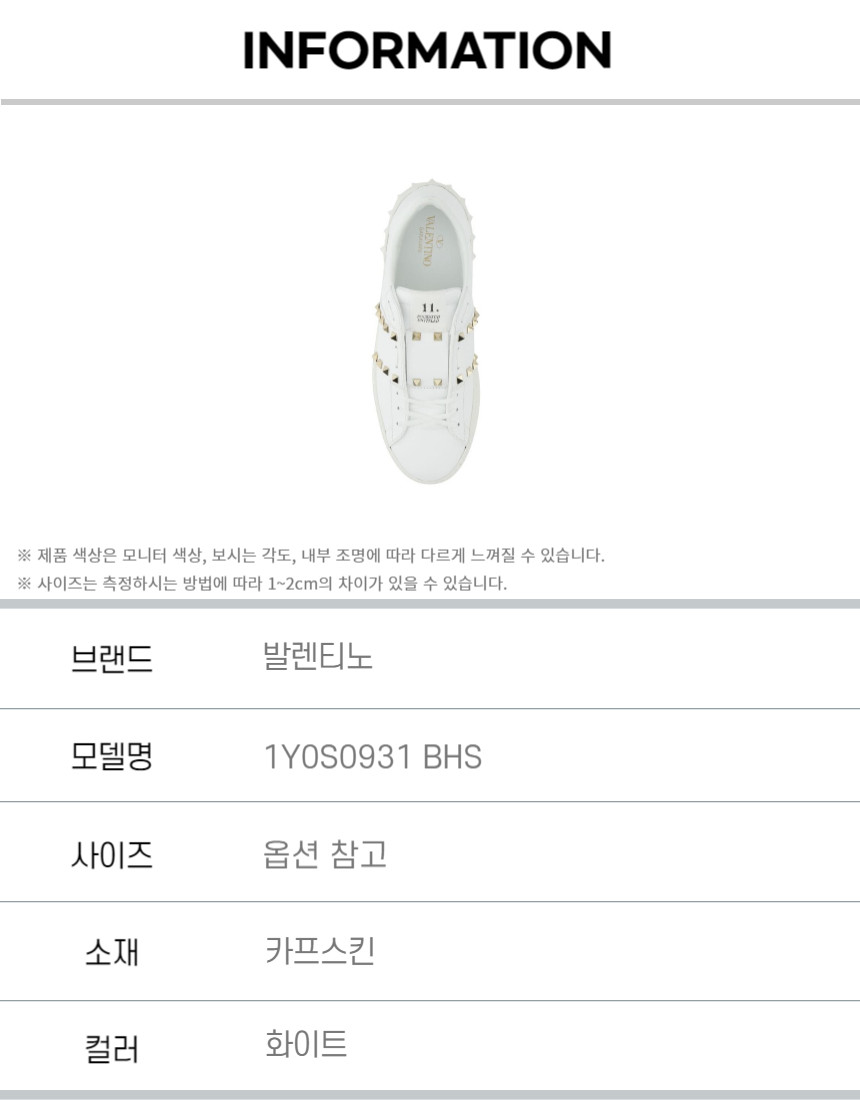 발렌티노 락스터드 언타이틀 레더 남성 스니커즈[BIANCO/40.41] 1Y2S0931 BHS