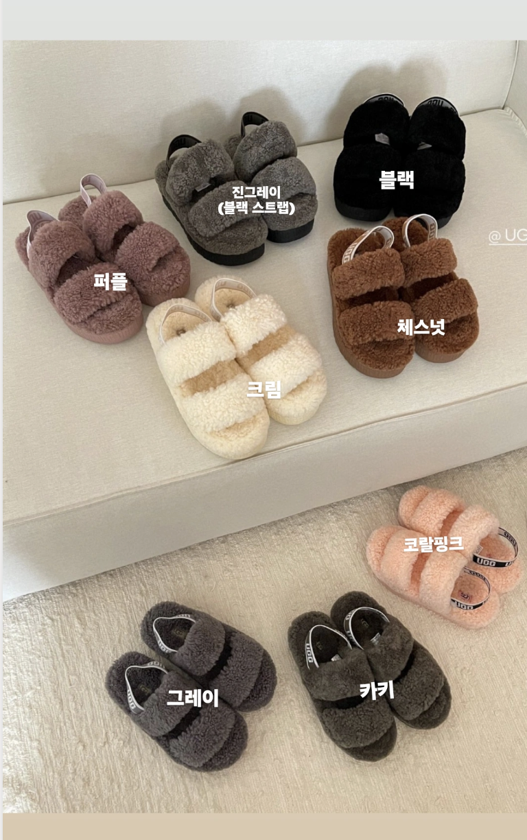 [수입] UGG 폼폼이 밴딩 슬라이드