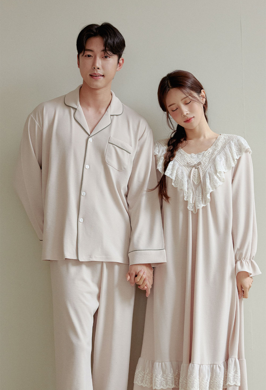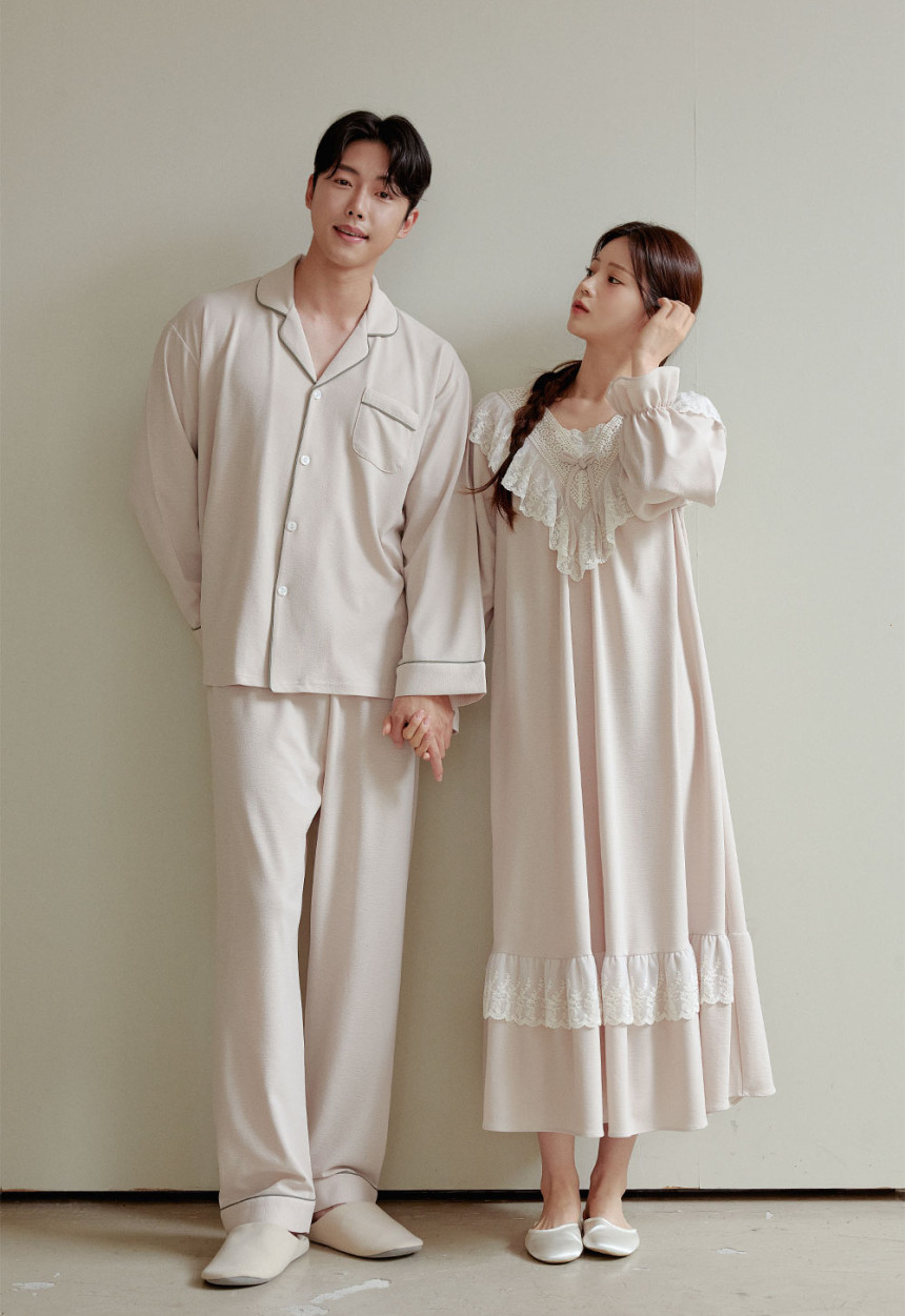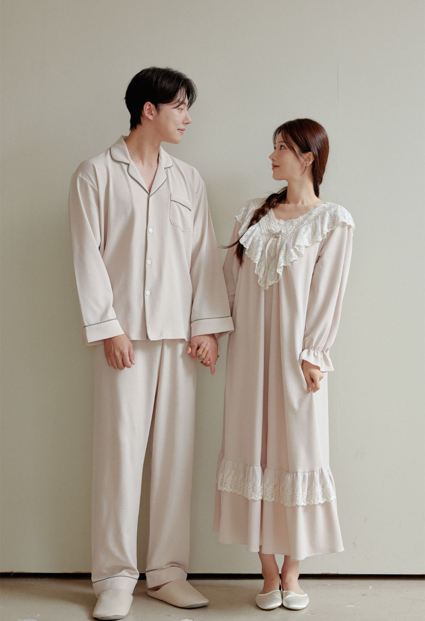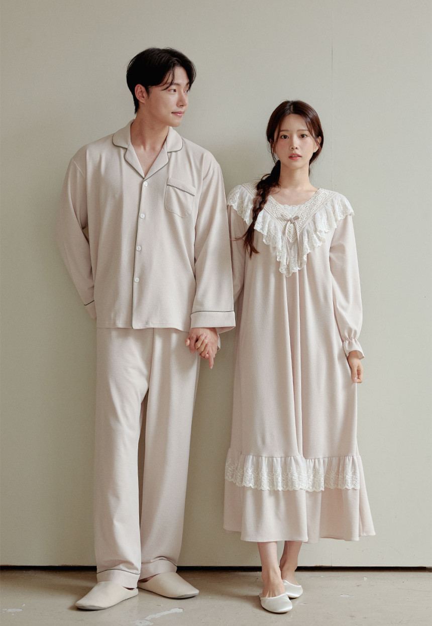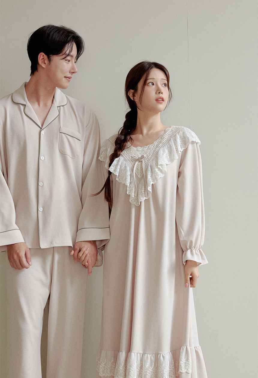 여성 남성 커플 프리다 원피스 투피스 카라 레이스 수면 잠옷