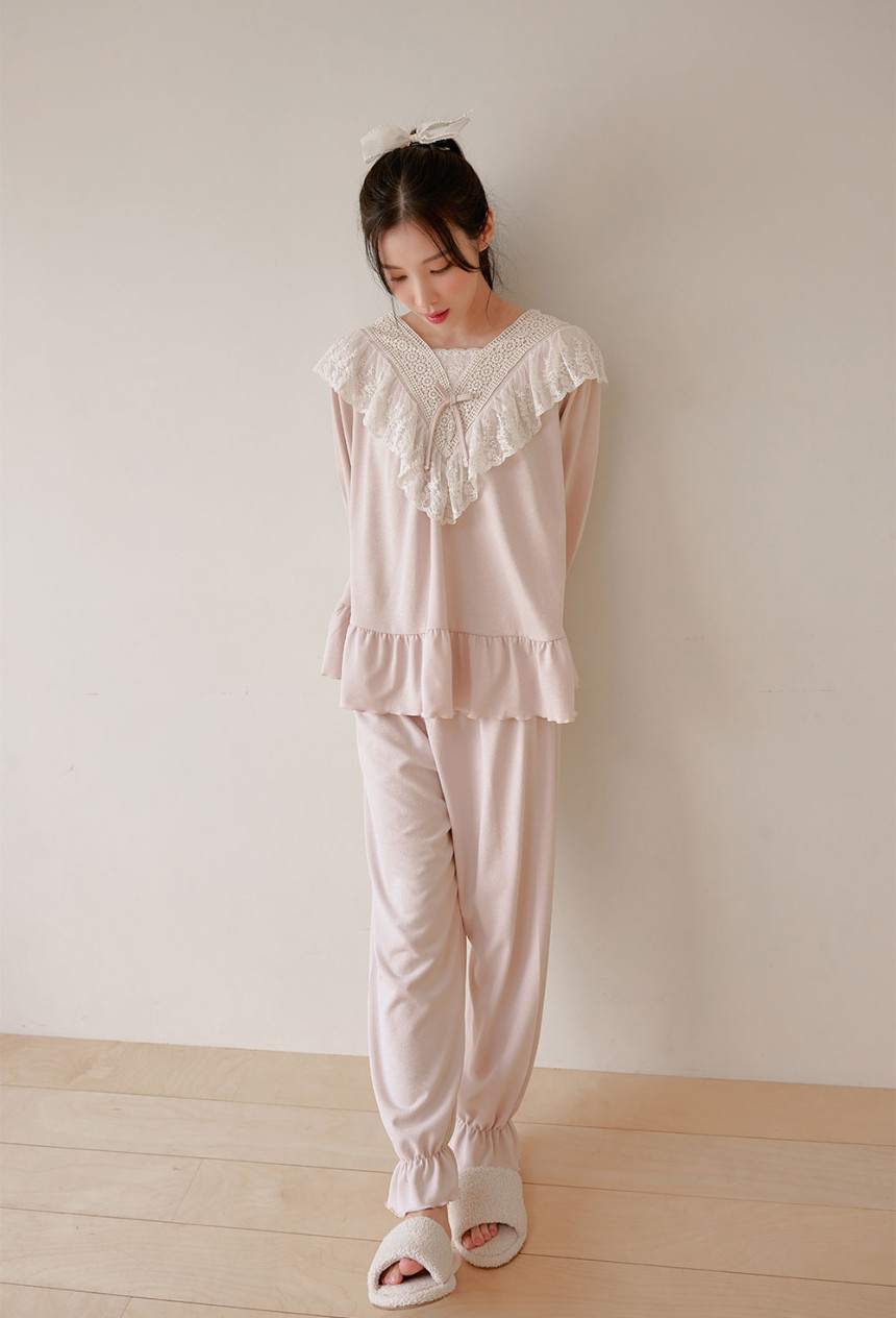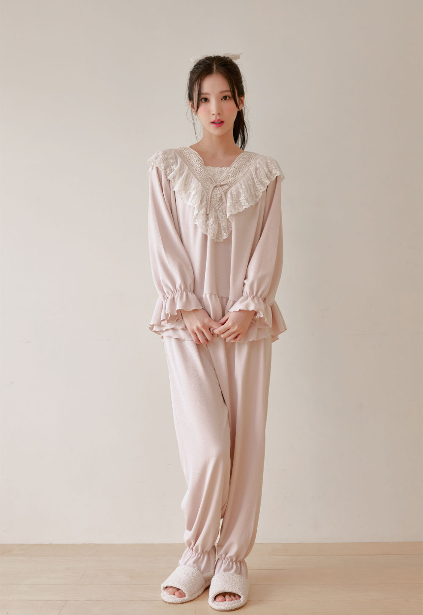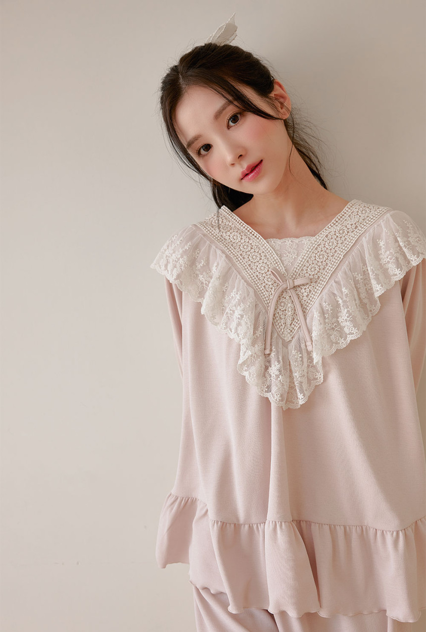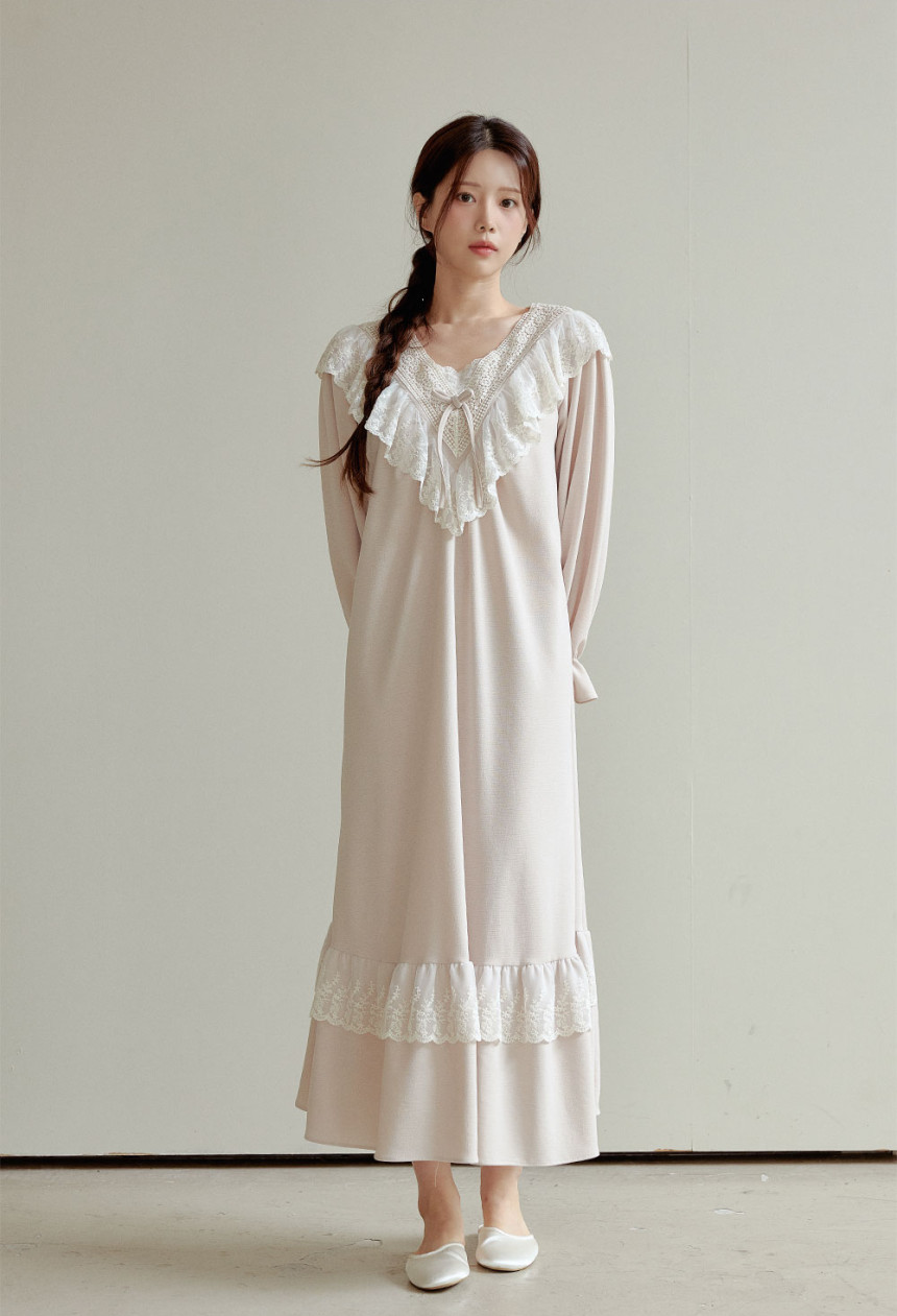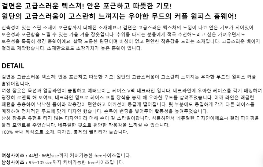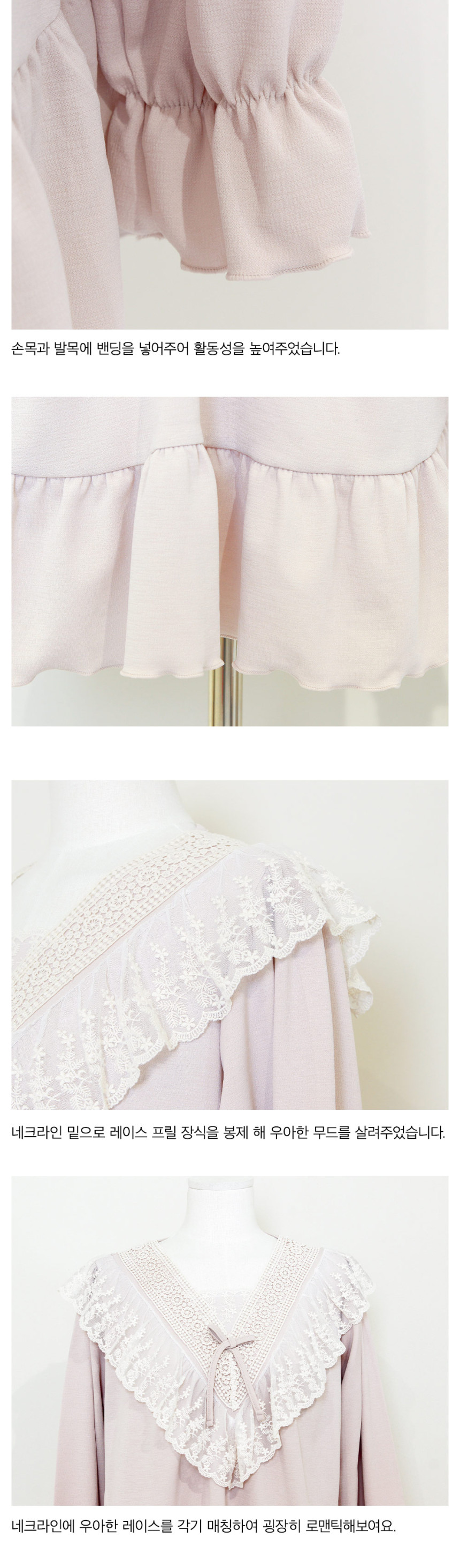 여성 남성 커플 프리다 원피스 투피스 카라 레이스 수면 잠옷