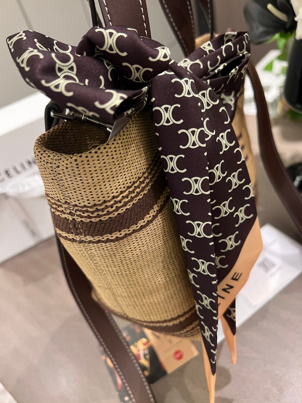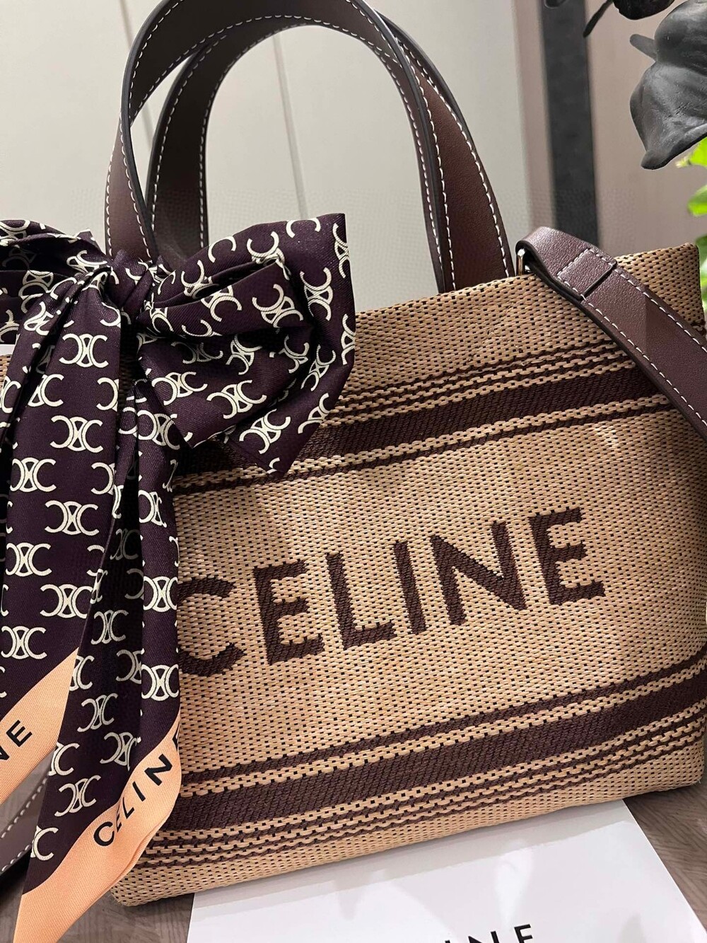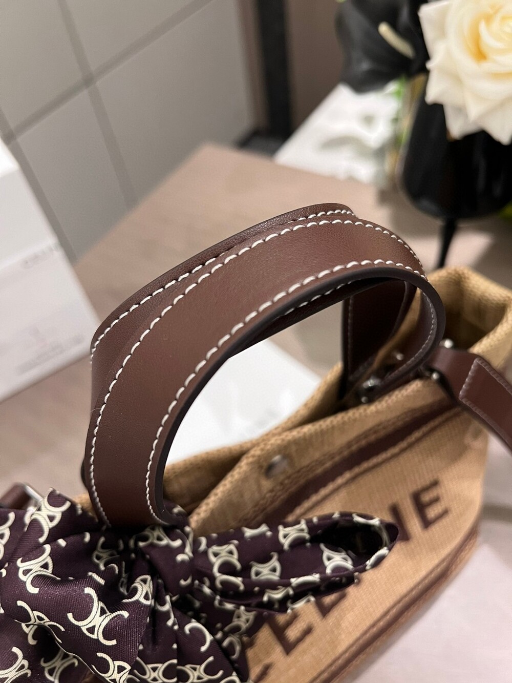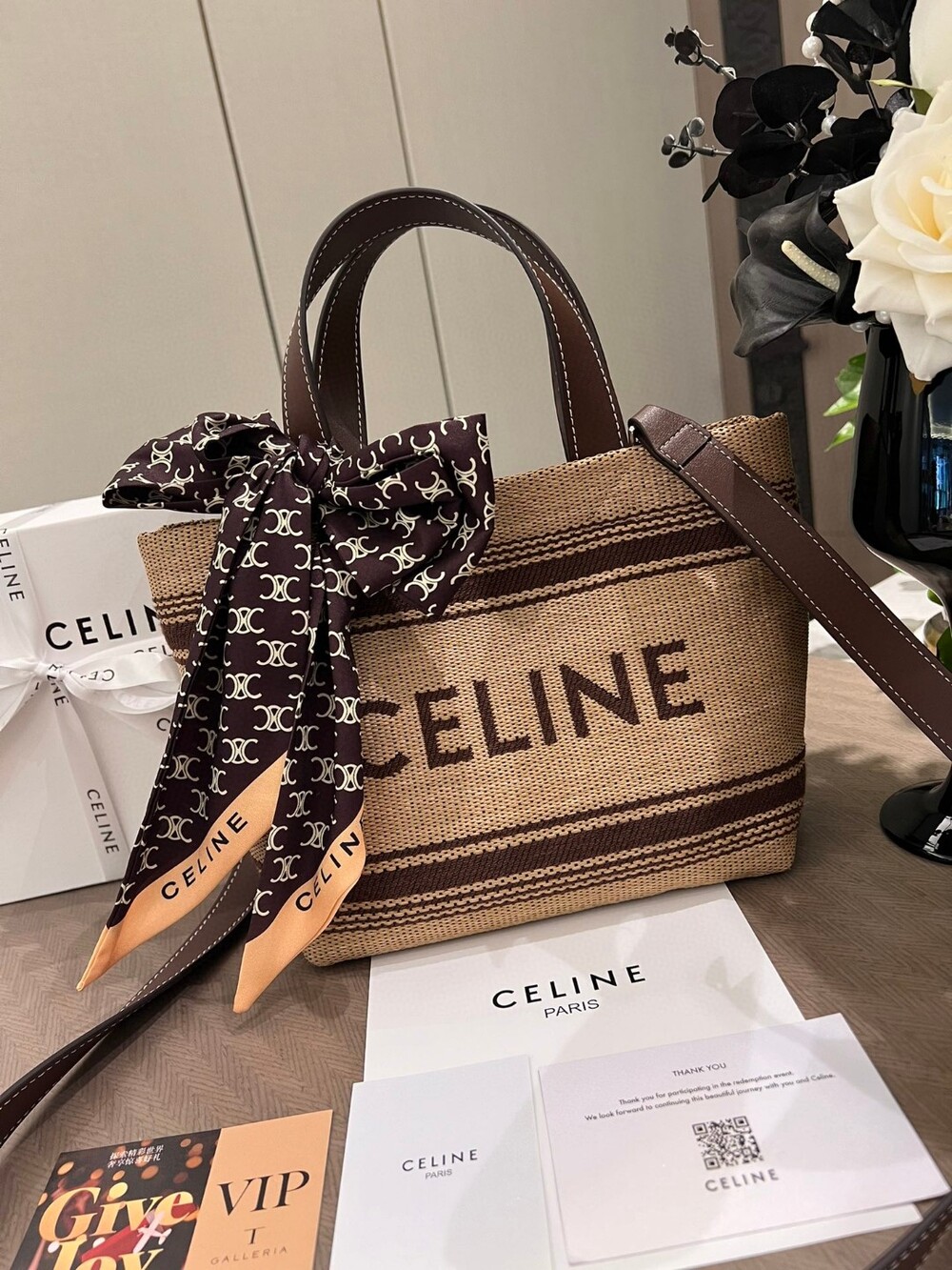 style mini tote from Celine, now released with exclusive internal labeling. Designed with both top handle and crossbody strap options, offering the perfect length for everyday use. Despite its compact size, it’s highly practical and always popular thanks to its effortless styling. Crafted from luxurious woven raffia, this mini tote bag is lightweight yet sturdy, making it ideal for warm-weather looks or casual outings. Size: Bottom length 22cm × Bottom width 12cm × Height 17cm