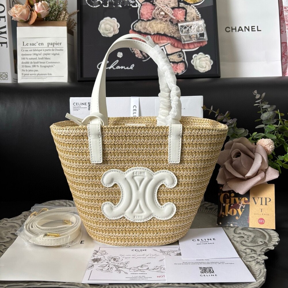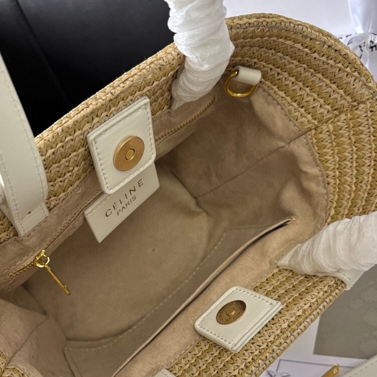A perfect summer mini tote from Celine Triomphe collection.Designed with effortless style and simplicity, this eye-catching bag can be worn as a crossbody or carried by hand thanks to its included long strap.Lightweight yet fashionable, it’s an ideal choice for summer outings, vacation looks, and daily wear.A must-have statement bag for your stylish summer moments and Instagram-worthy photos