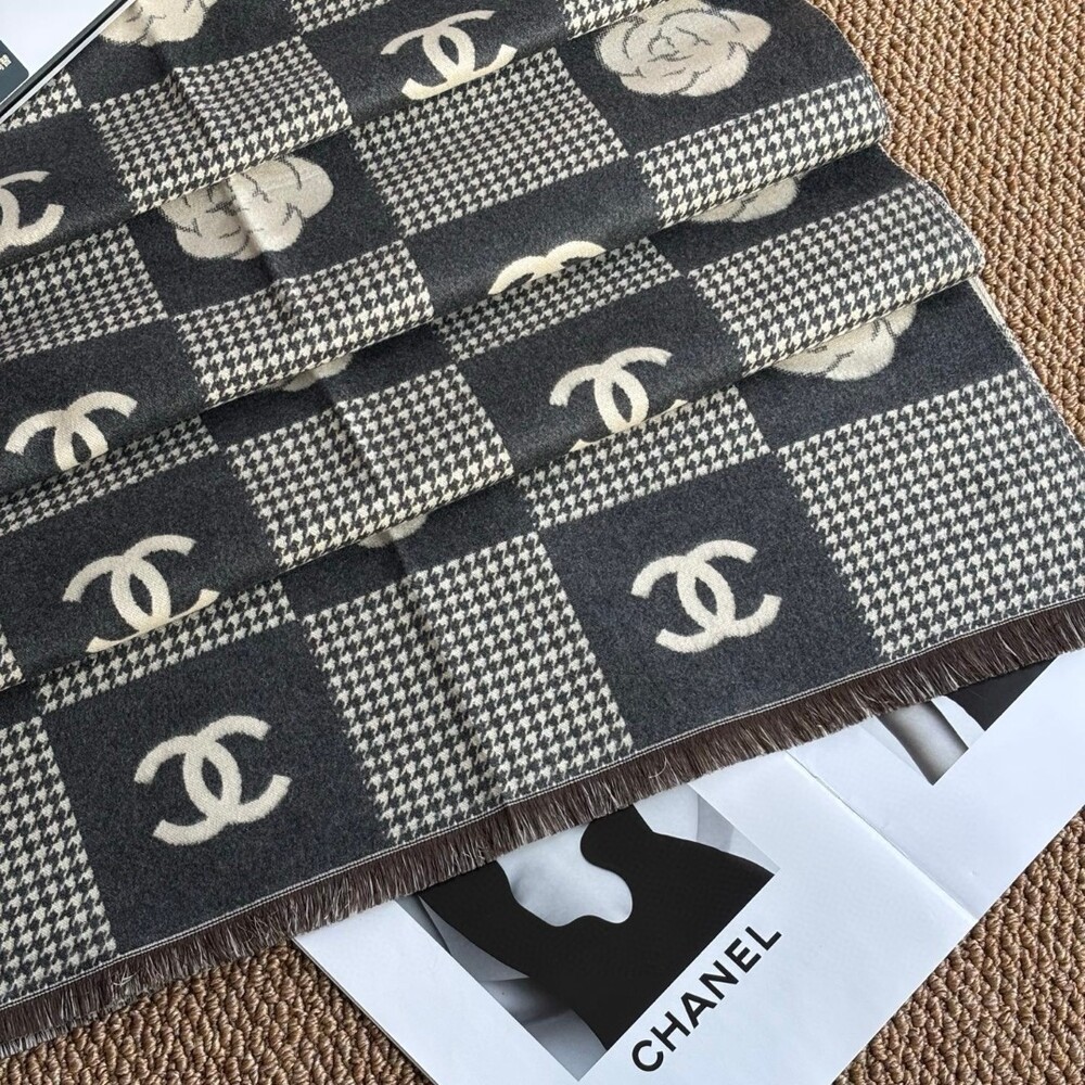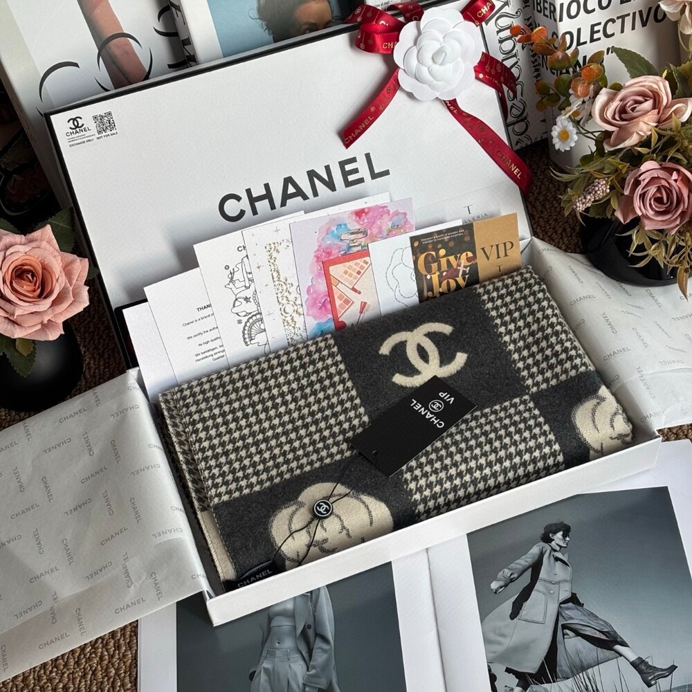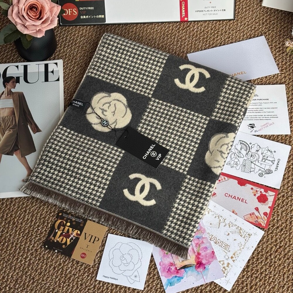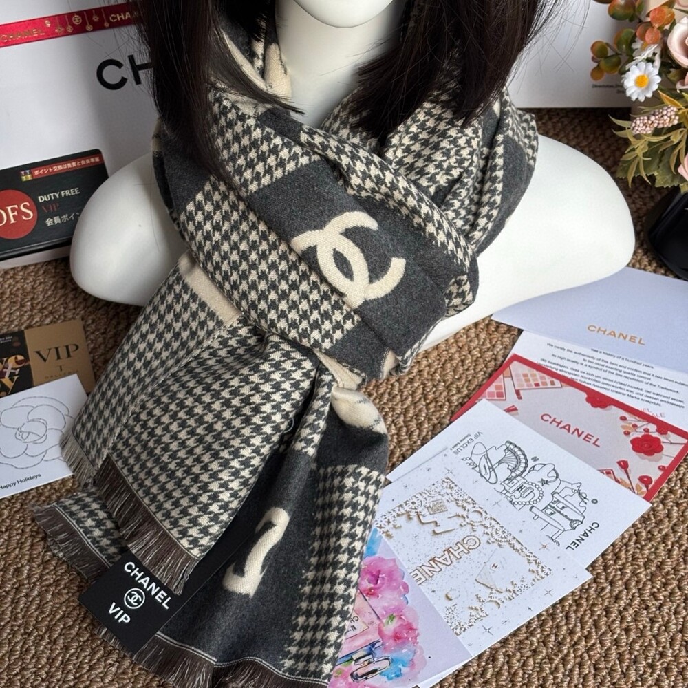 A premium CHANEL VIP exclusive cashmere plaid scarf,
