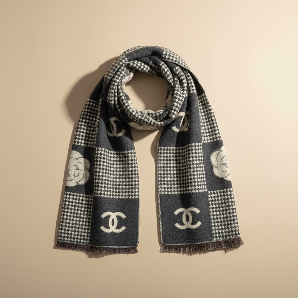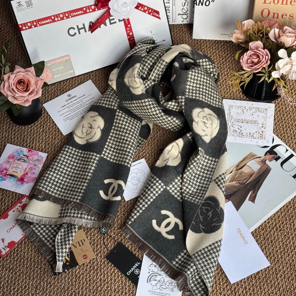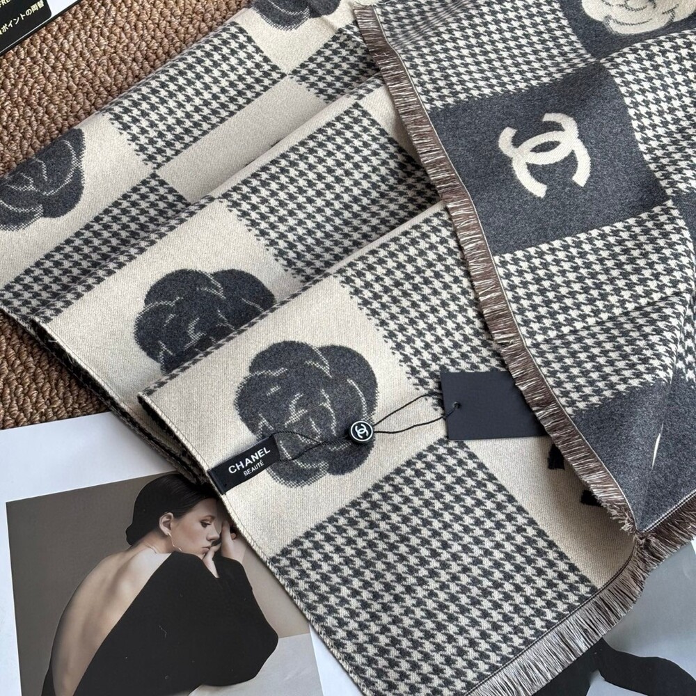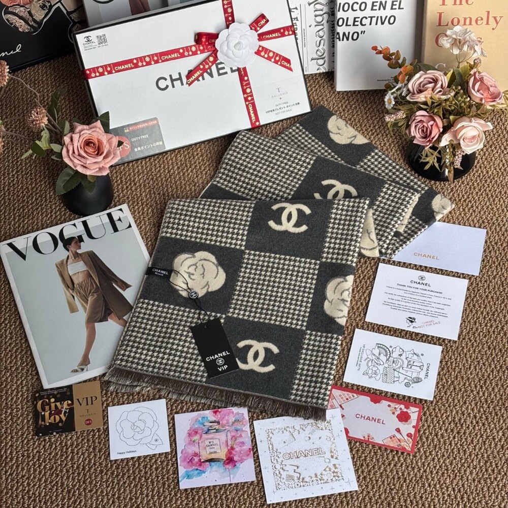 A premium CHANEL VIP exclusive cashmere plaid scarf,