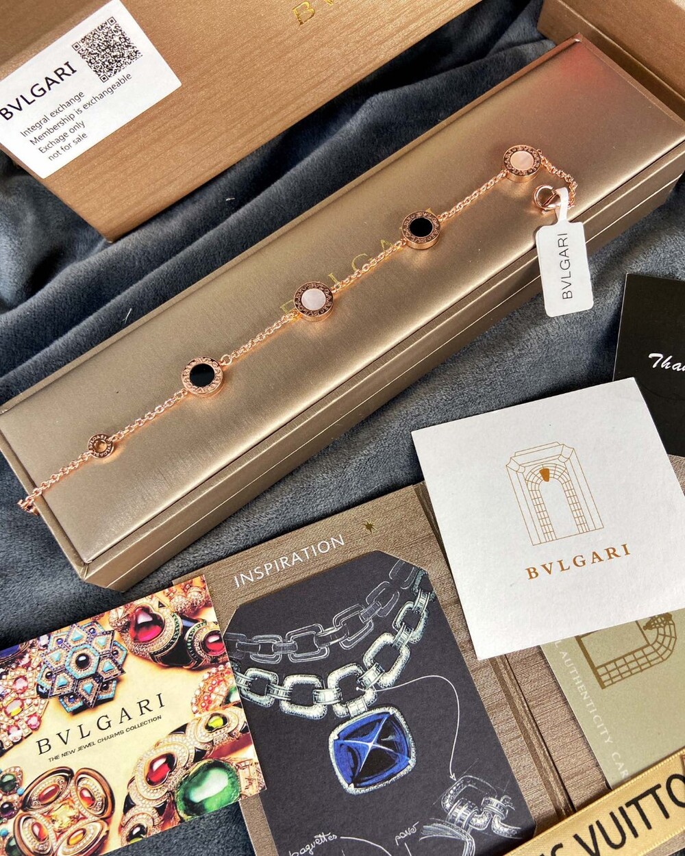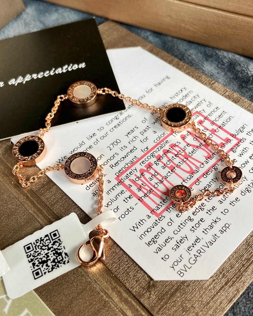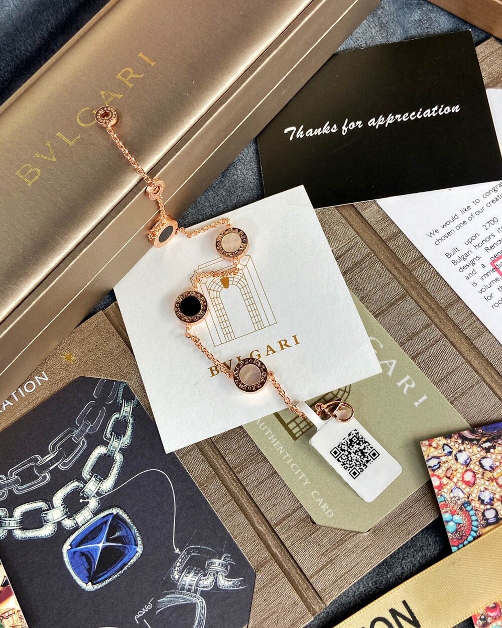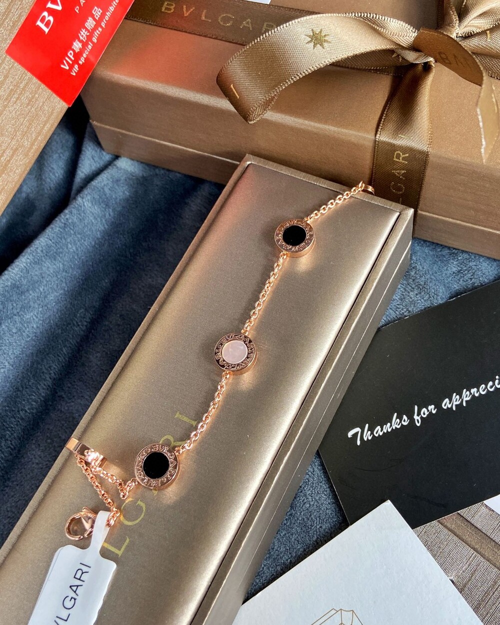 【New Product Points Exchange】 Overseas Bvlgari Points Redemption Classic Double-Sided Black Agate White Beetle Female Quad-ring Bracelet Bvlgari disc's iconic Bvlgari inscription, one side is a white mother side is black agate super beautiful, according to the color of the clothes can be arbitrarily matched on both sides, a pair of wear. 18k gold plated, color-preserving / Full set of gift boxes with anti-counterfeiting stickers and hot stamping cards