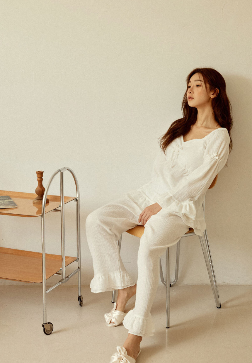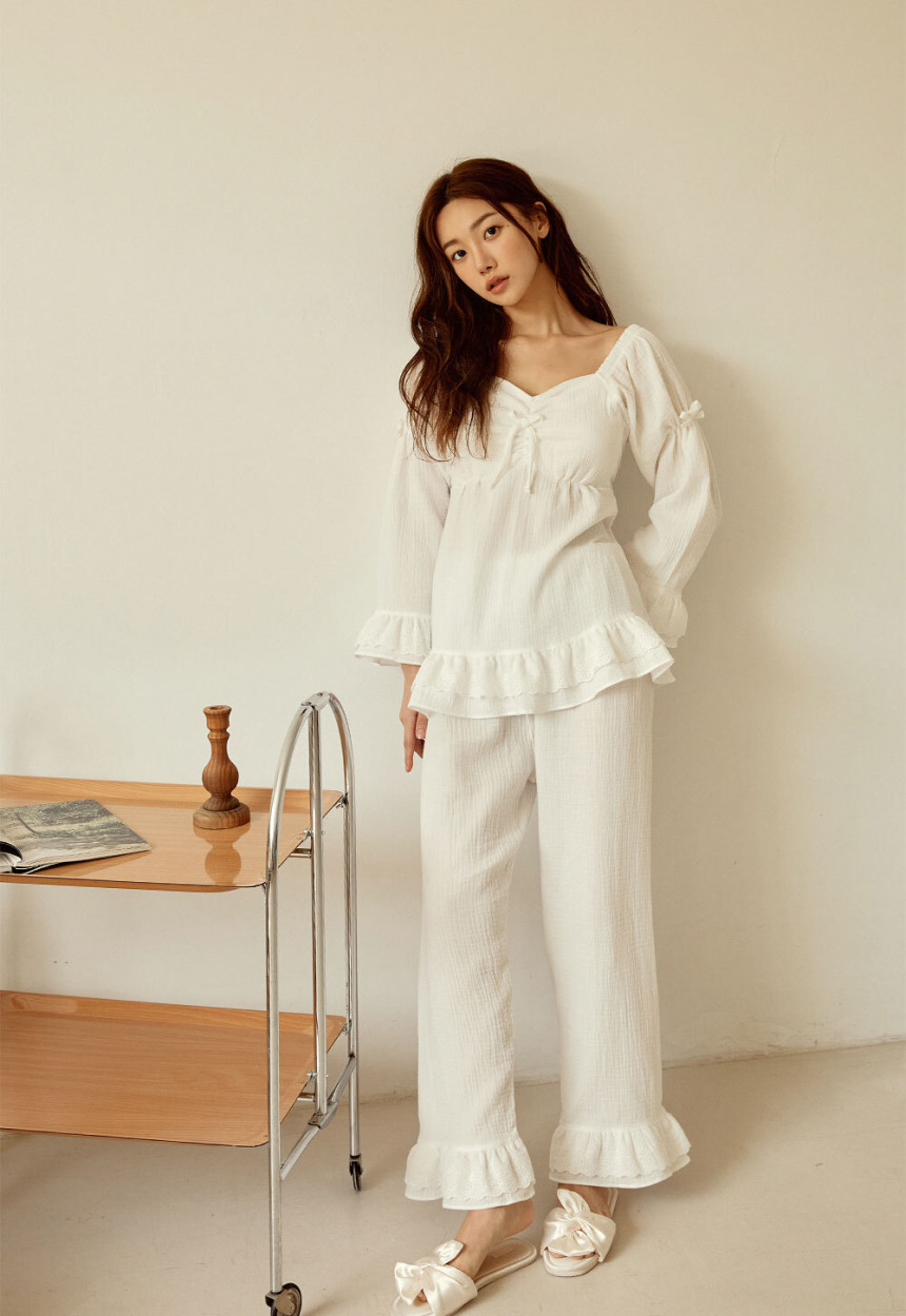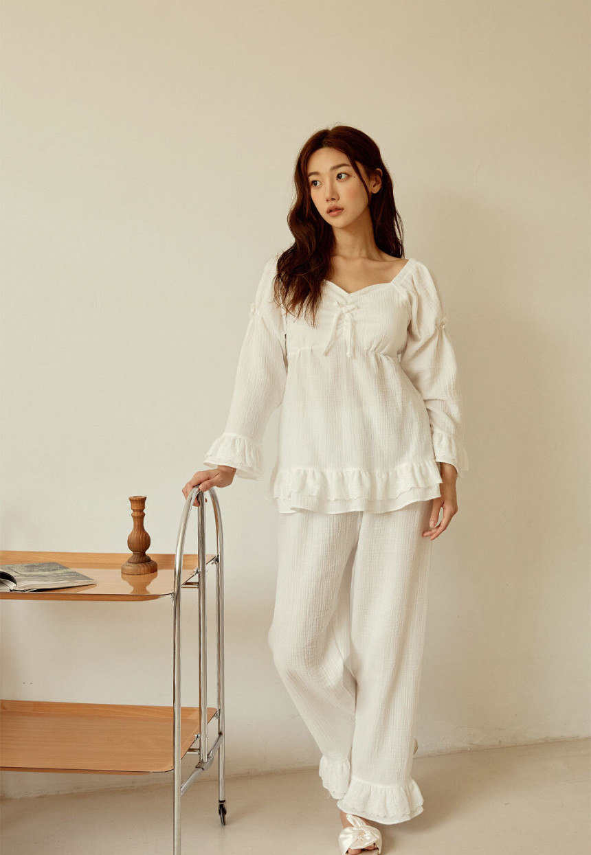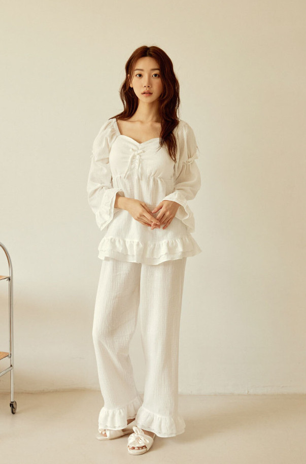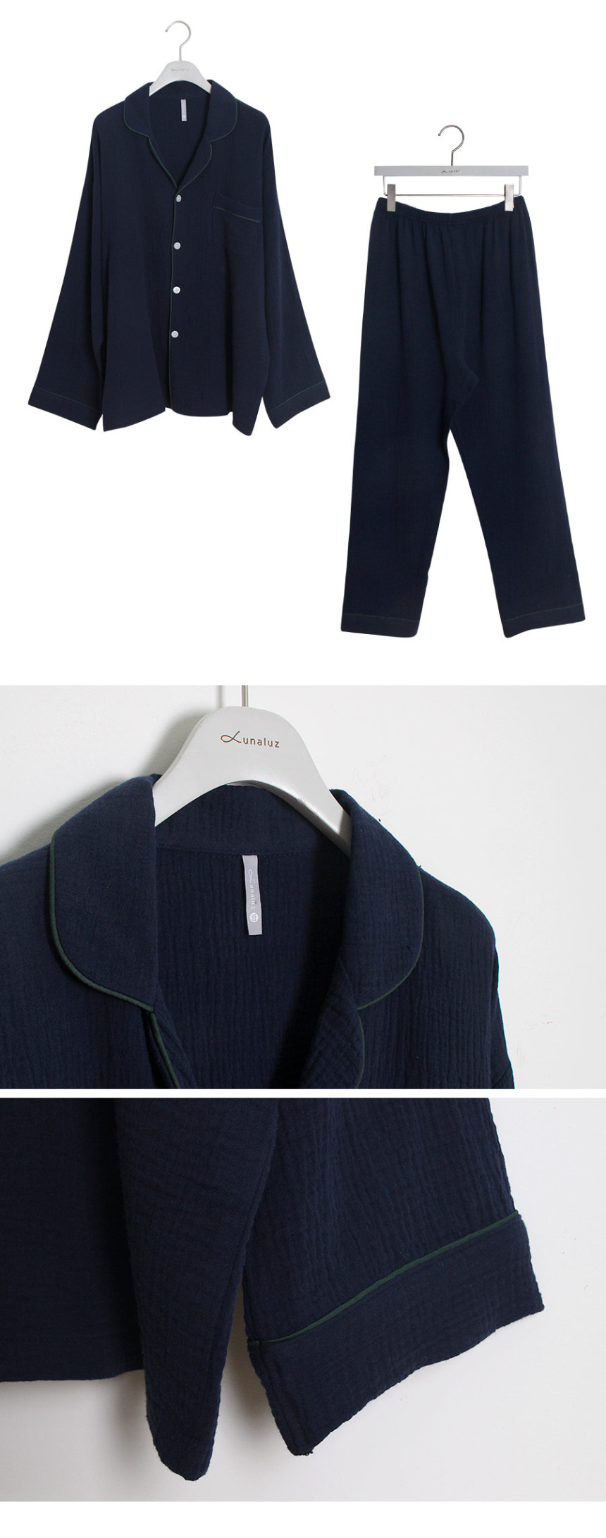 여성 남성 커플 샌프란 긴소매 원피스 투피스 수면 잠옷
