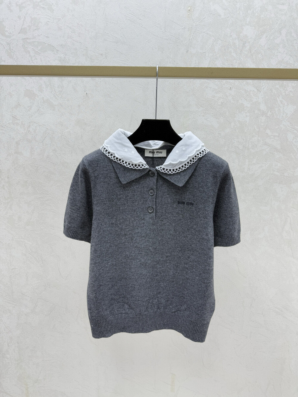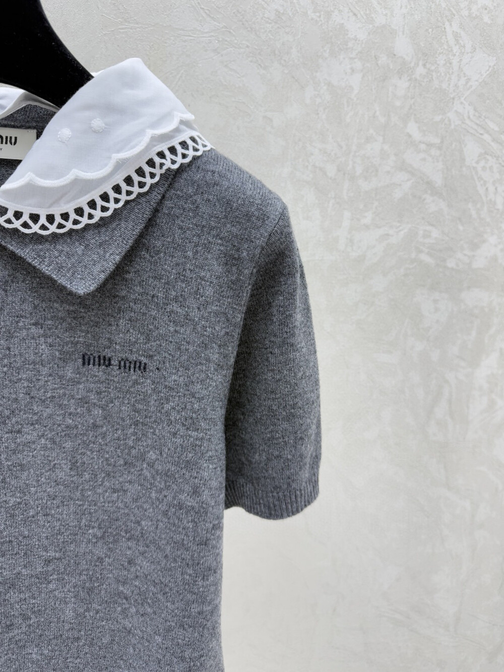 A. 뮤뮤 레이스 카라 니트 반소매