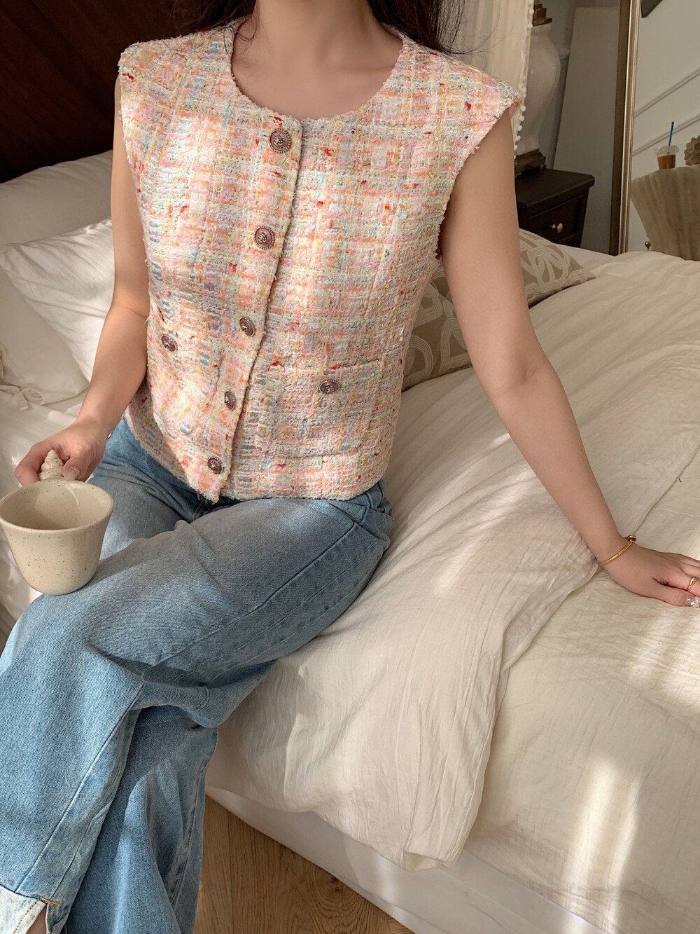 C. CC 파스텔 부클 트위드 베스트