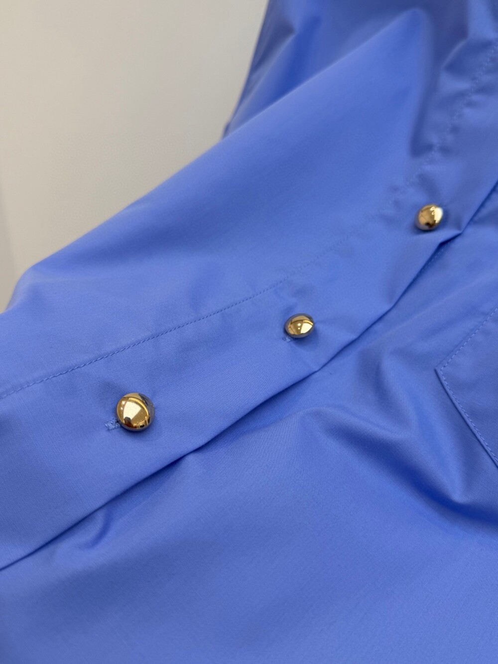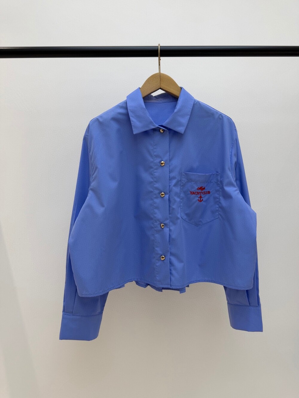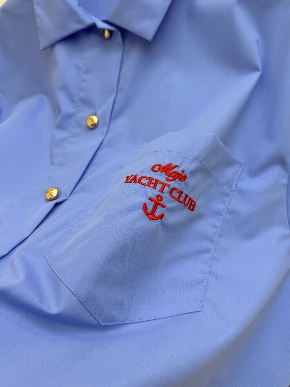 Q. MAJ 골드볼 블루 크롭 셔츠