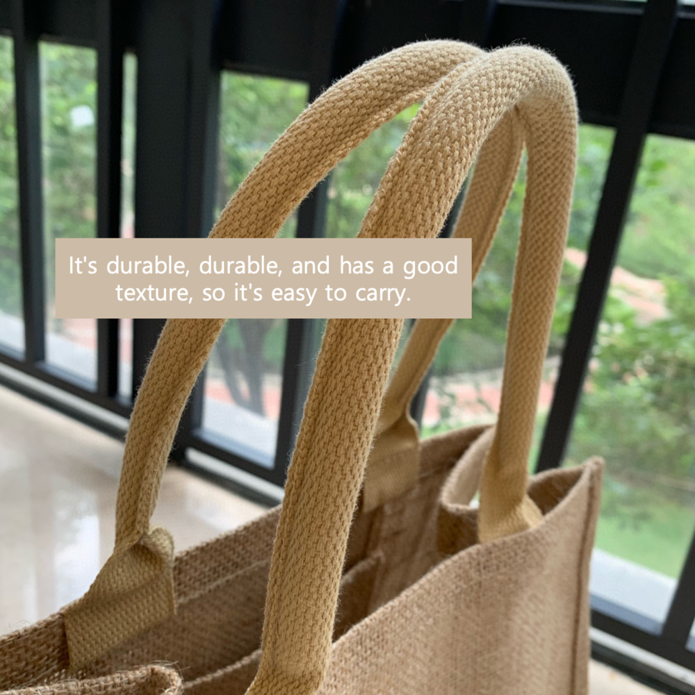 삼 (황마) 소재의 토트백은 친환경 마 소재를 사용하여 내부에 방수층이 있으며,