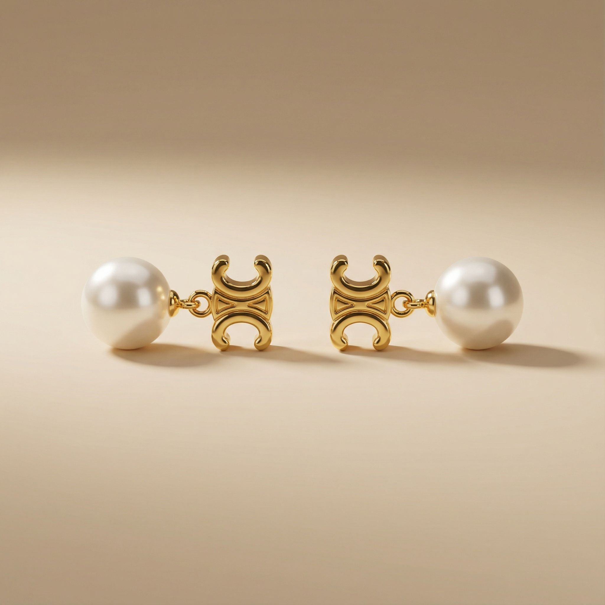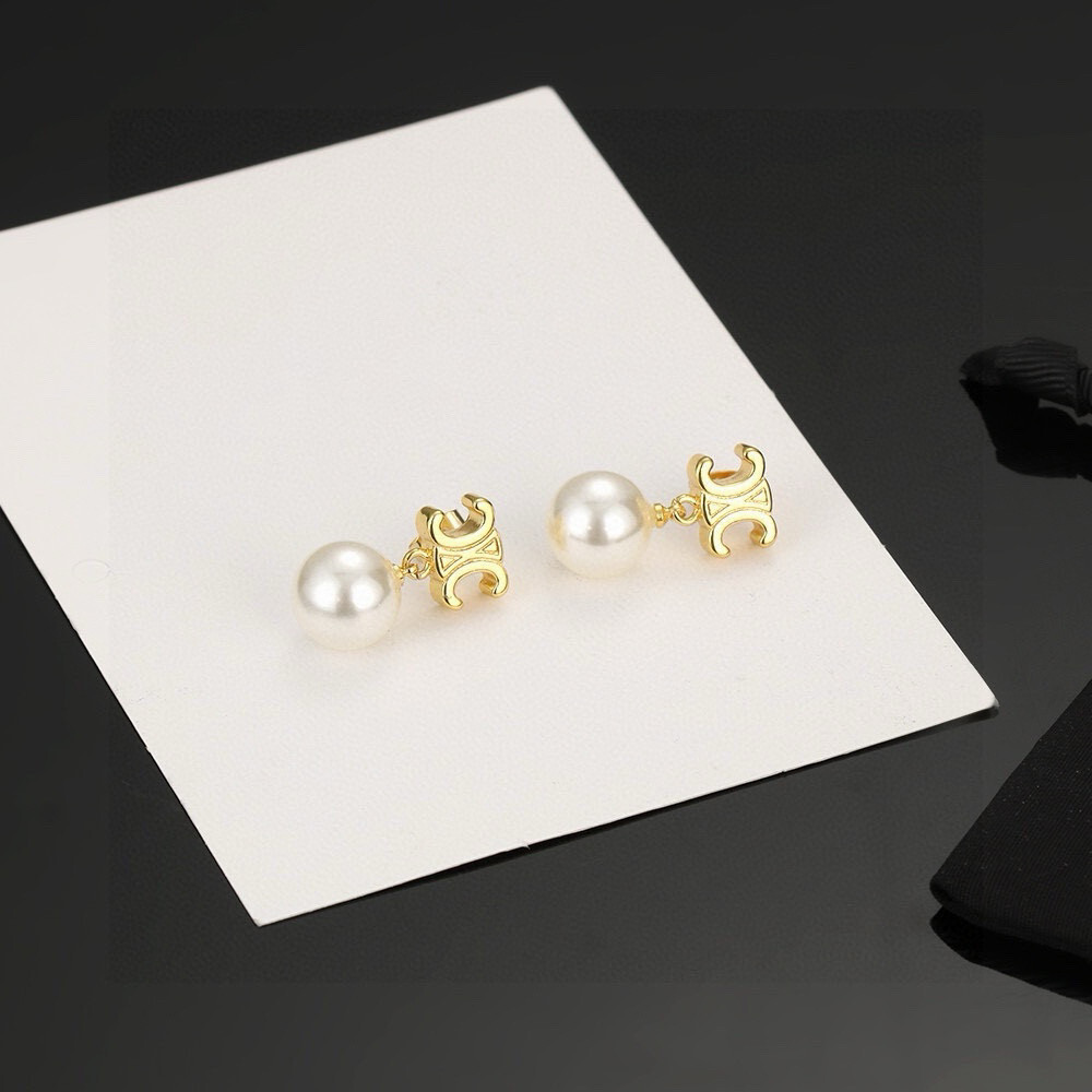 These Celine pearl drop earrings feature the iconic Triomphe motif paired with a softly luminous pearl, creating a striking contrast between classic elegance and modern attitude.