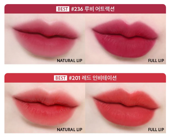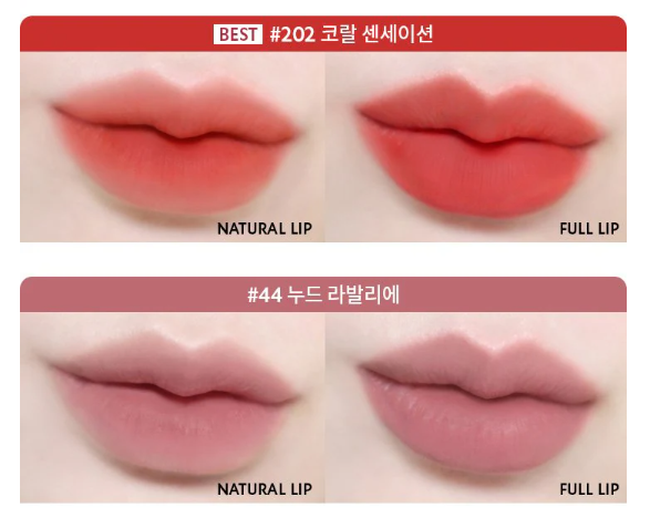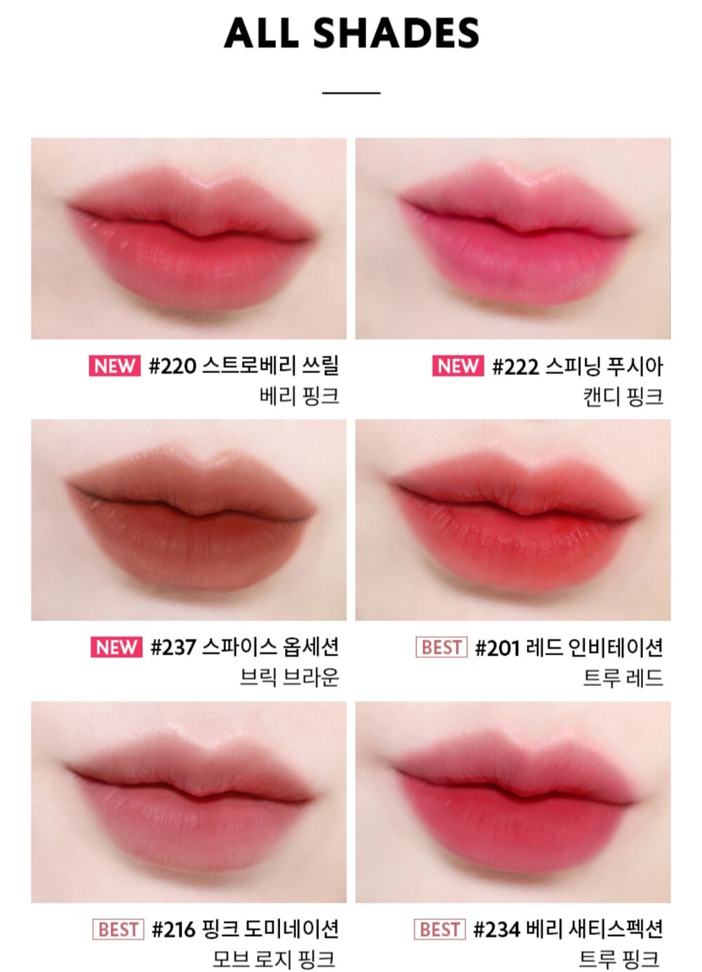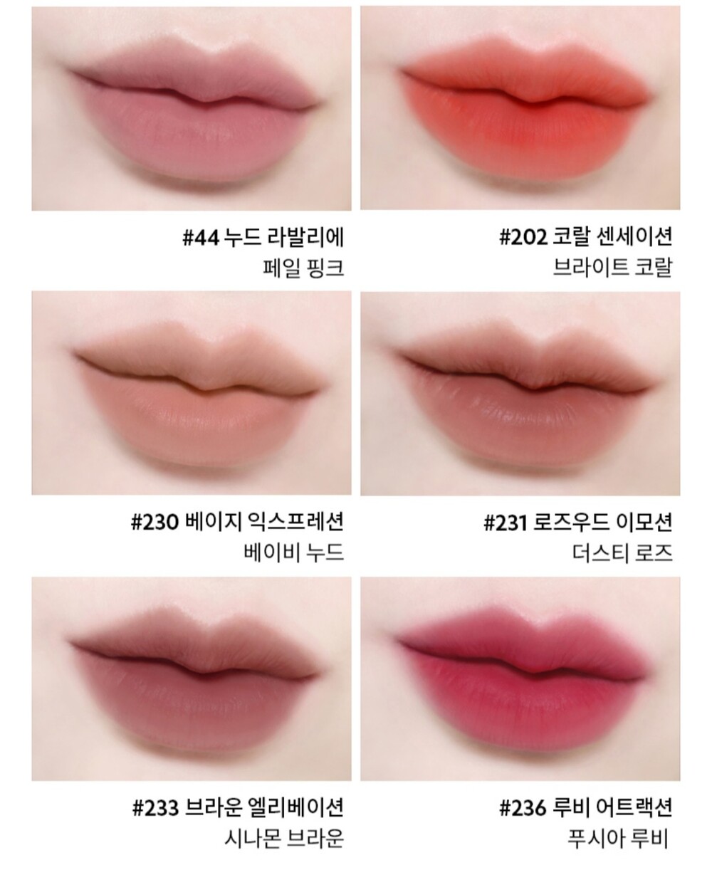 - 블러틴트 : 보송한 벨벳 마무리감과 그라데이션이 쉬운 사용감
