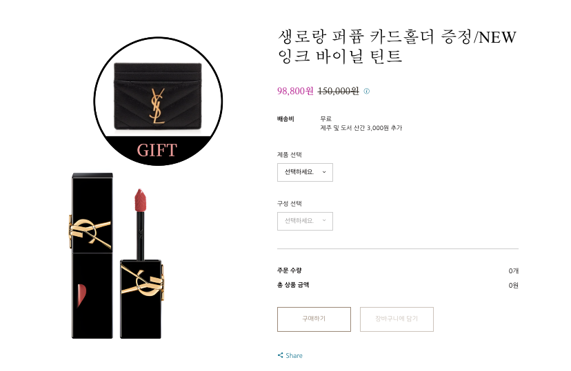 * 정품 입생로랑 틴트와, 브랜드 정품 사은품 카드홀더 구성으로 발송됩니다.