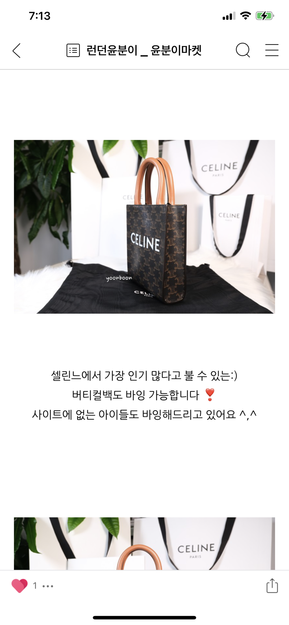 셀린느 트리오페 버티컬 카바스백