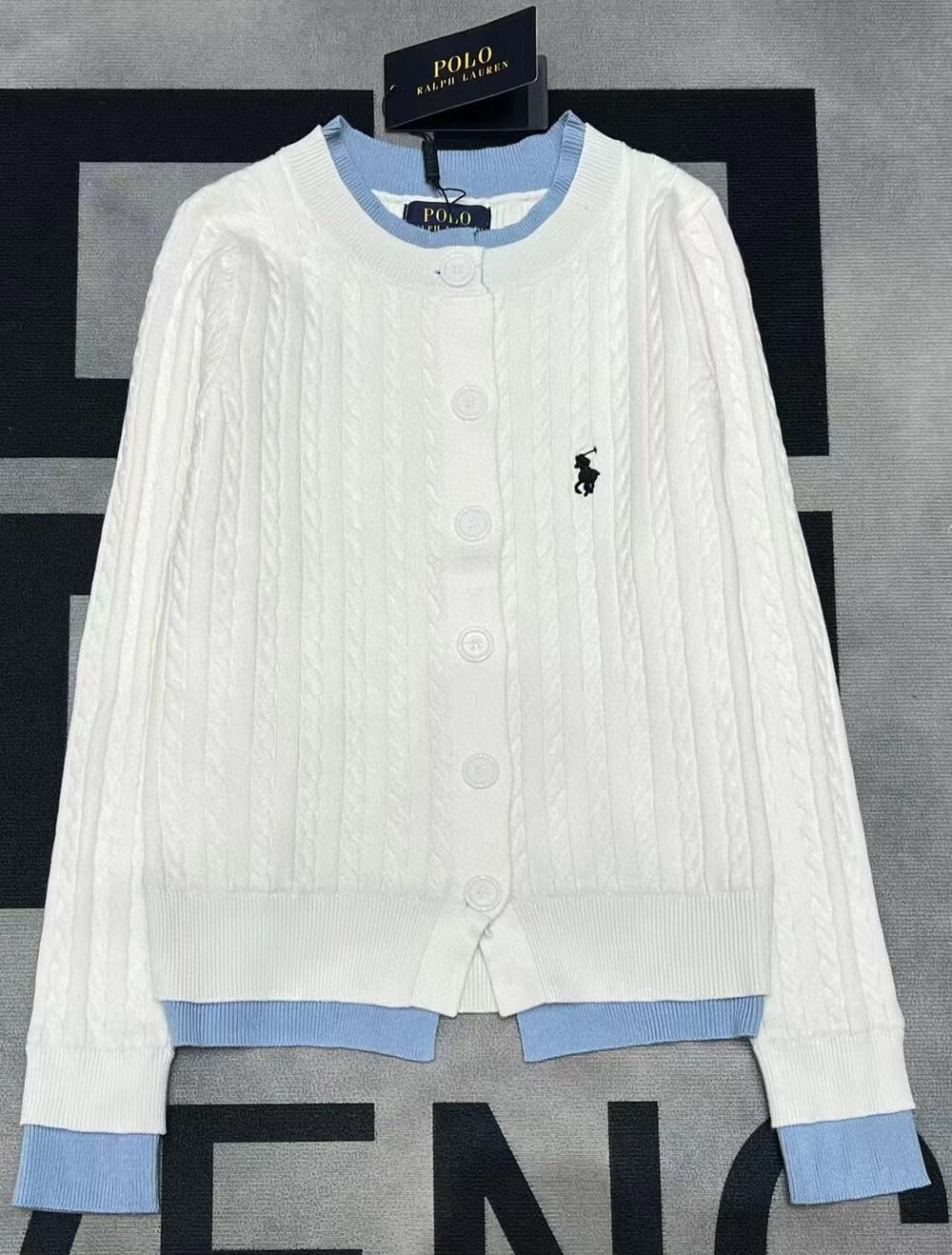 Q. Pol 레이어드 꽈배기 가디건 화이트