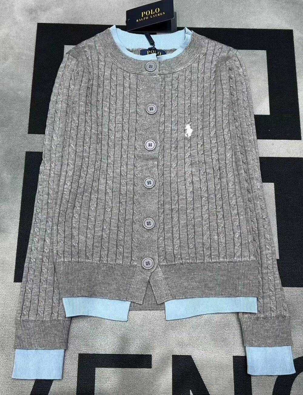 Q. Pol 레이어드 꽈배기 가디건 그레이