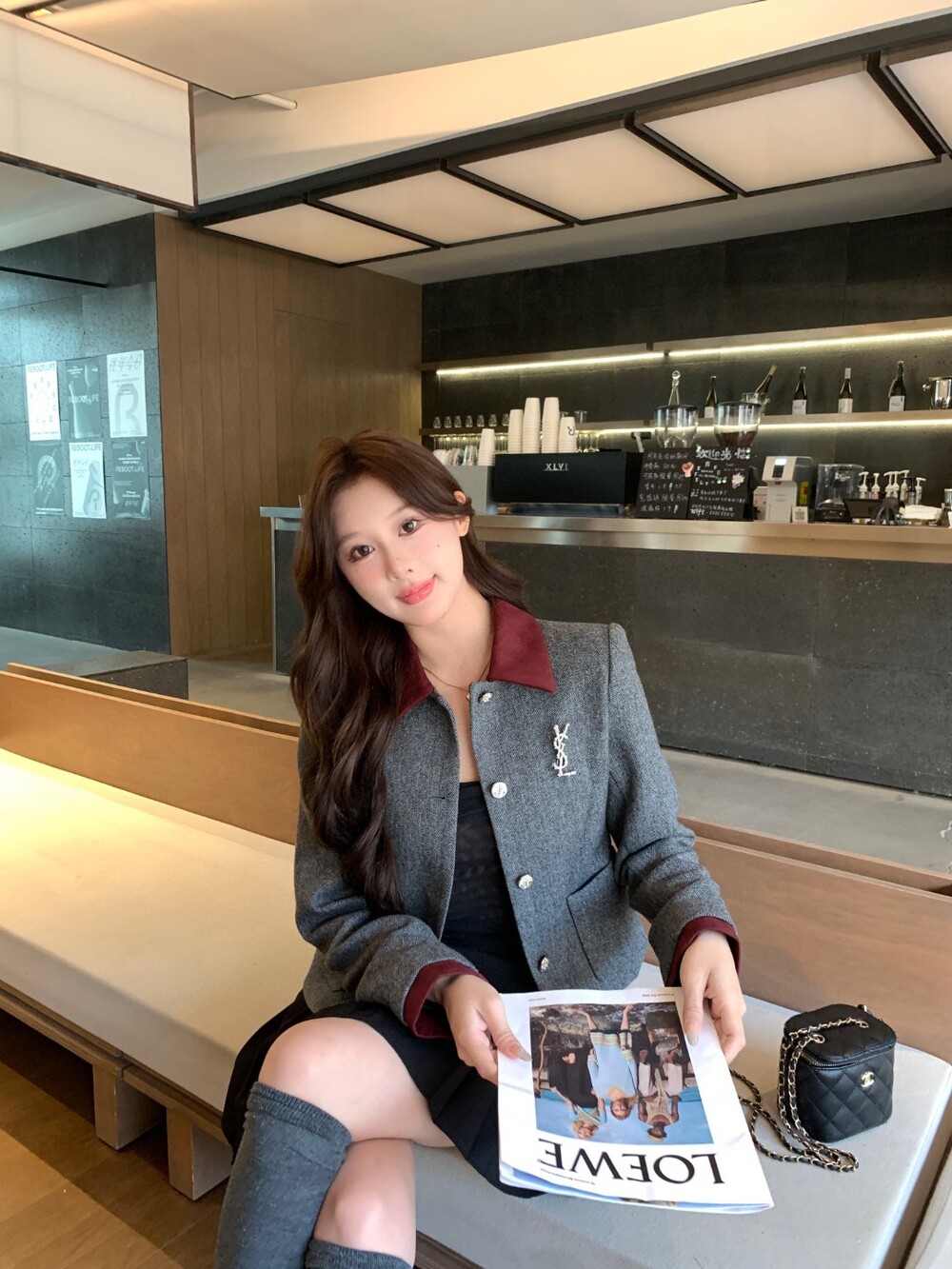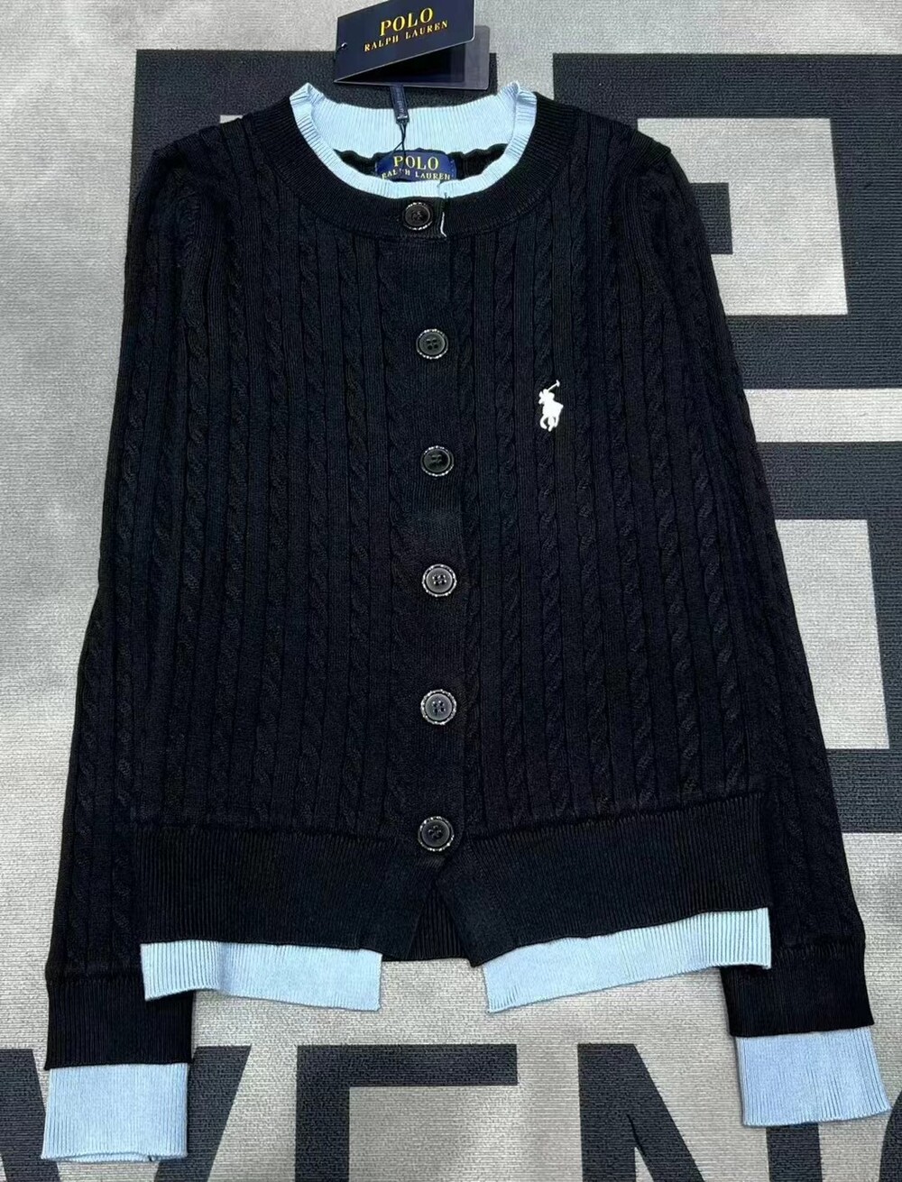 Q. Pol 레이어드 꽈배기 가디건 블랙