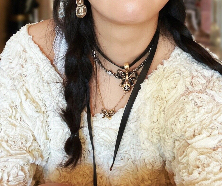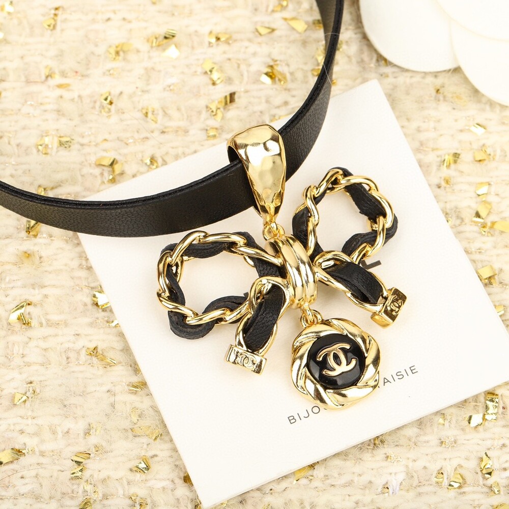 [Chanel bow lamb skin necklace] The most beautiful new choker, simple design, tail hardware customized, very unique style with a sense of design! The whole necklace is made of consistent imported lamb skin, the chain length can be adjusted, full of freshness it is almost the same welcome PK any version