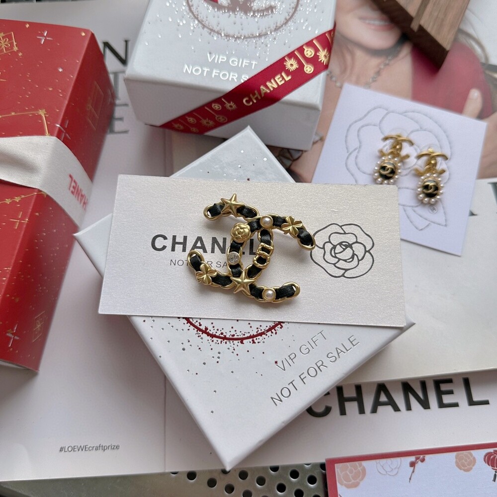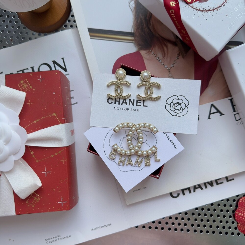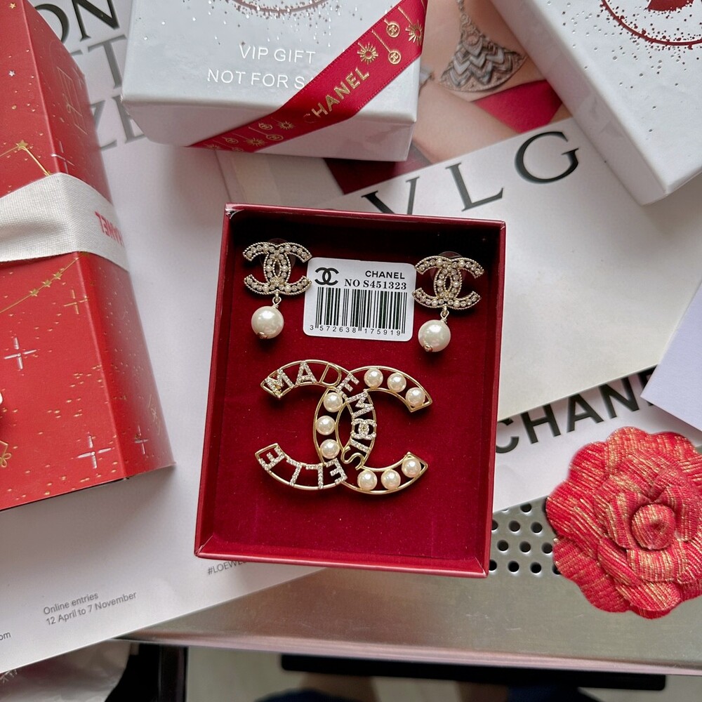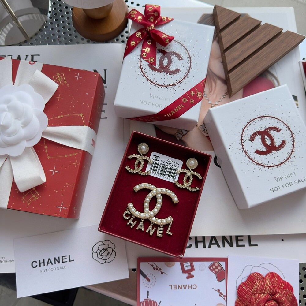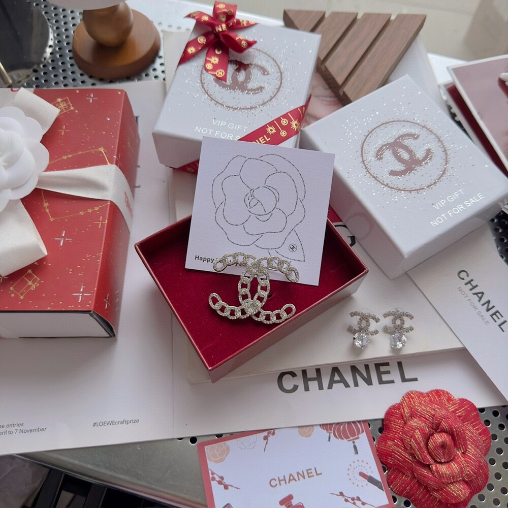 Chanel Overseas vvip Member birthday Gift Limited Red Gift Box Brooch Earrings Two Piece Set Genuine brass material + gold plating Not for sale gift box Festive gifts for the body