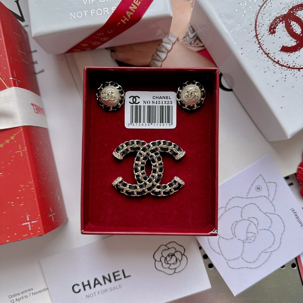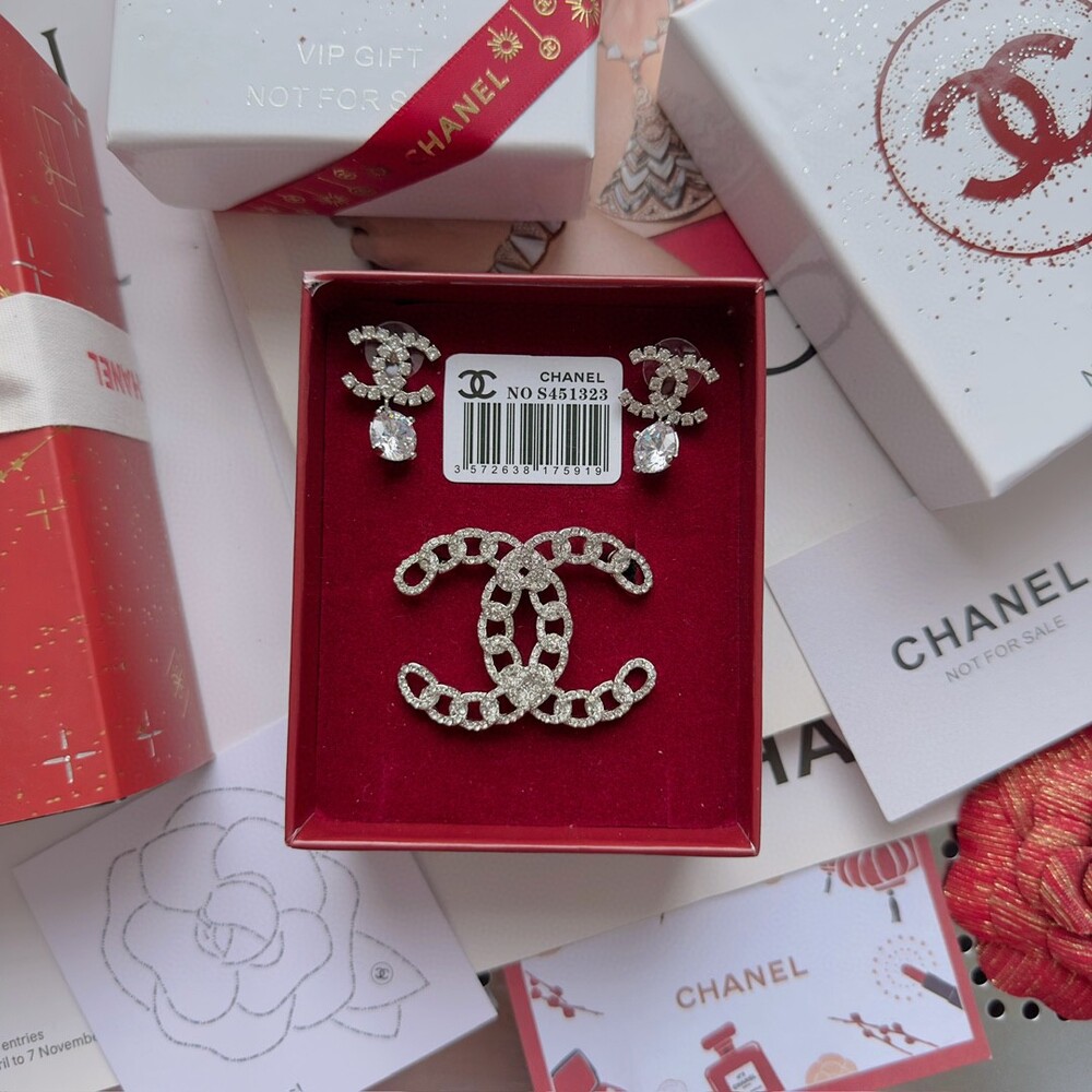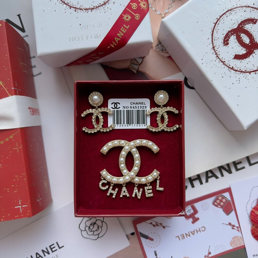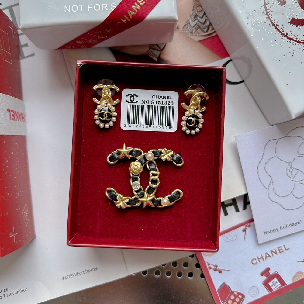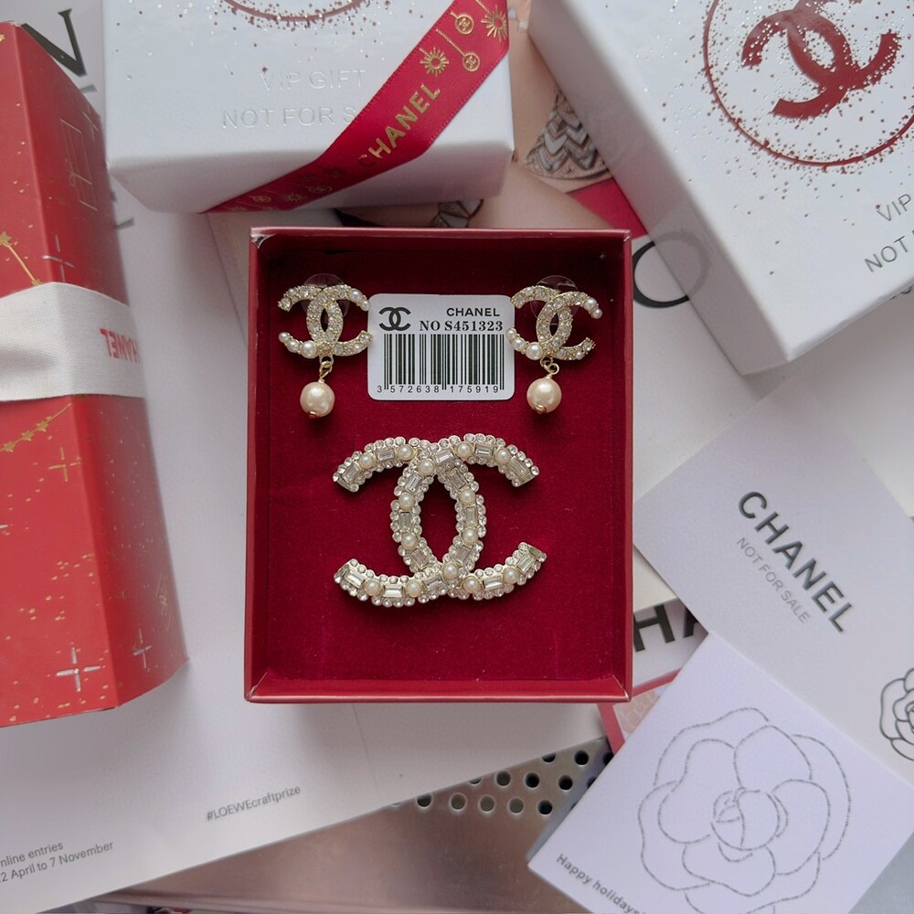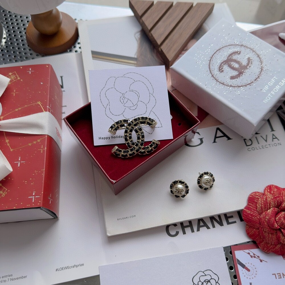 Chanel Overseas vvip Member birthday Gift Limited Red Gift Box Brooch Earrings Two Piece Set Genuine brass material + gold plating Not for sale gift box Festive gifts for the body