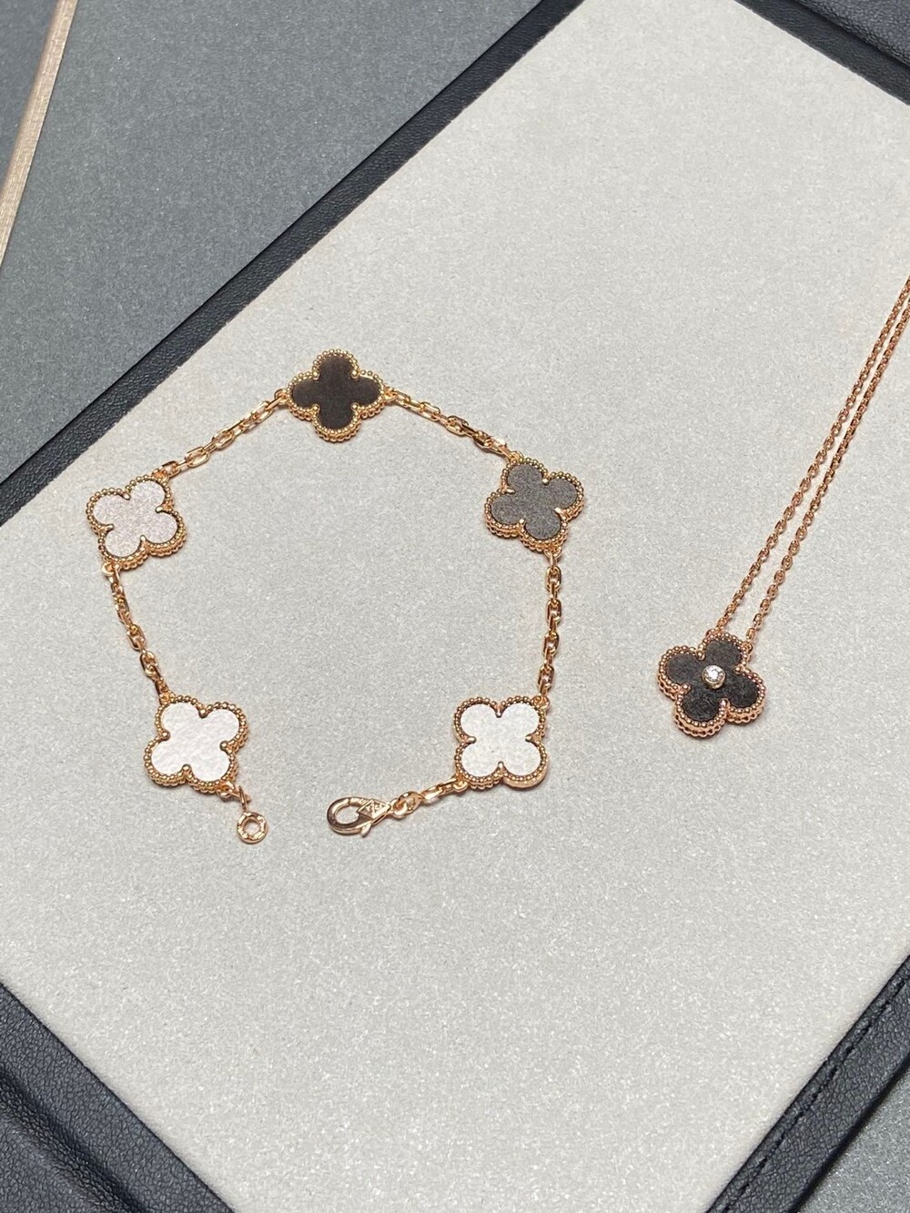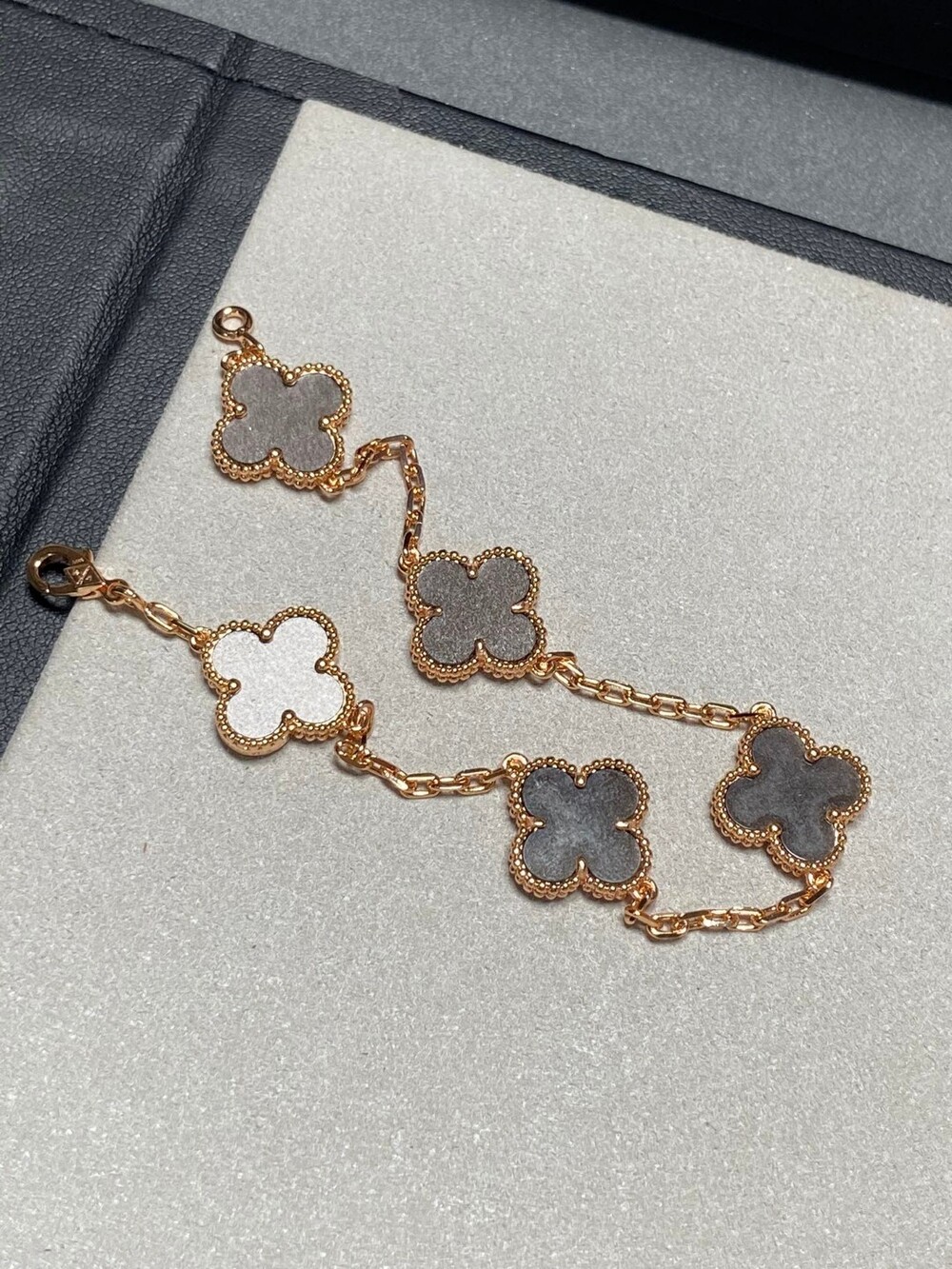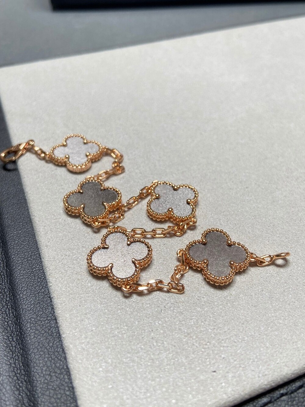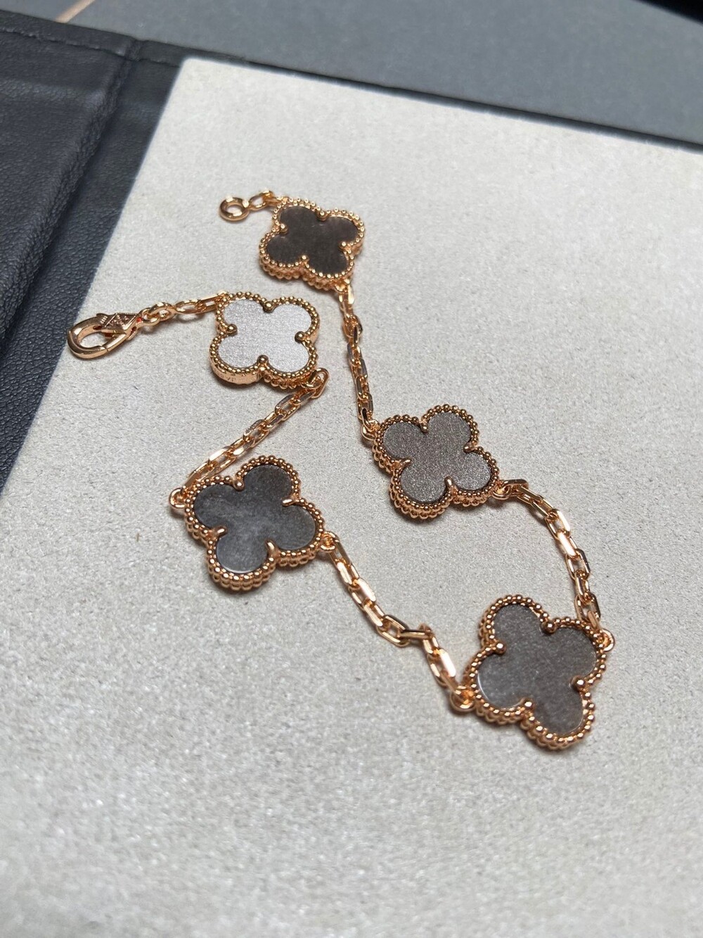 New Peterstone Looking forward to new in September and OctoberNew Alhambra Collection: Obsidian and Blue Peterstone Peterstone is very rare Everyone is looking forward to the effect of the finished product.Blue like a cat's eye, blue like an oil painting.Move, release is explosive everyone rushed The original stone is hard to form into a four-leaf clover shape (the stone is too hard to break easily during the grinding process), which increases the consumption of the stone.