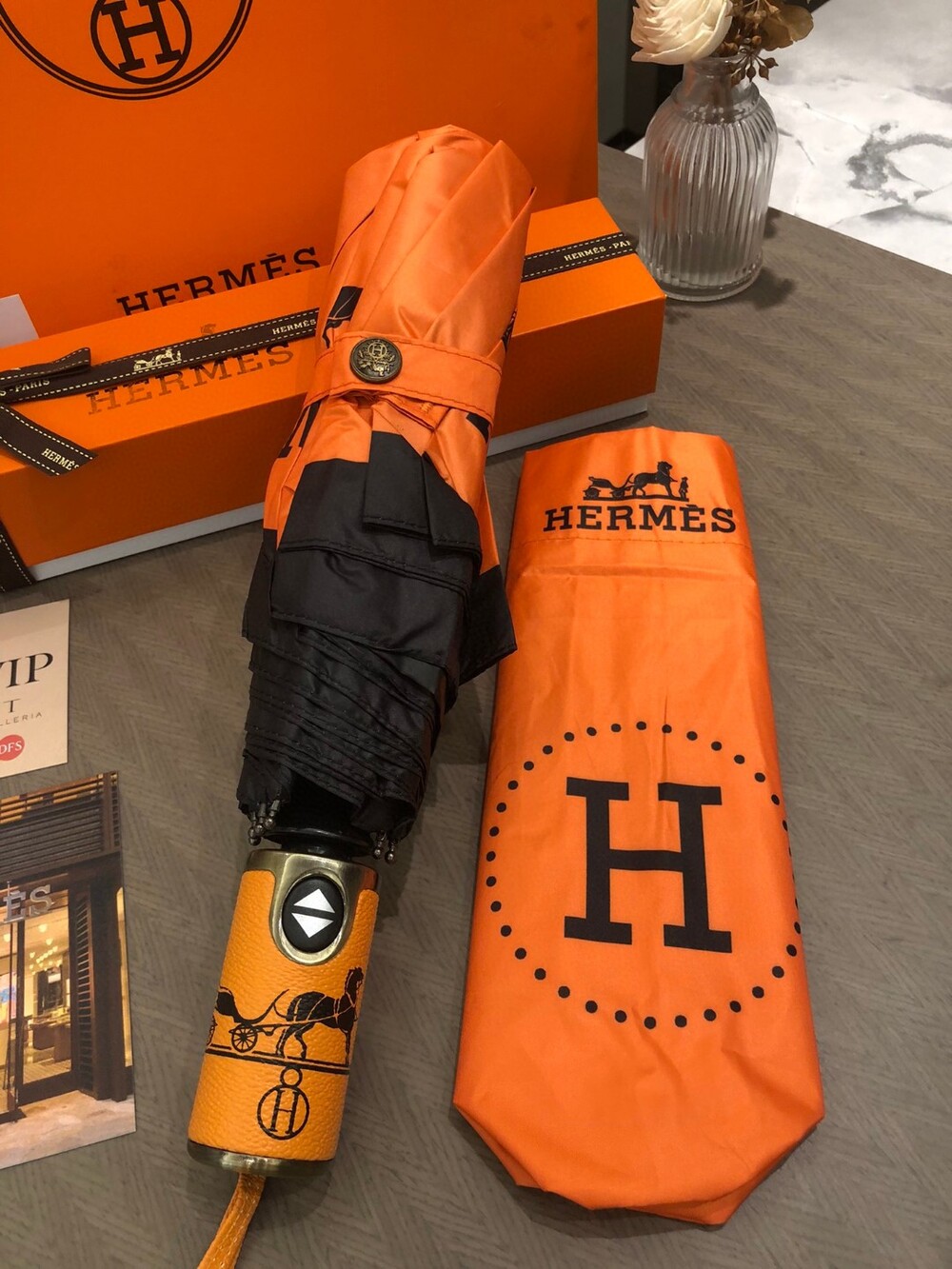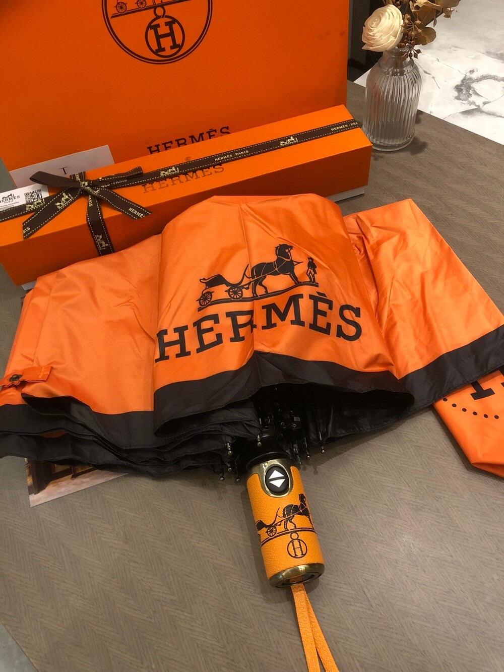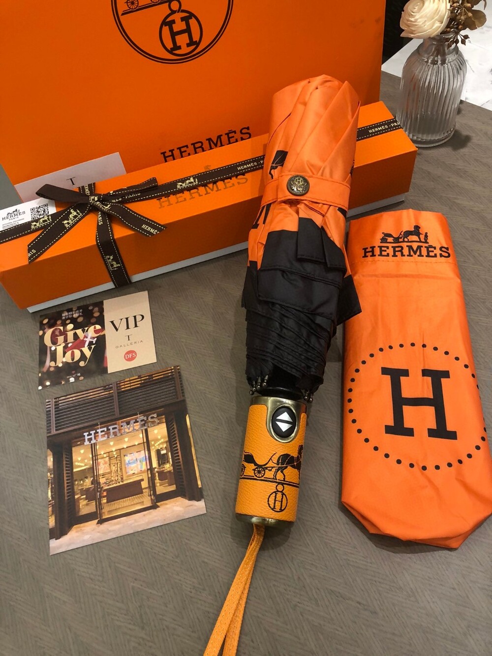 Hermes VIP Umbrella Special Offer Member-only Uniform Umbrella Need H home 30% discount automatic umbrella heavy weight presentation Block 99% of UV rays from the umbrella surface to prevent summer sunburn! Get out of here Enjoy the most elegant walk even on rainy days