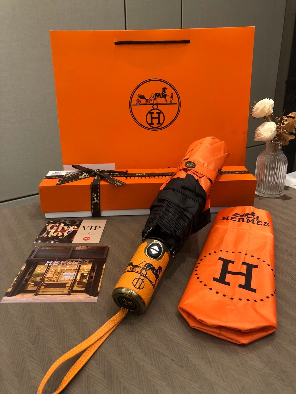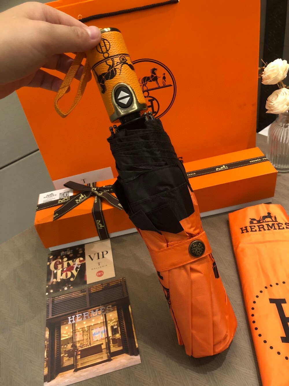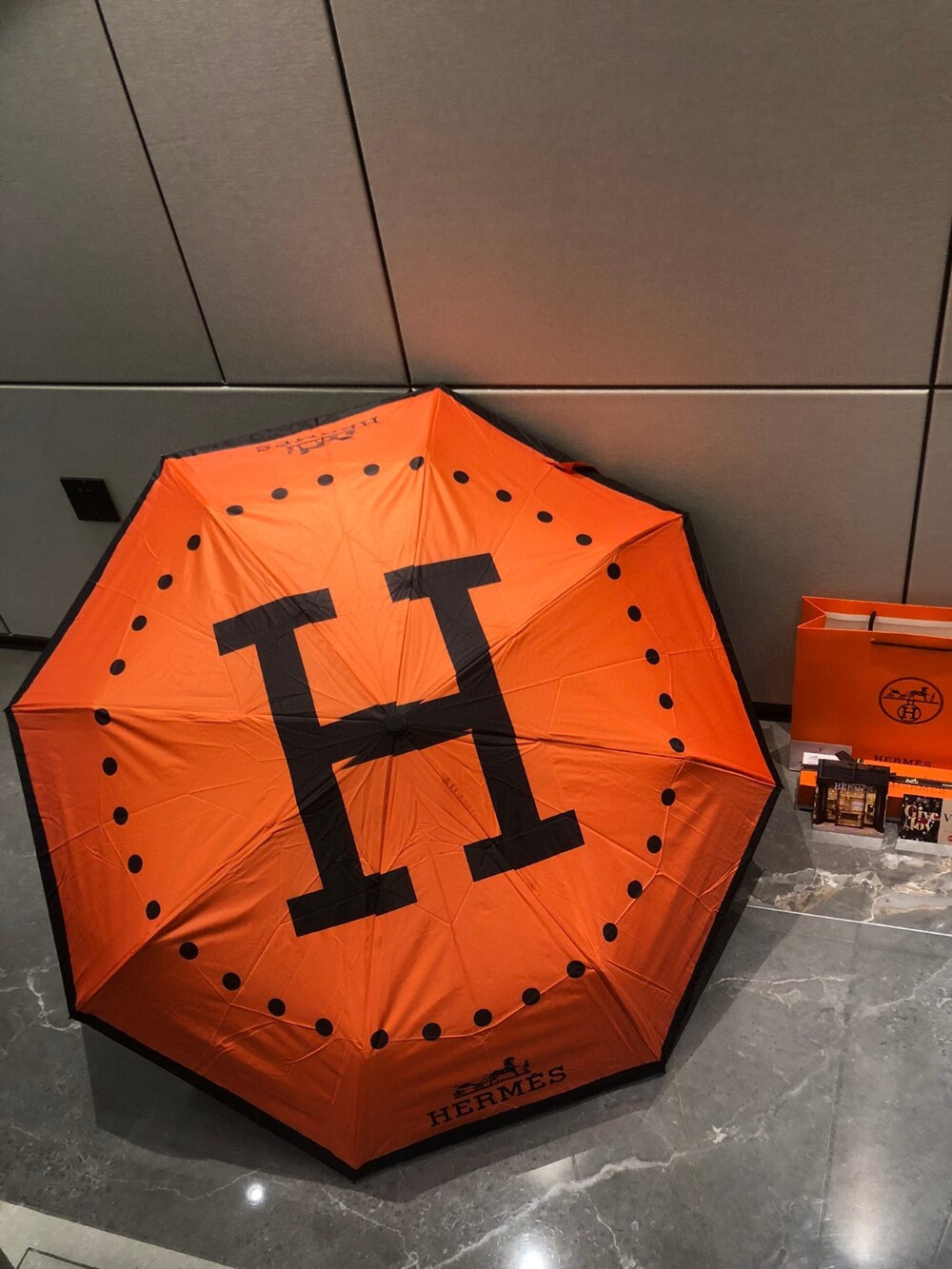 Hermes VIP Umbrella Special Offer Member-only Uniform Umbrella Need H home 30% discount automatic umbrella heavy weight presentation Block 99% of UV rays from the umbrella surface to prevent summer sunburn! Get out of here Enjoy the most elegant walk even on rainy days