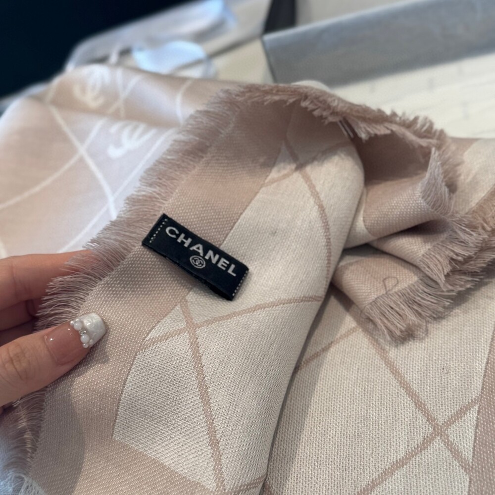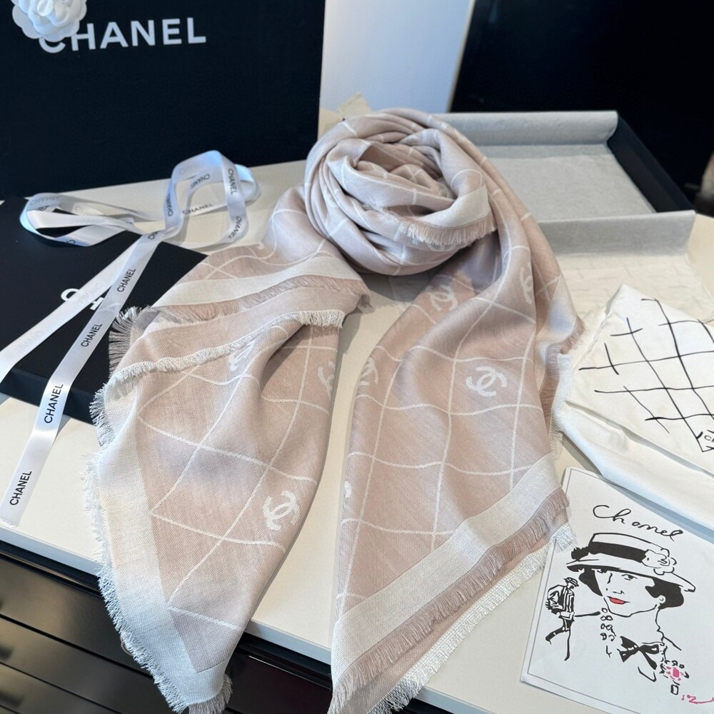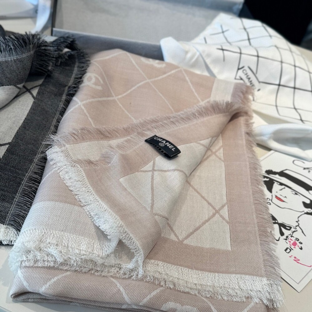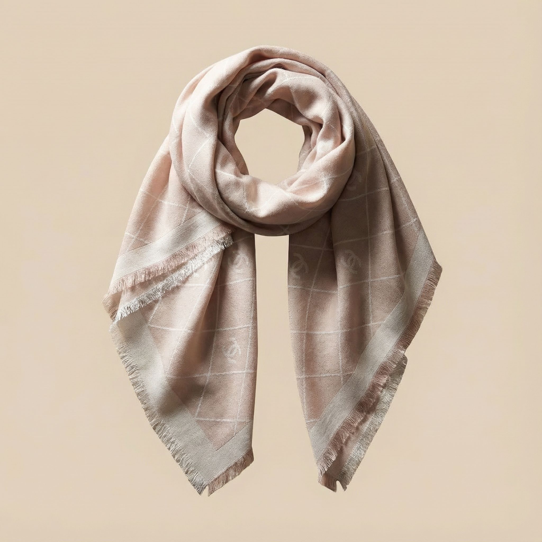 A timeless large scarf inspired by Chanel’s iconic camellia and classic check motif.