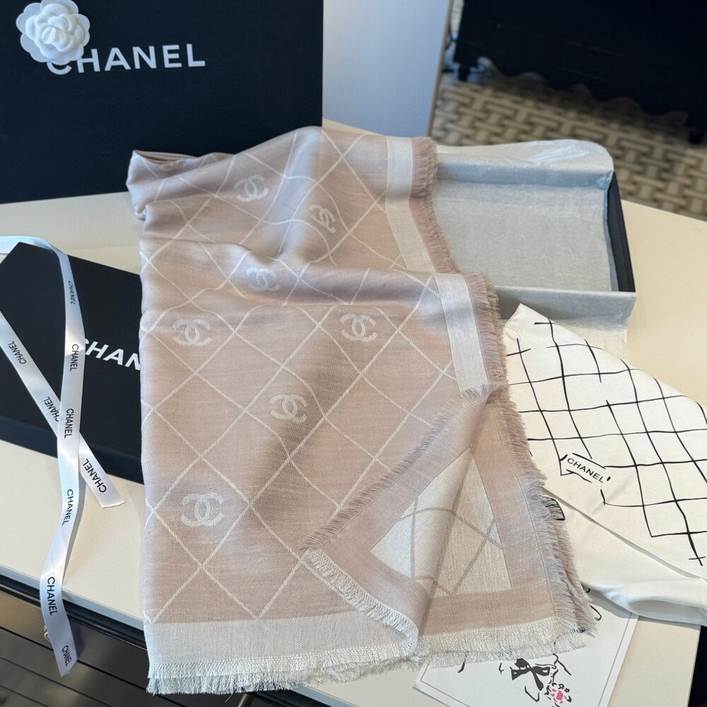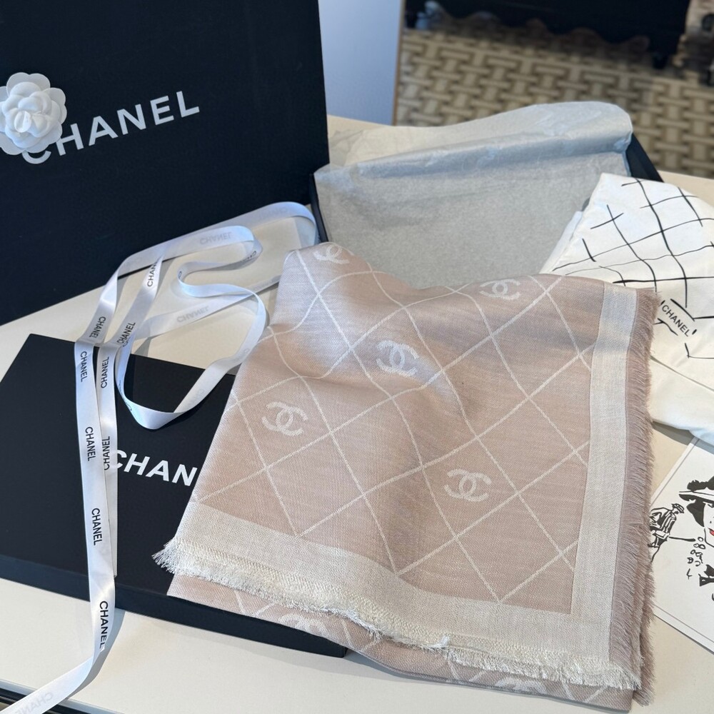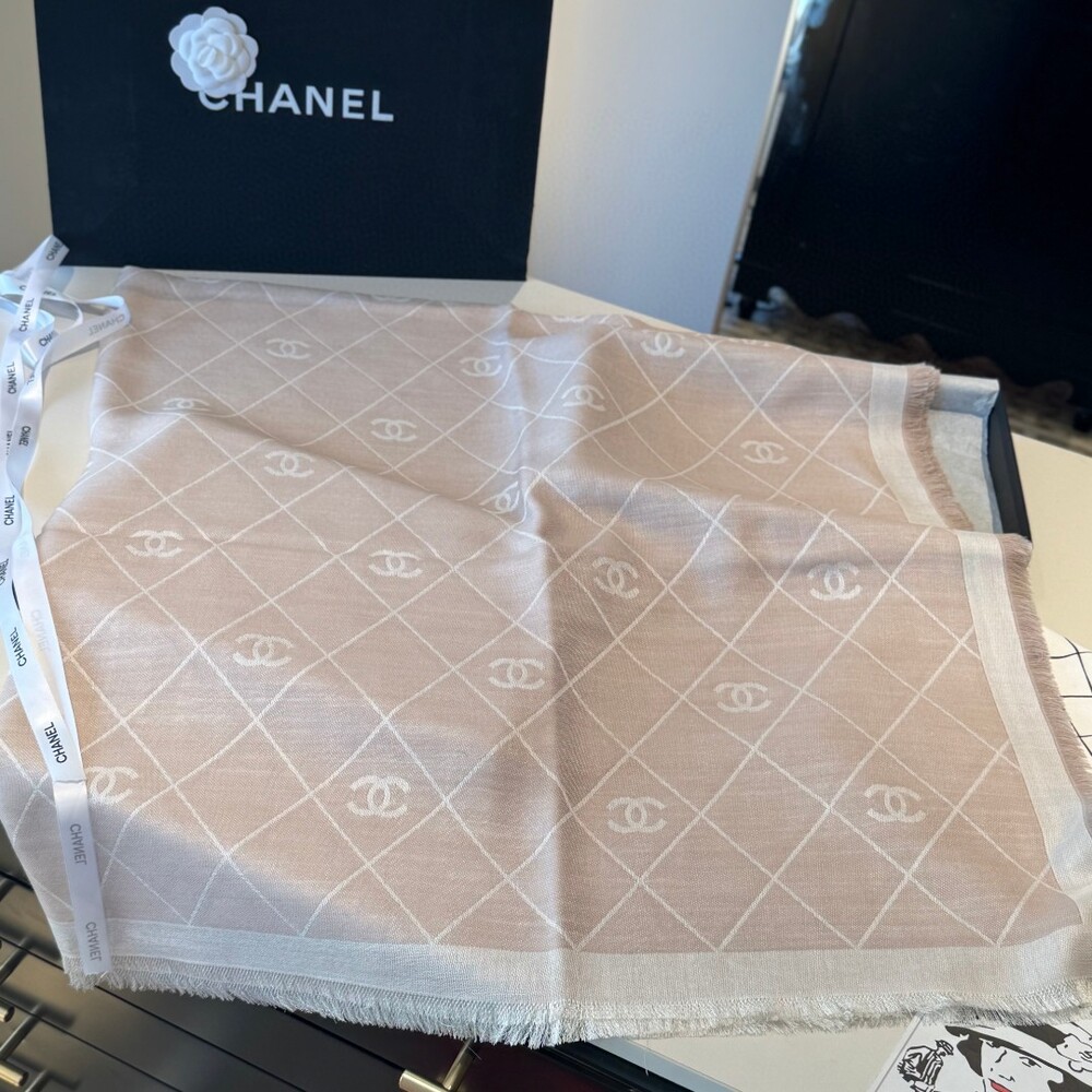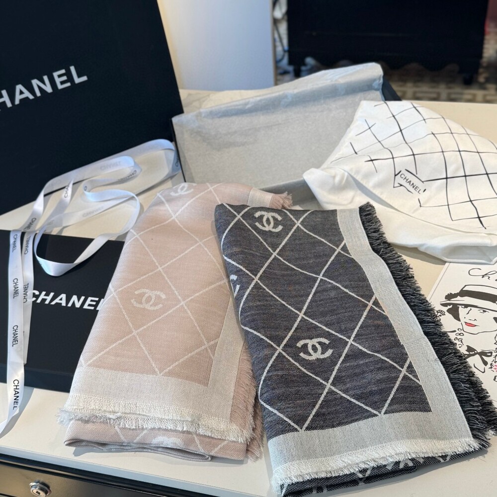 A timeless large scarf inspired by Chanel’s iconic camellia and classic check motif.