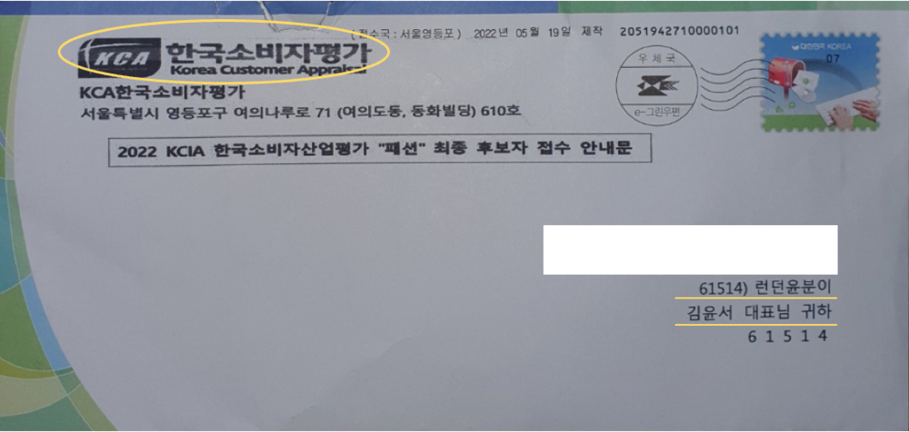 런던윤분이 2022 KCA 한국소비자평가 "패션부분" 최종 후보로 선정