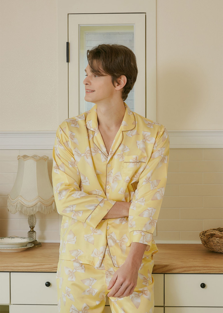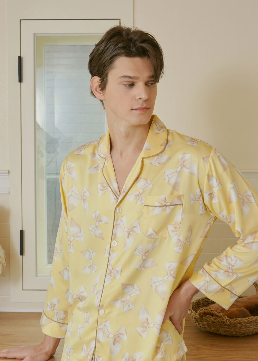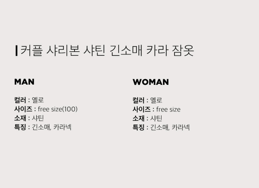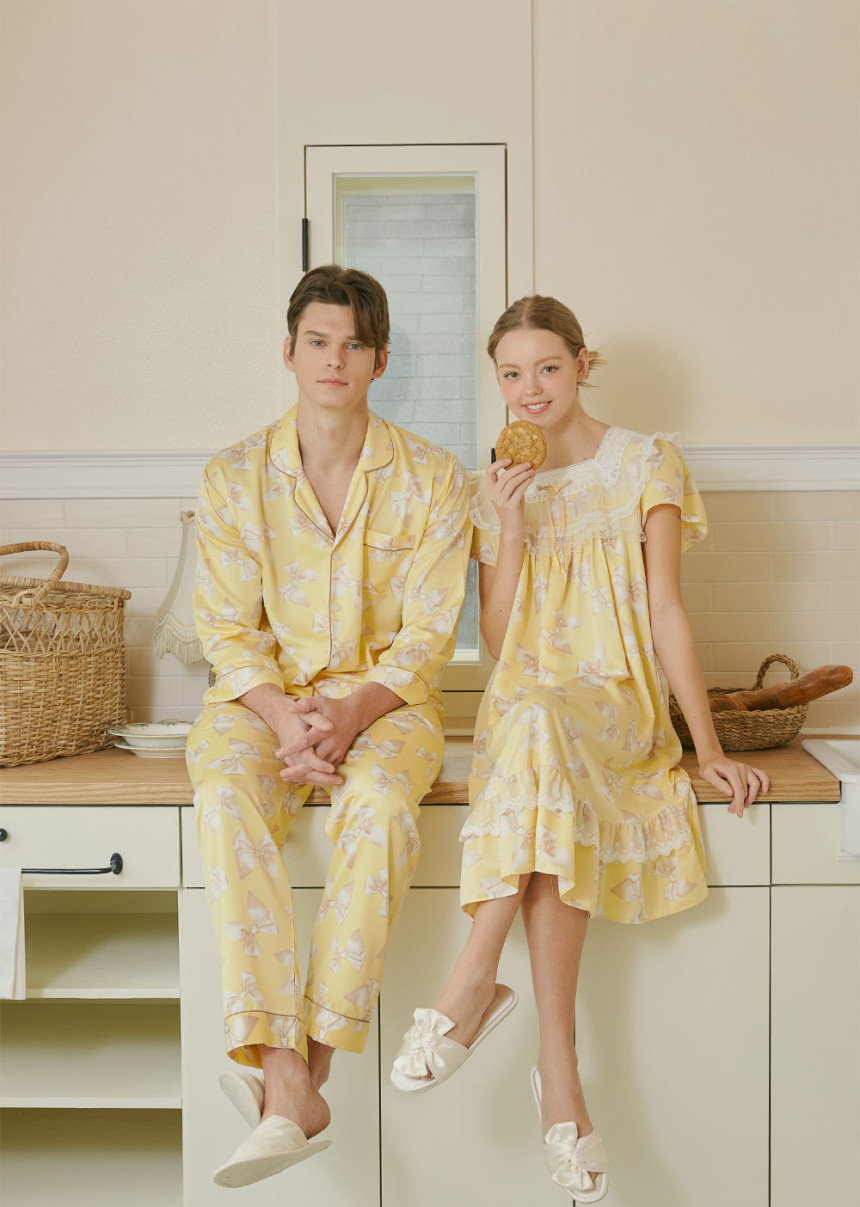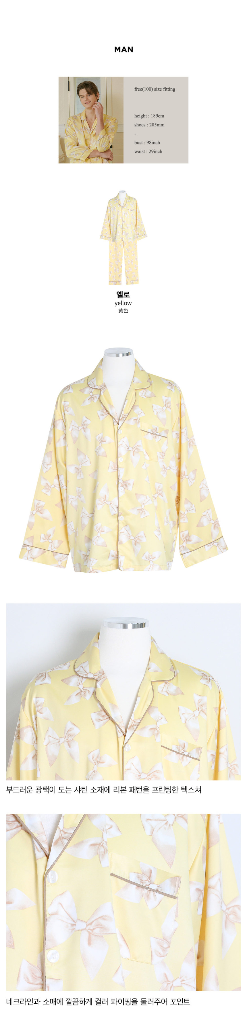 여성 남성 커플 샤리본 원피스 투피스 수면 잠옷