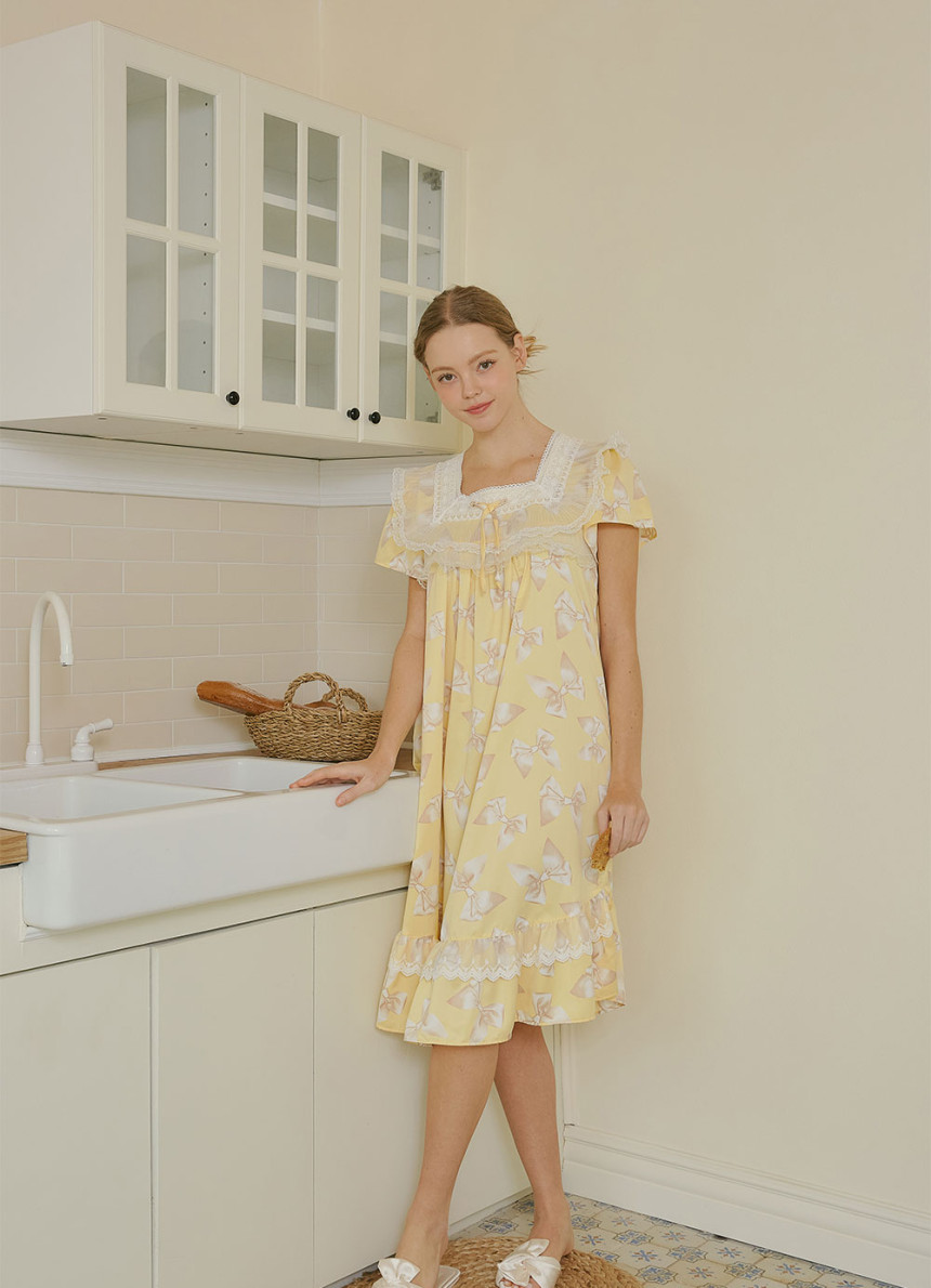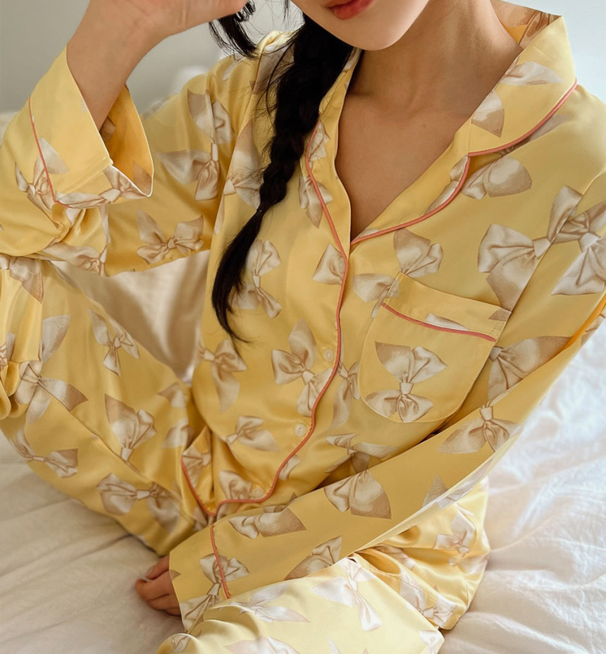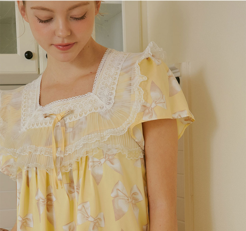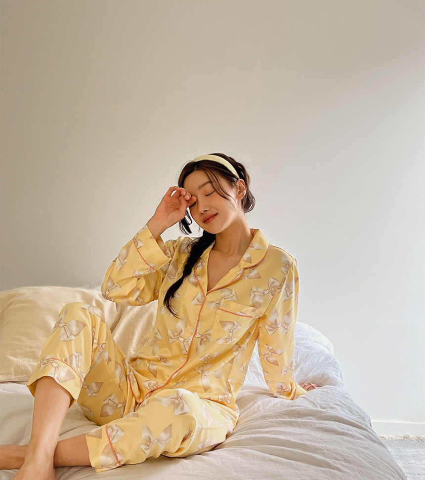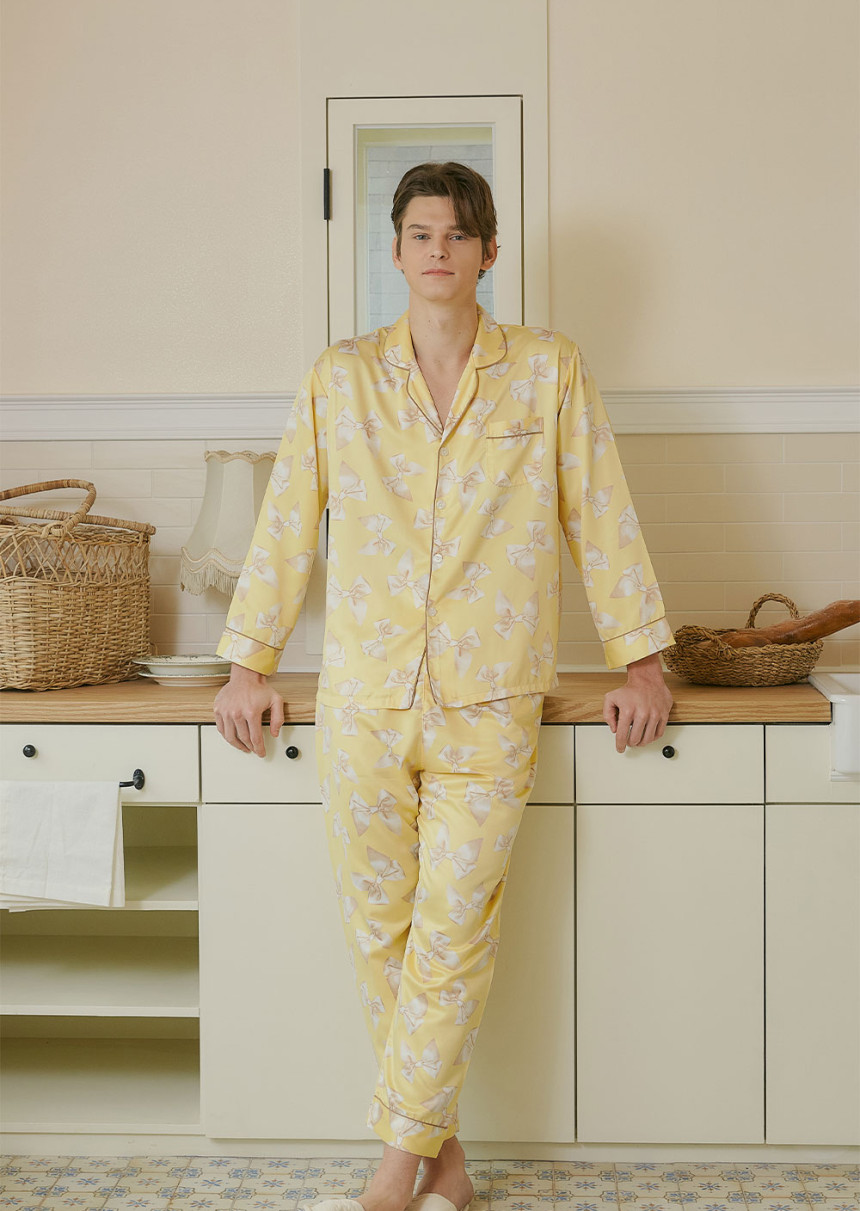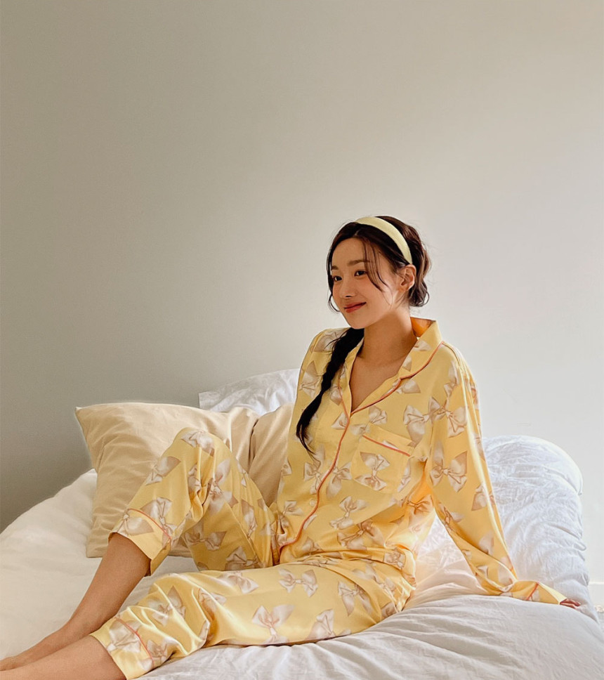 여성 남성 커플 샤리본 원피스 투피스 수면 잠옷