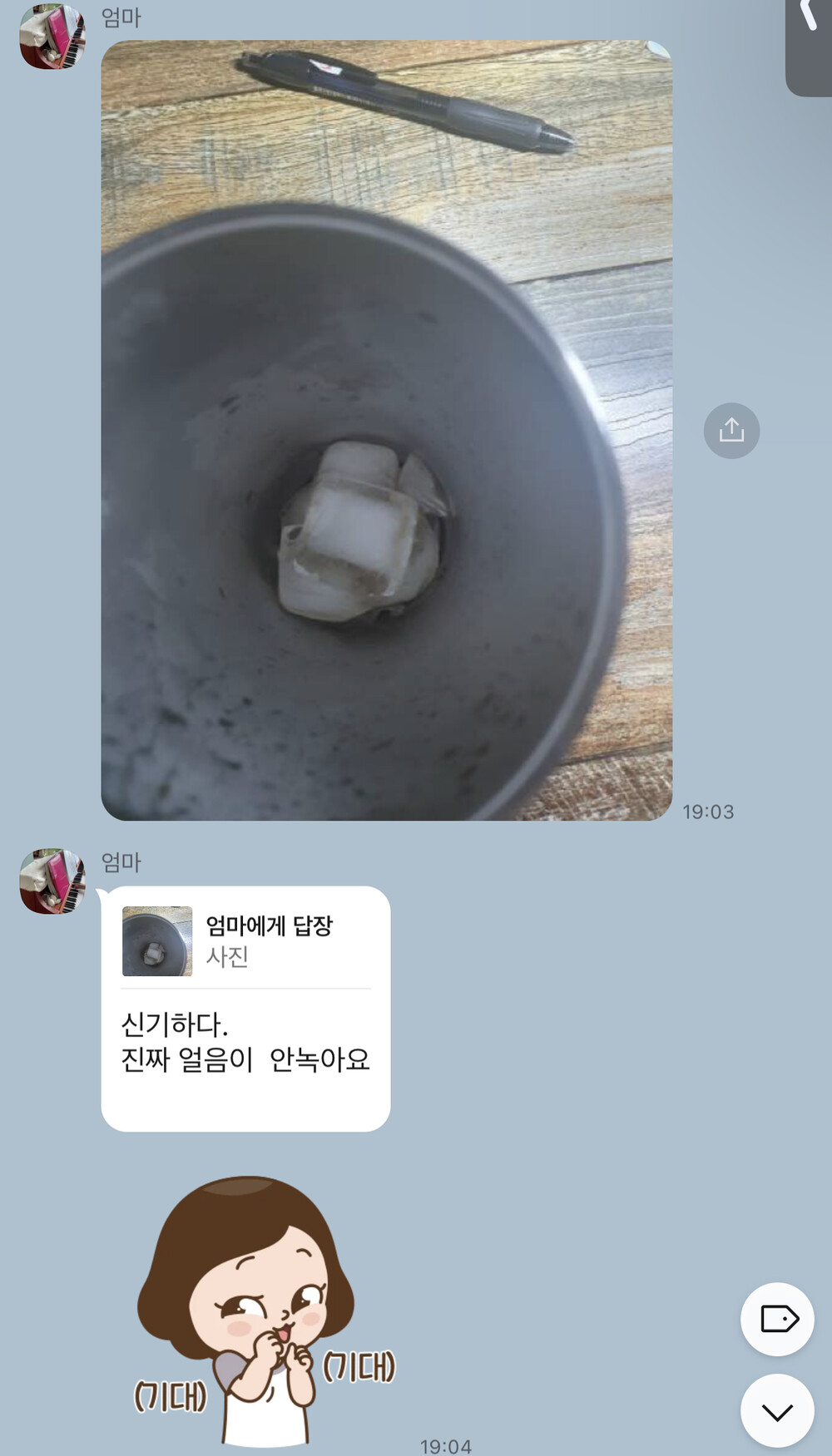 얼음이 하루종일 그대로 있어서