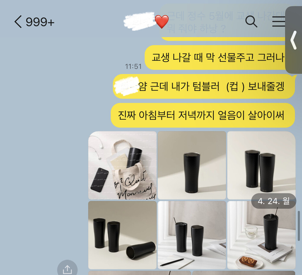 지인들에게도 선물해줬었던 컵이에요