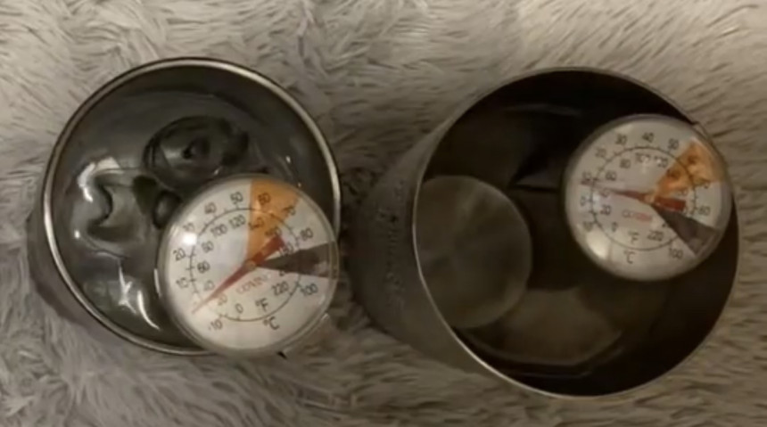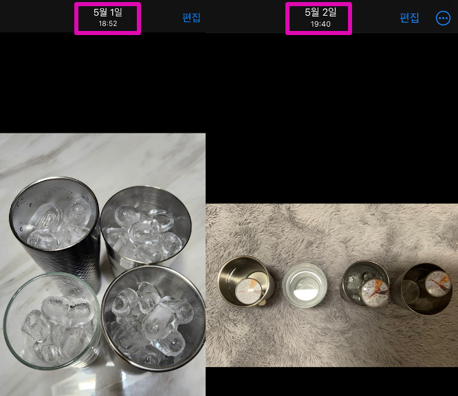 다른 컵은 2시간내로 얼음이 모두 녹고