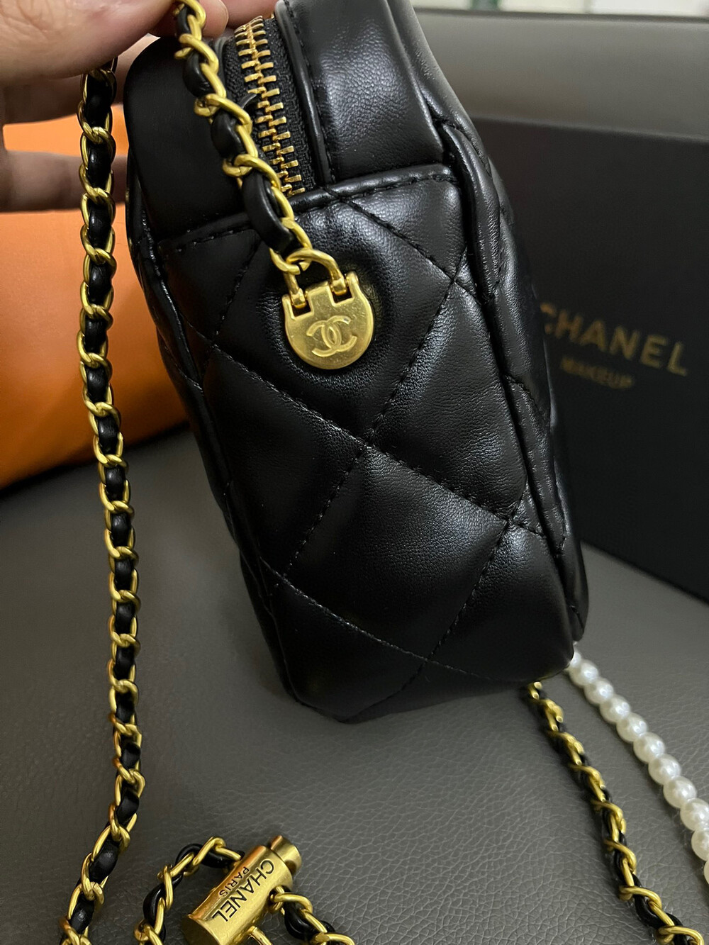 package mail#chanel 21k Gift Bag Camera Bag #Fashionable, classic and versatile camera bag, worn brass leather chain, buckle is a new windbreaker buckle, adjustable length, not easy to wear, especially durable, and a variety of back methods Dimensions 18-14-6 cm