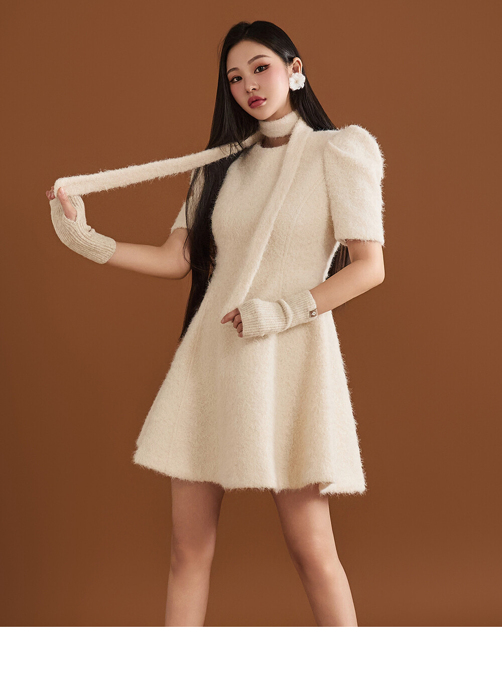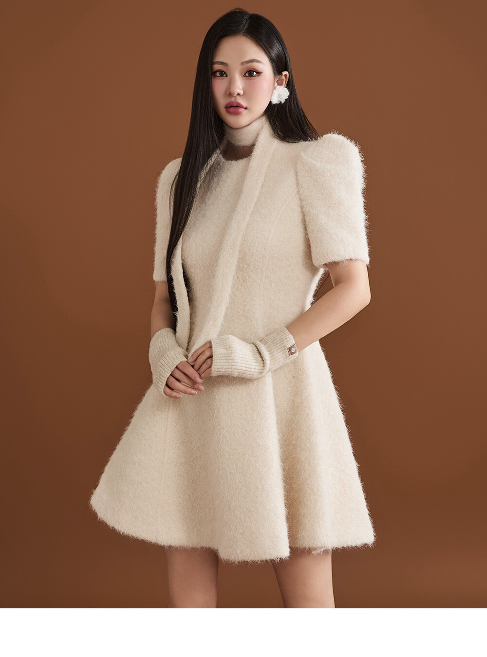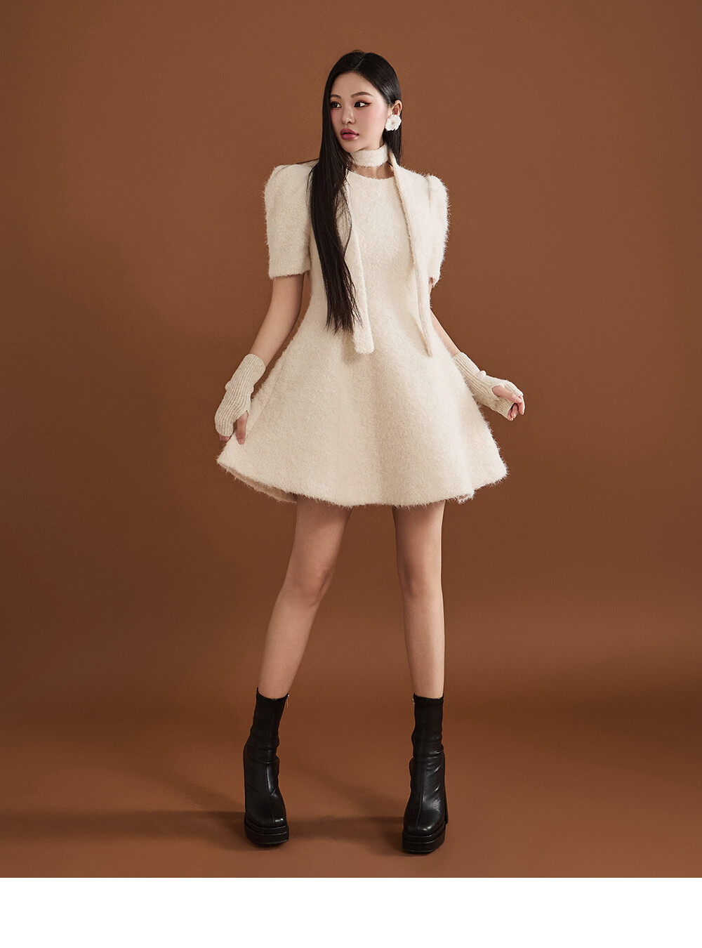 [국내] 푸링 원피스 ( 머플러세트 울 소매 에이라인 부클 )