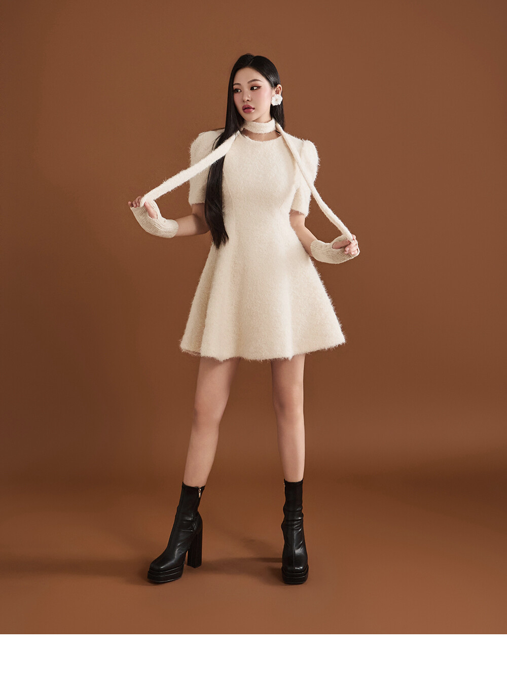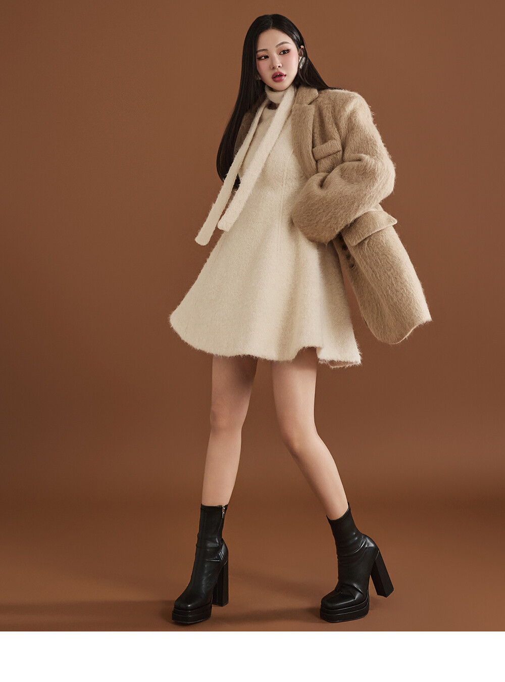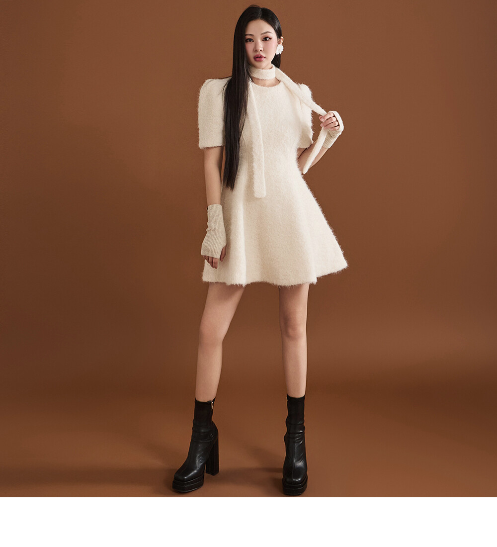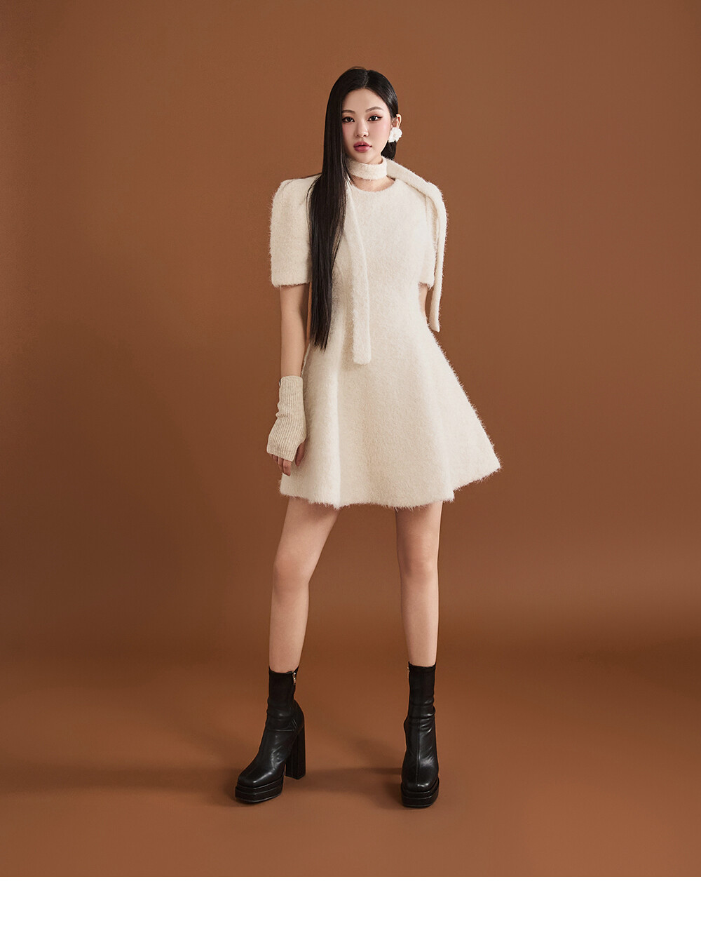[국내] 푸링 원피스 ( 머플러세트 울 소매 에이라인 부클 )