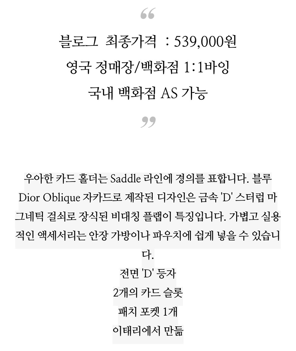 [정매장바잉] 디올 새들 카드홀더 오블리크 블루 그레이 S5610CTZQ_M928