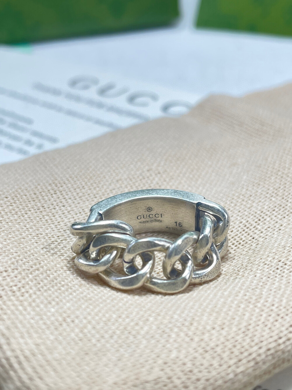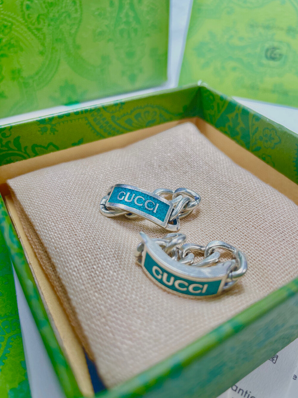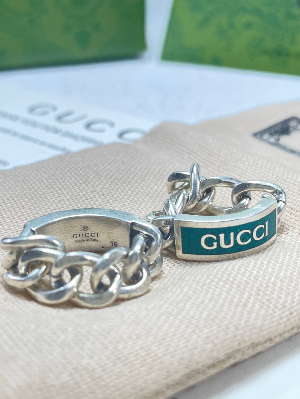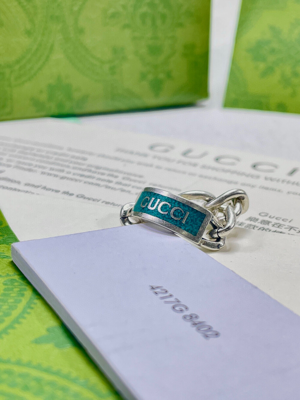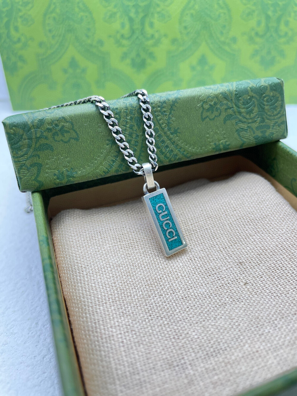 [Overseas vip member gift] Gucci Patch Green Jewel Enamel Craft|| Gucci 2021 Green Jewel Enamel, followed by a new accessory, a ring necklace will be introduced.The initials of founder Gucci Gucci were expressed on the bracelet in the form of Double G.It is made of pure silver and decorated with vivid jewelry green enamel.The silver part is vintage overall with a relief method, making it a very special style for daily look.Recommended for 2 items with thickness like vintage Cuban chain [Like R] Size: 45 cm