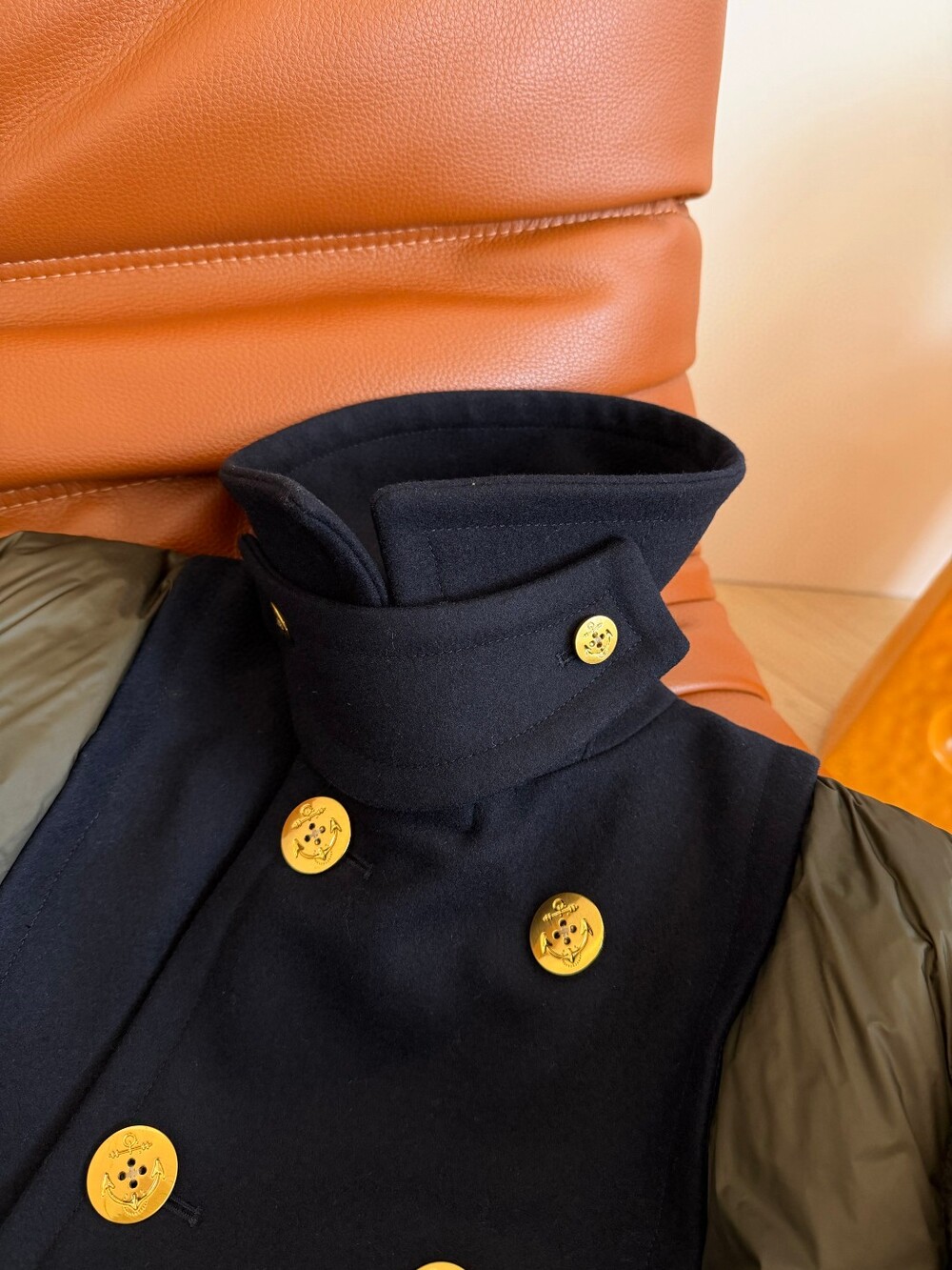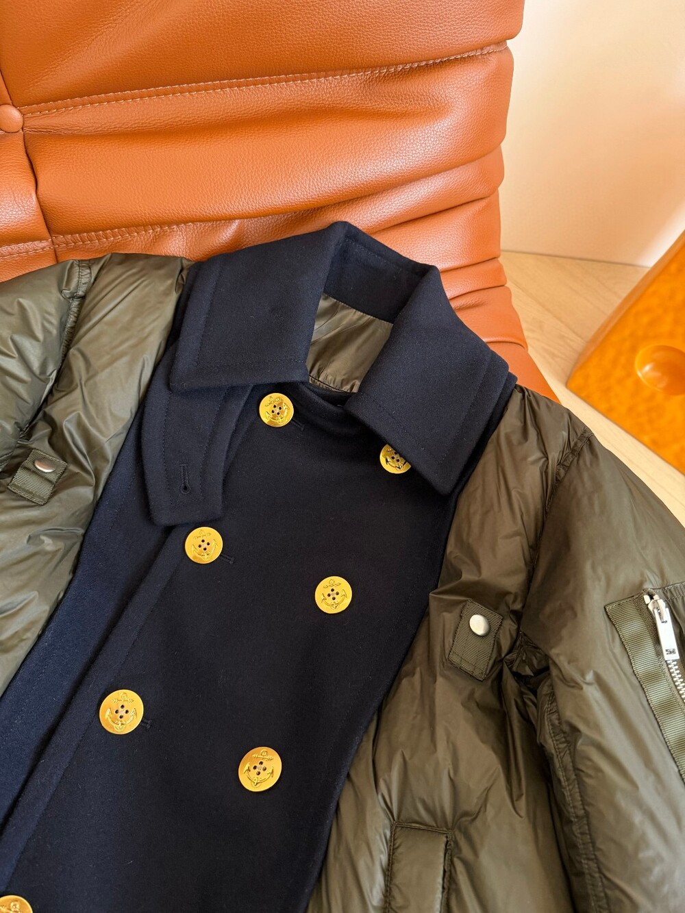 금장 앵커 버튼 디테일이 포인트라서, 그냥 데님에 툭 걸쳐도 룩이 완성되는 느낌이에요. 💚🖤