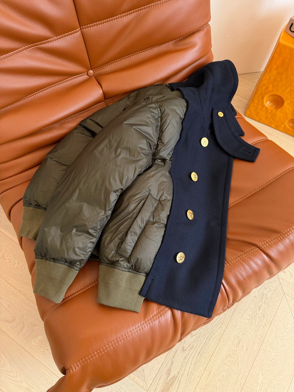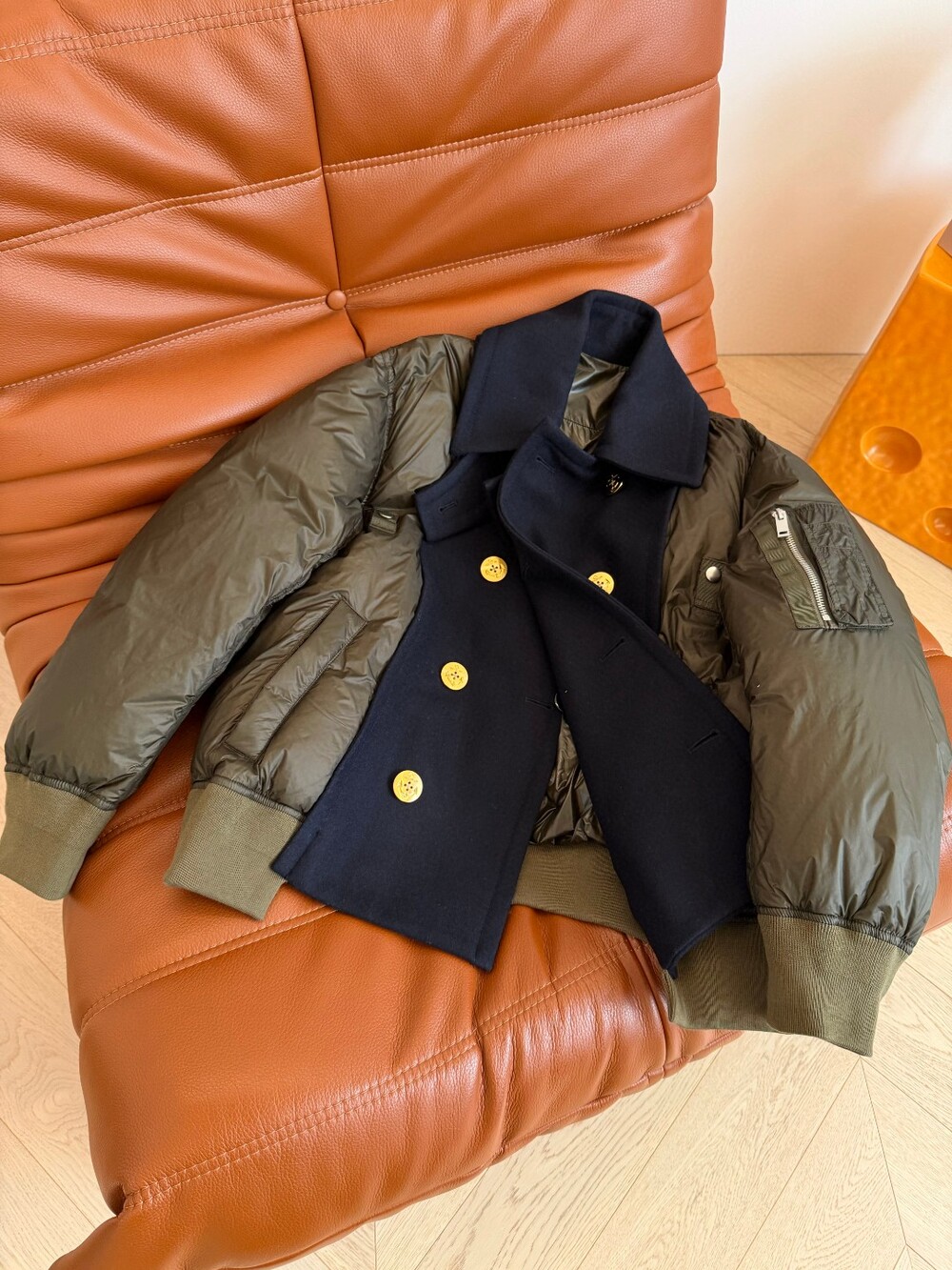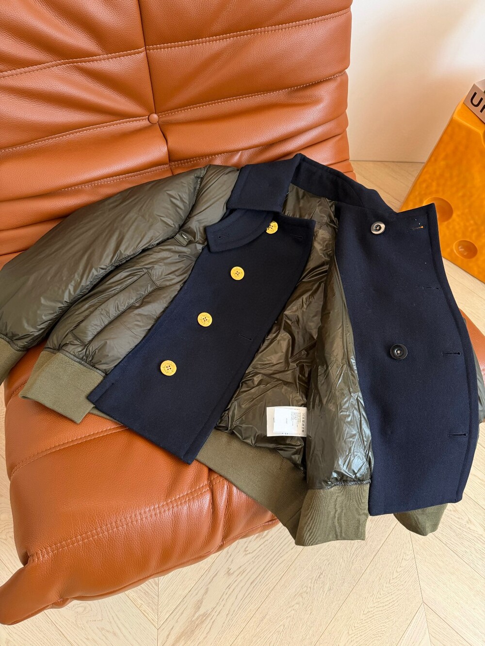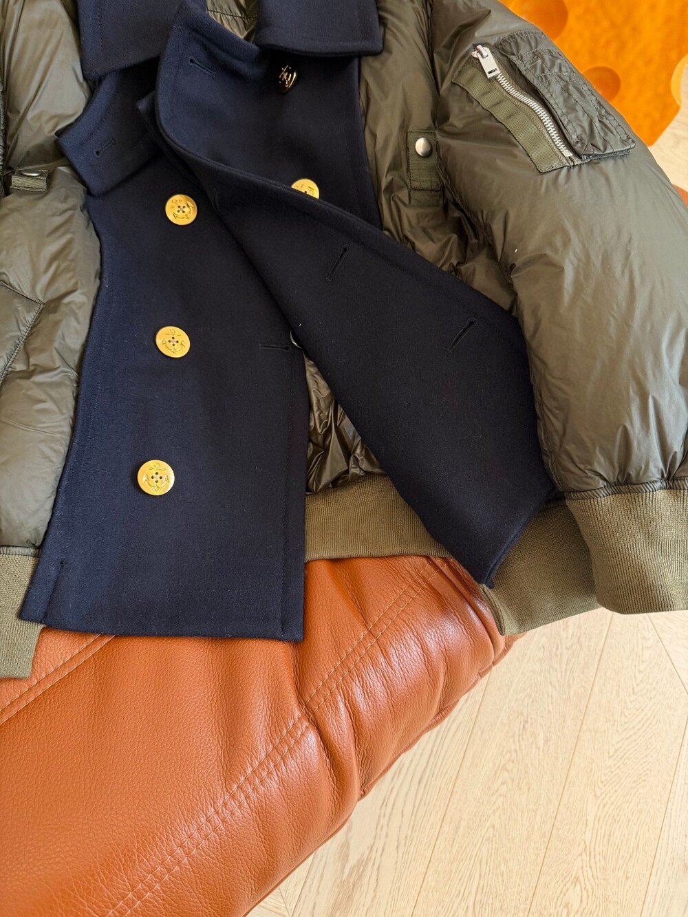 패딩은 꾸꾸 느낌 내기 어려운게 더블 브레스트 단추와 울 소재가 믹스되어 있어